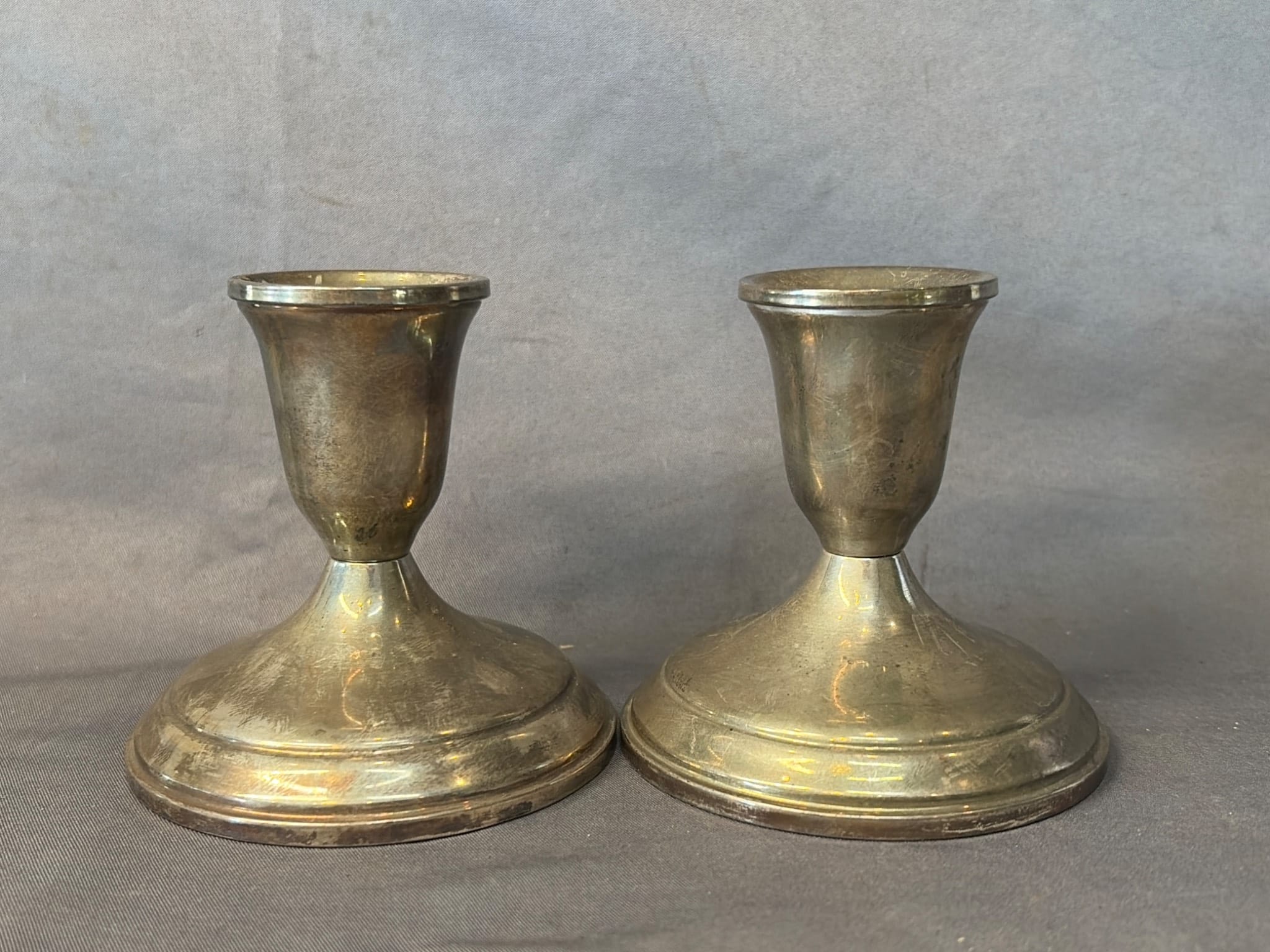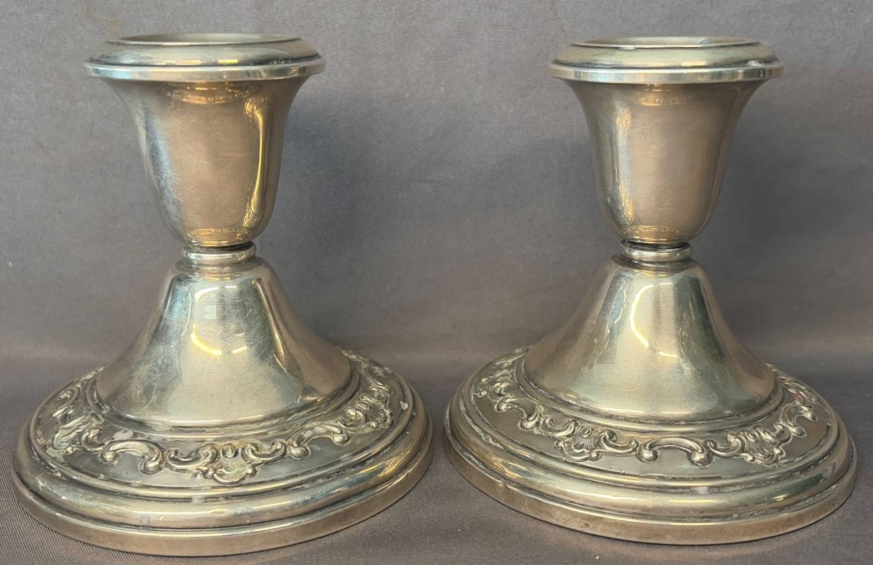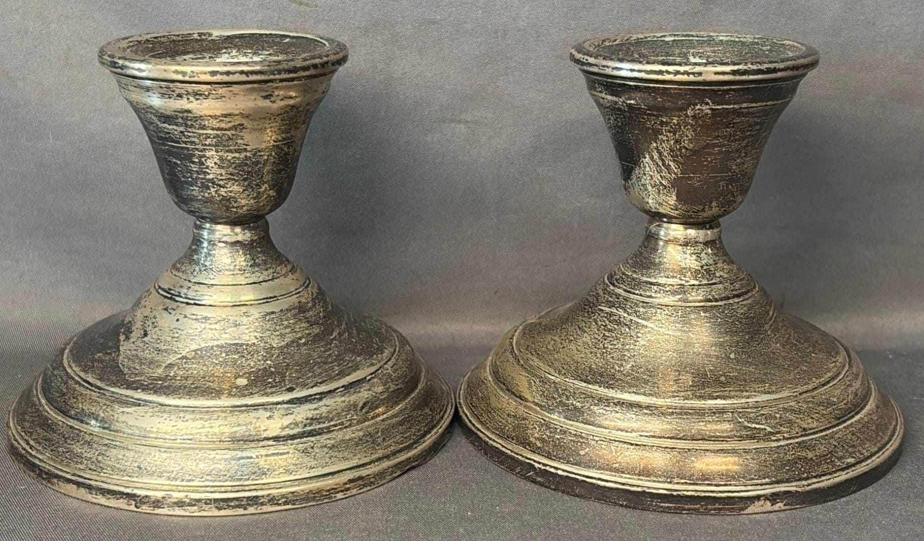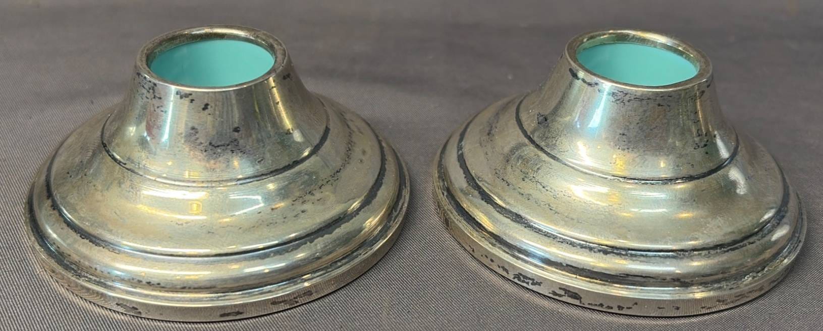 2005 Set of Two Sterling Weighted Candle Holders 3.5” Marked ‘Revere Silver Smiths Sterling Reinforced’