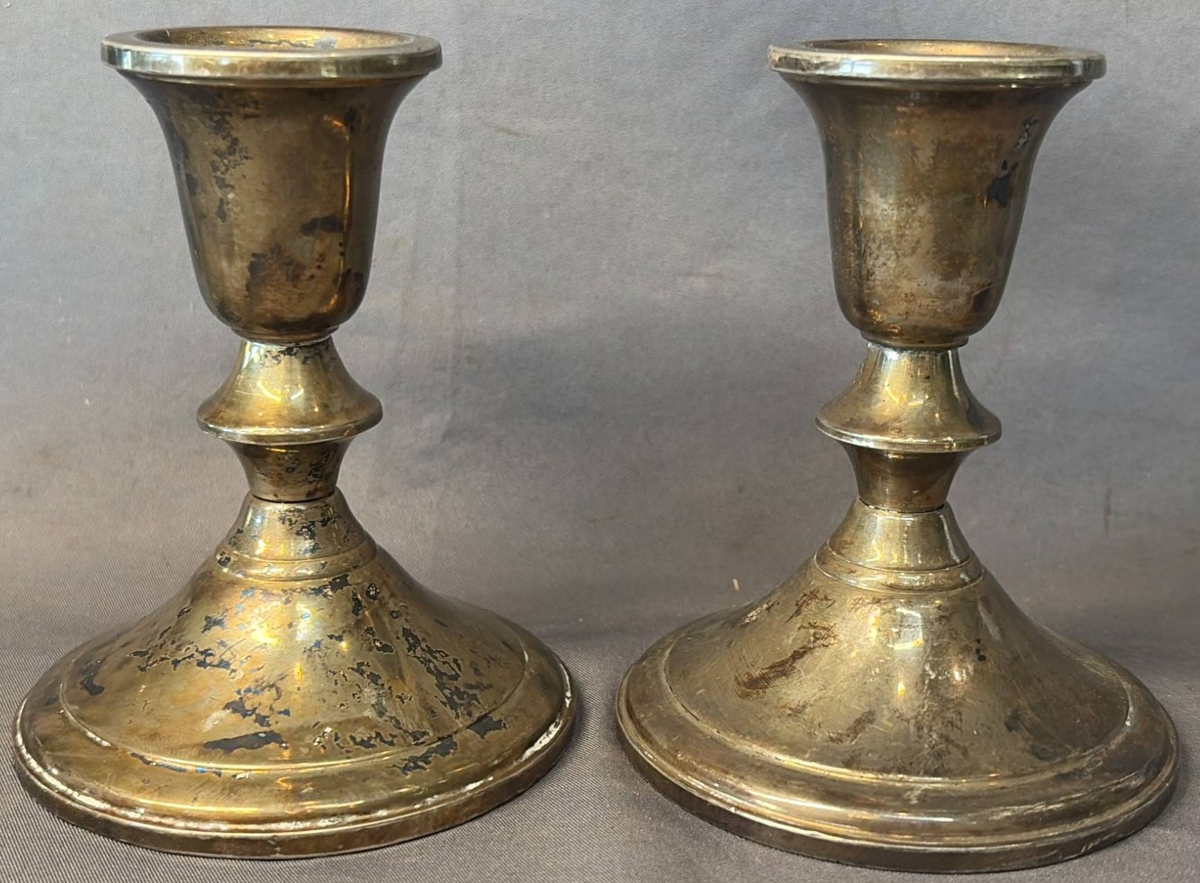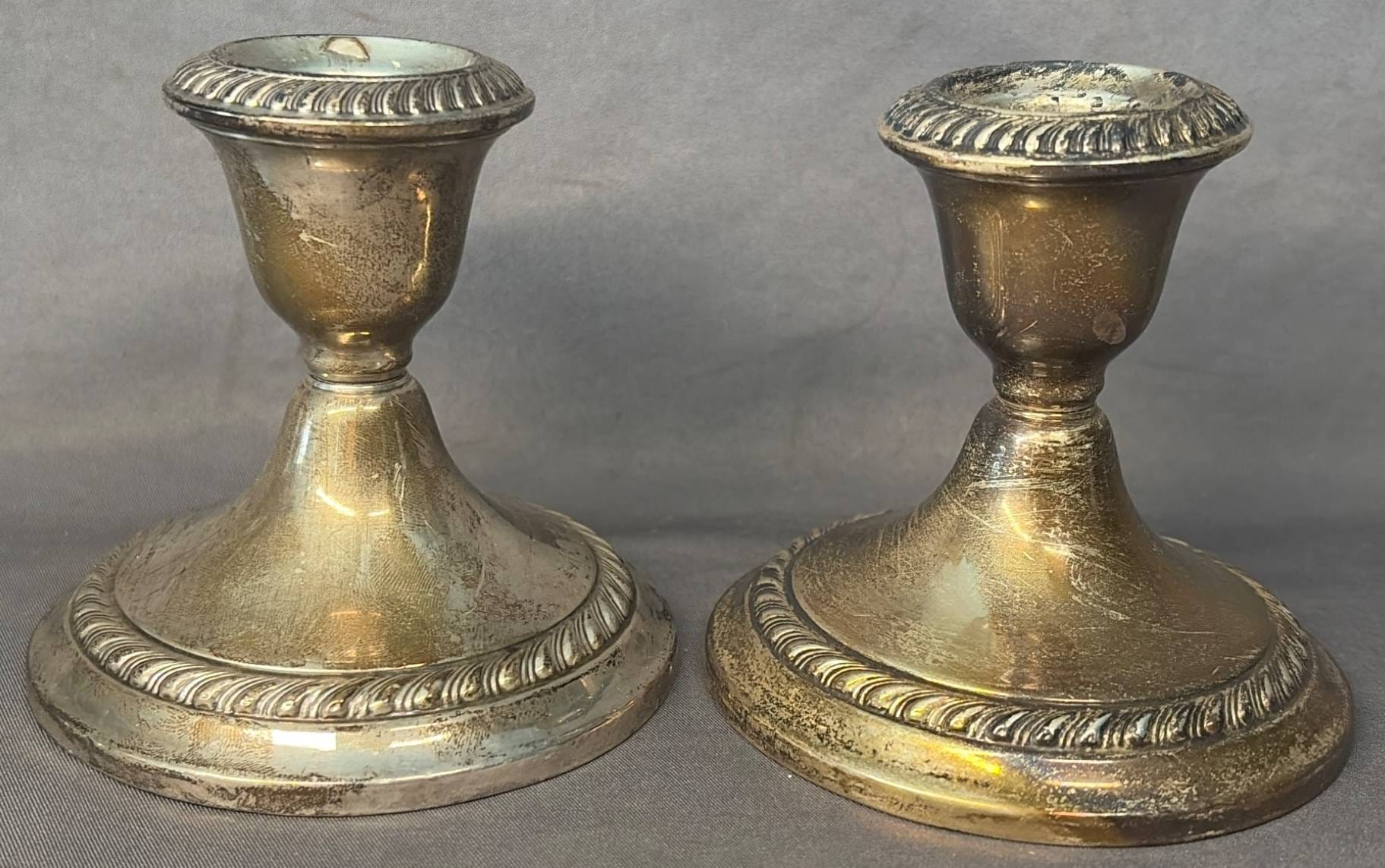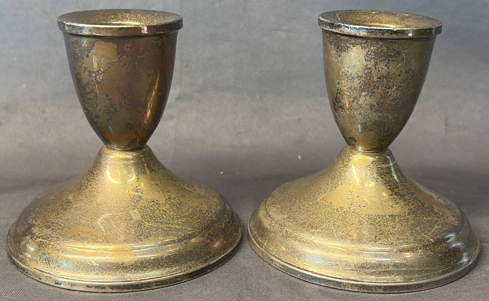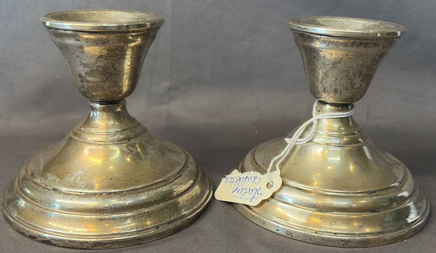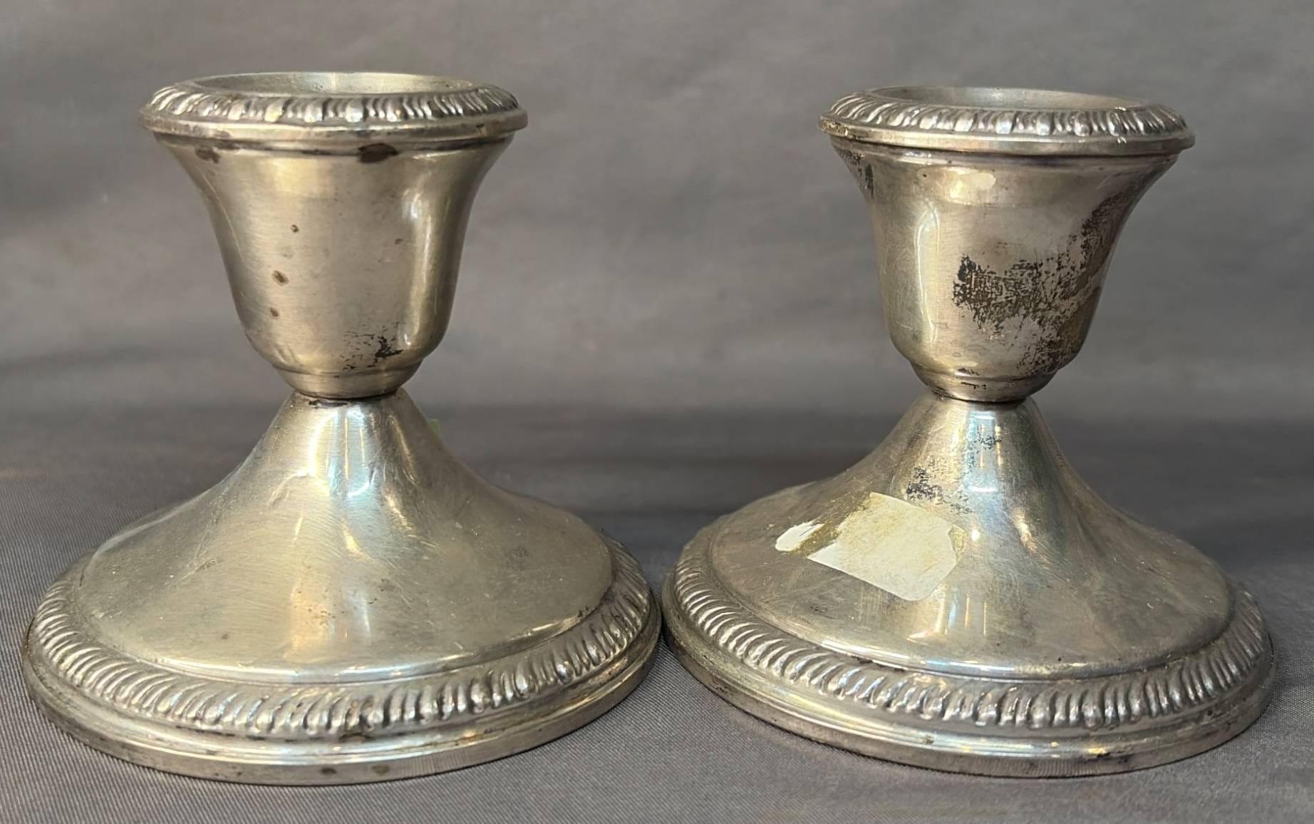 2005 Set of Two Sterling Weighted Candle Holders 3.5” Marked ‘Revere Silver Smiths Sterling Reinforced’