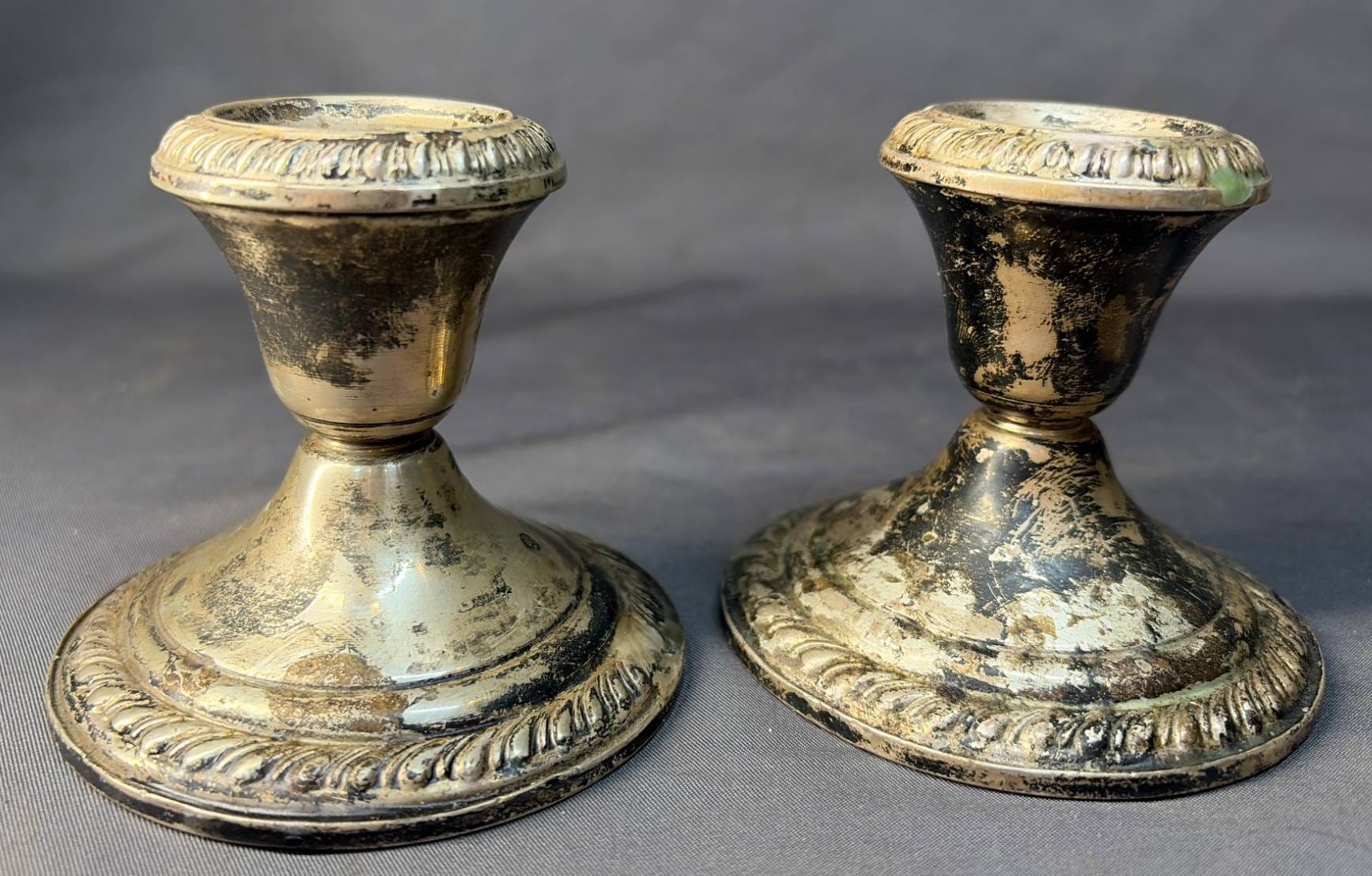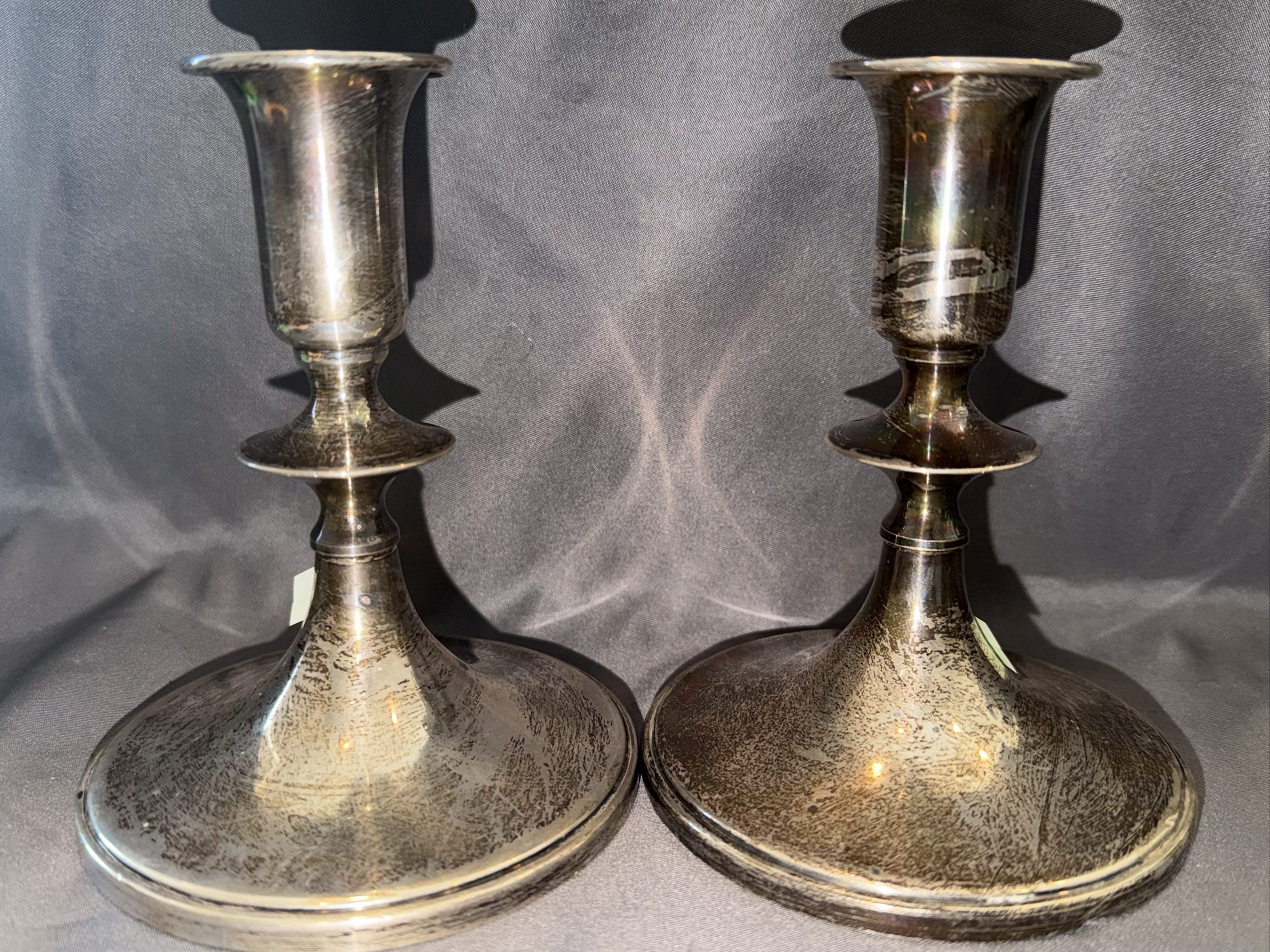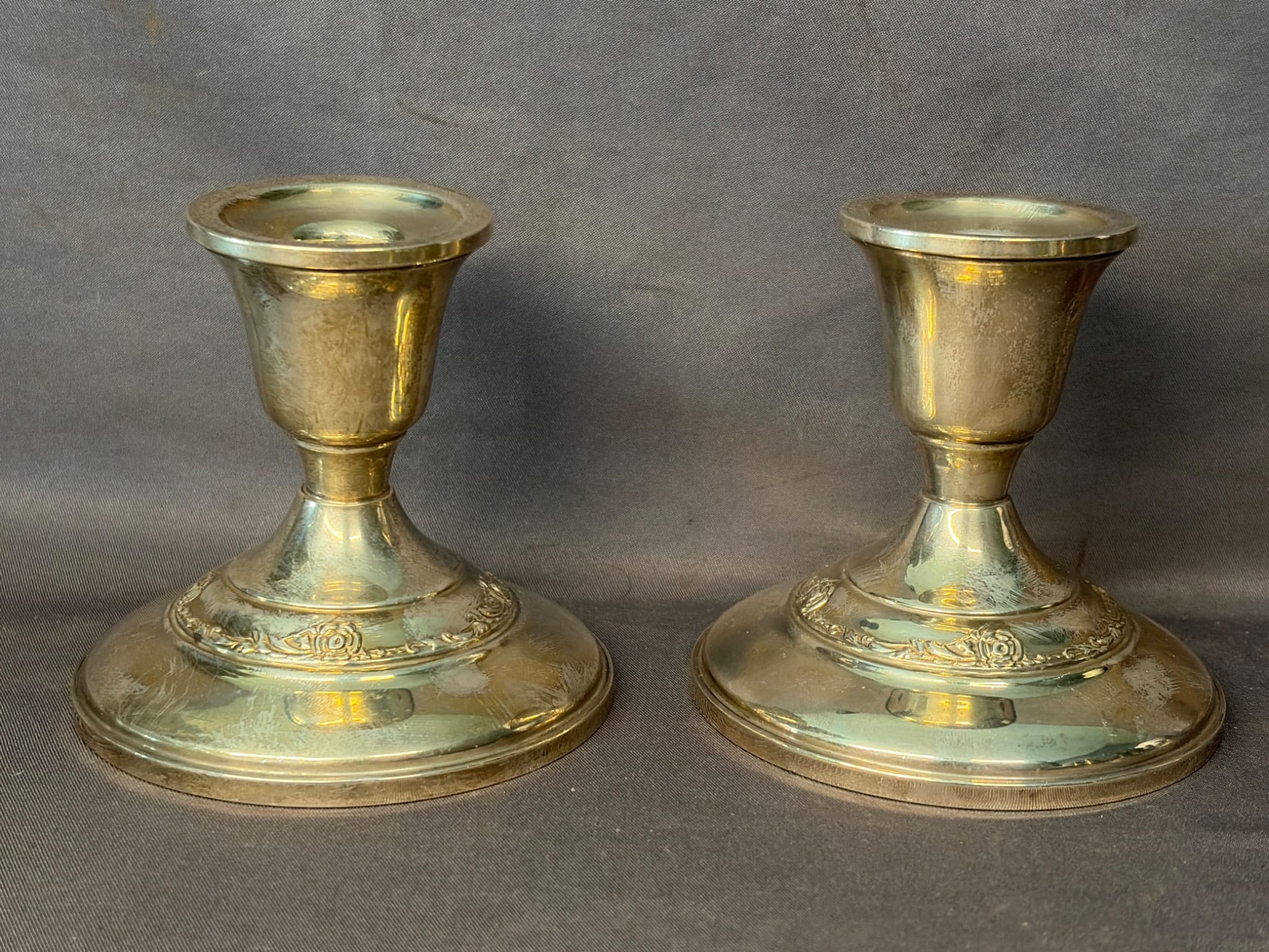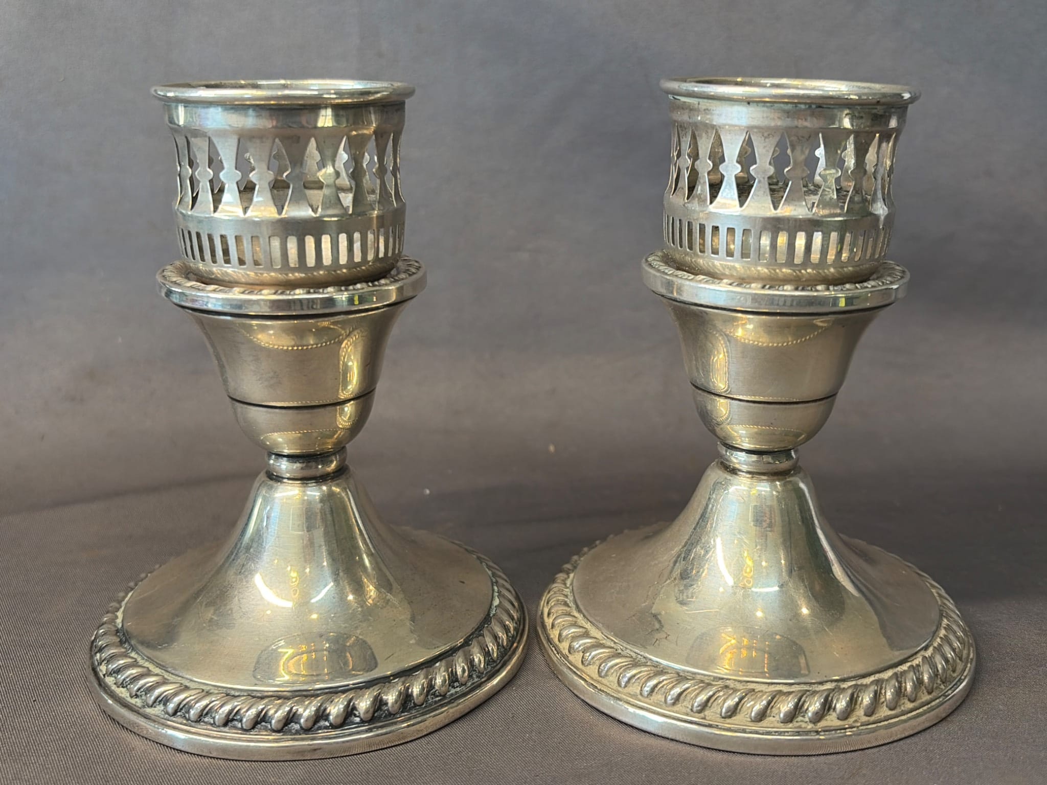 2005 Set of Two Sterling Weighted Candle Holders 3.5” Marked ‘Revere Silver Smiths Sterling Reinforced’