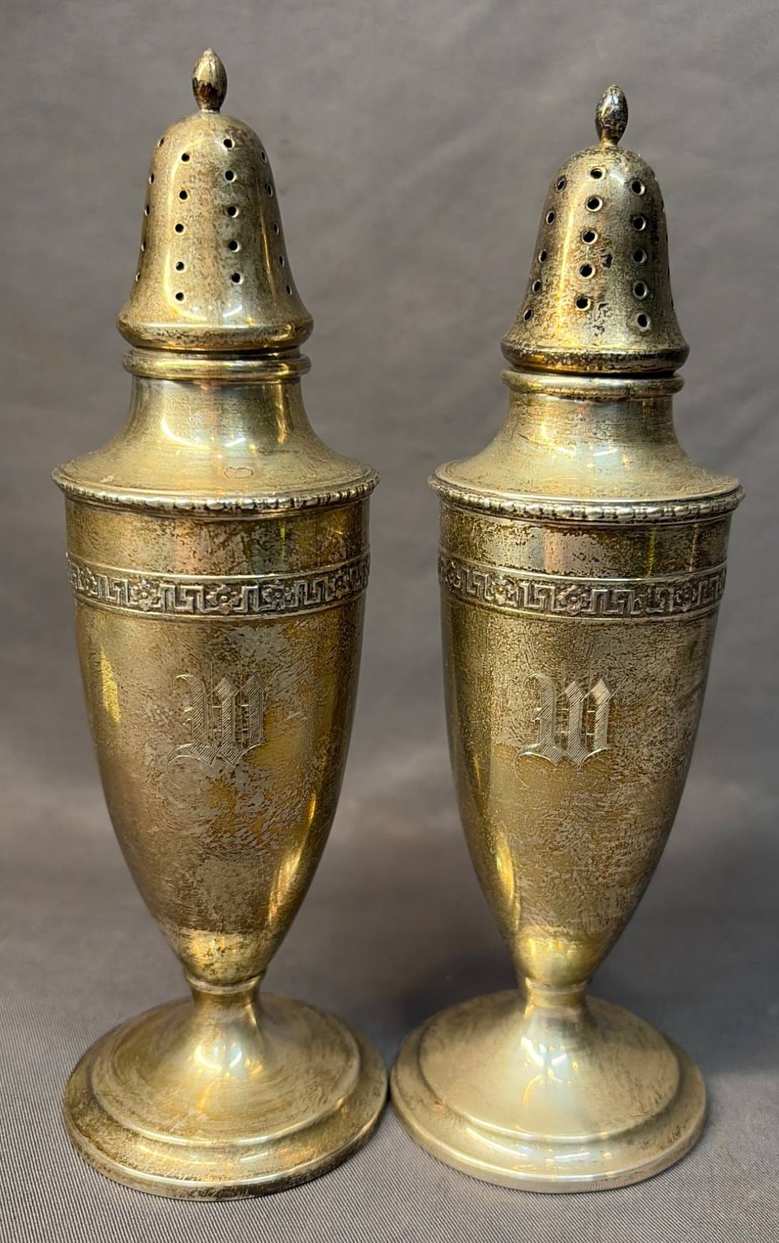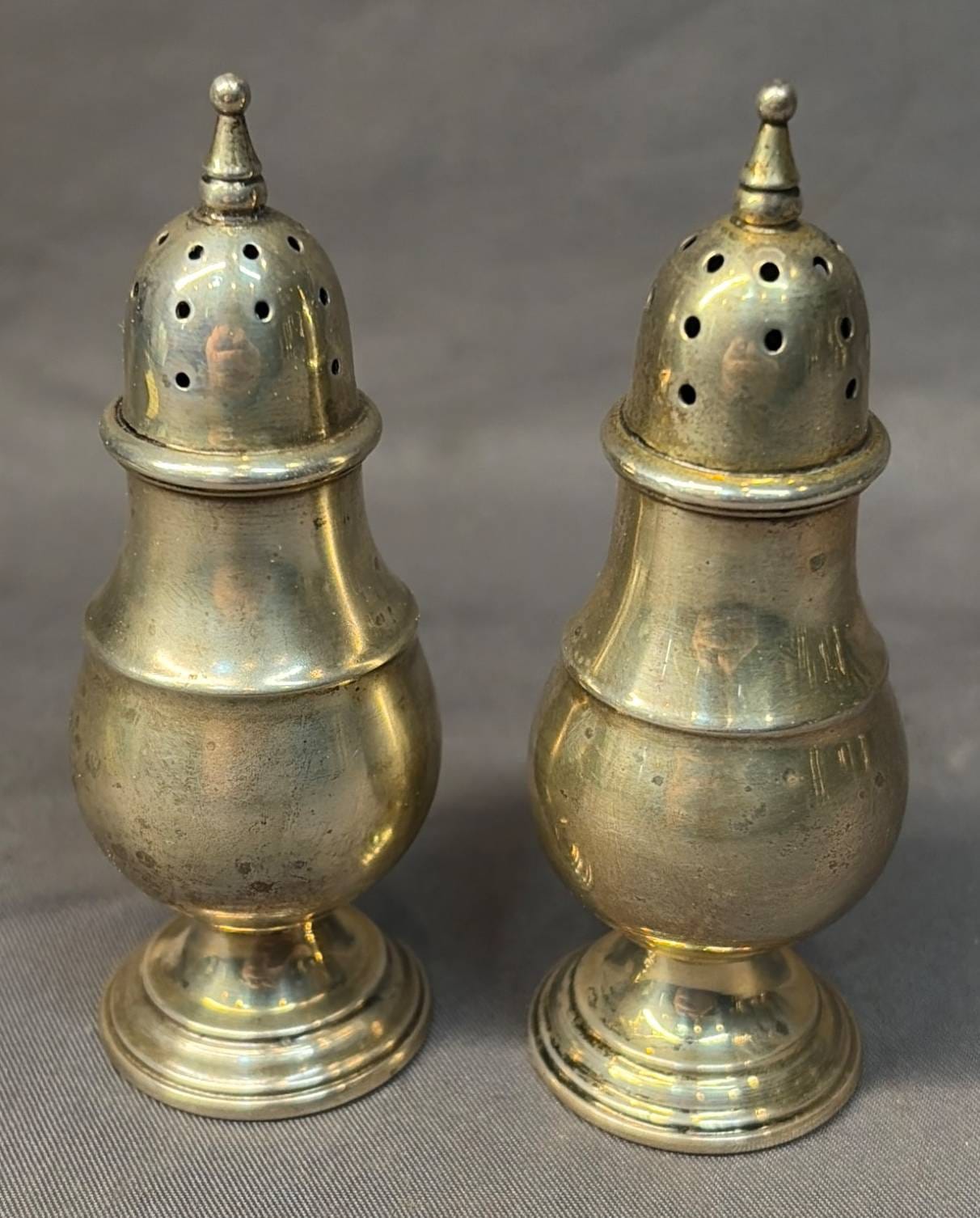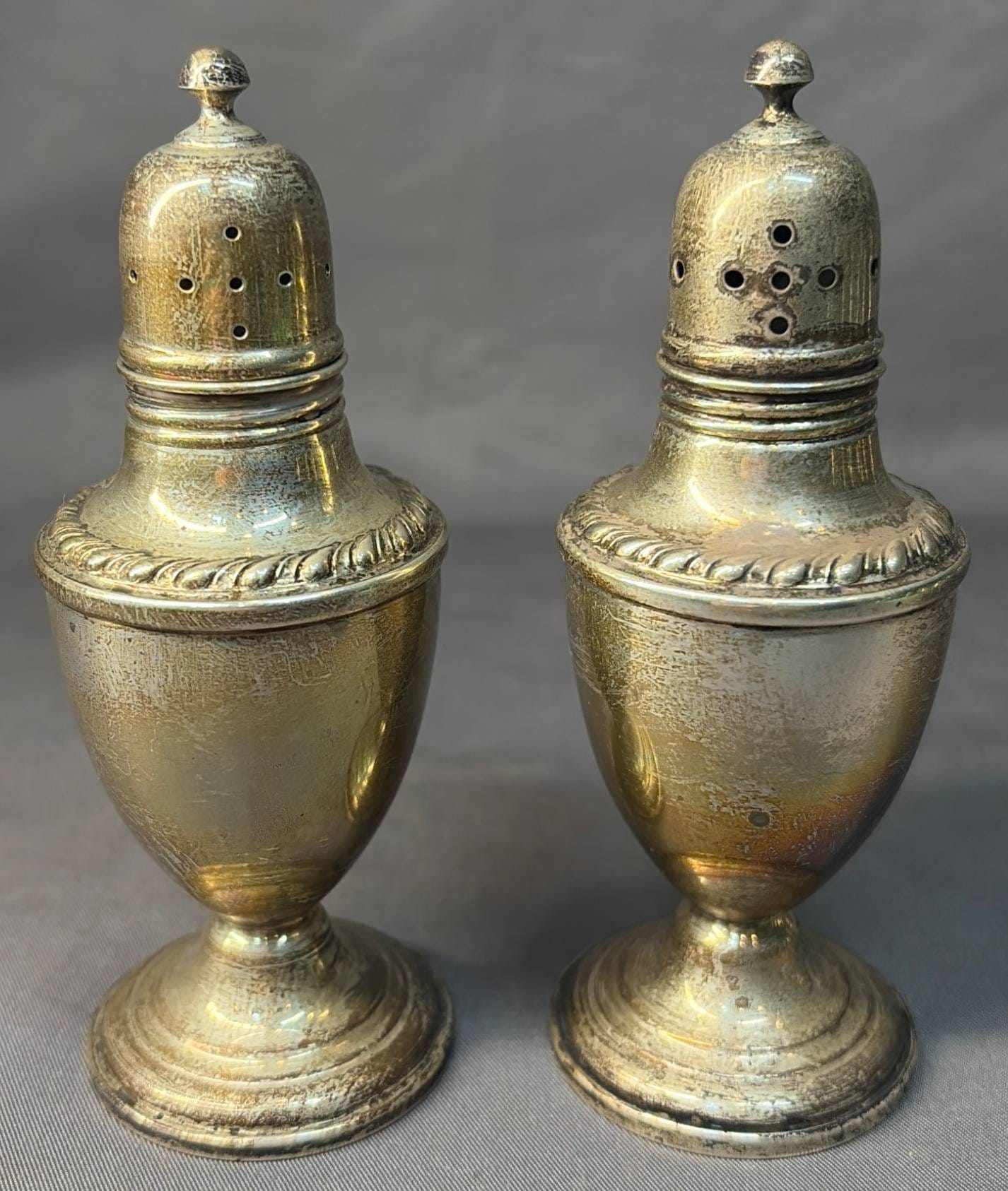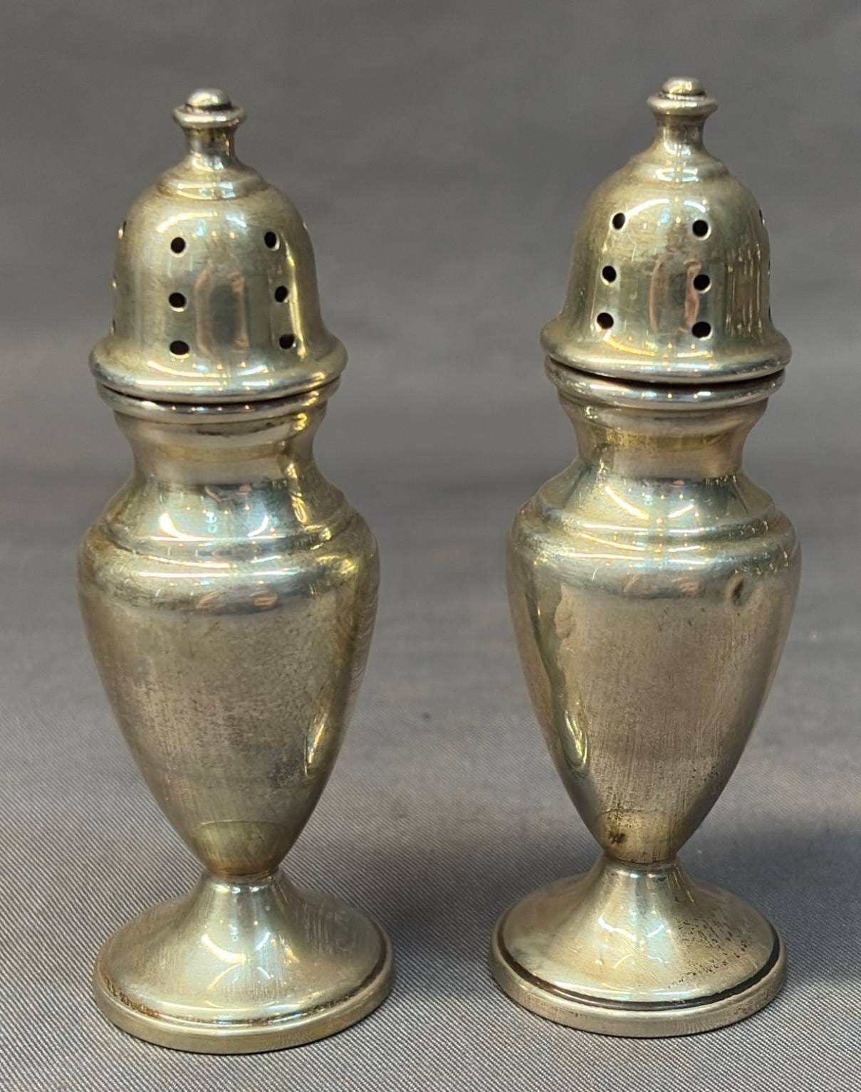 2003 Set of Two Cornwell Watrous Sterling Weighted Reinforced 22 Salt & Pepper Shakers, 5.5” H -