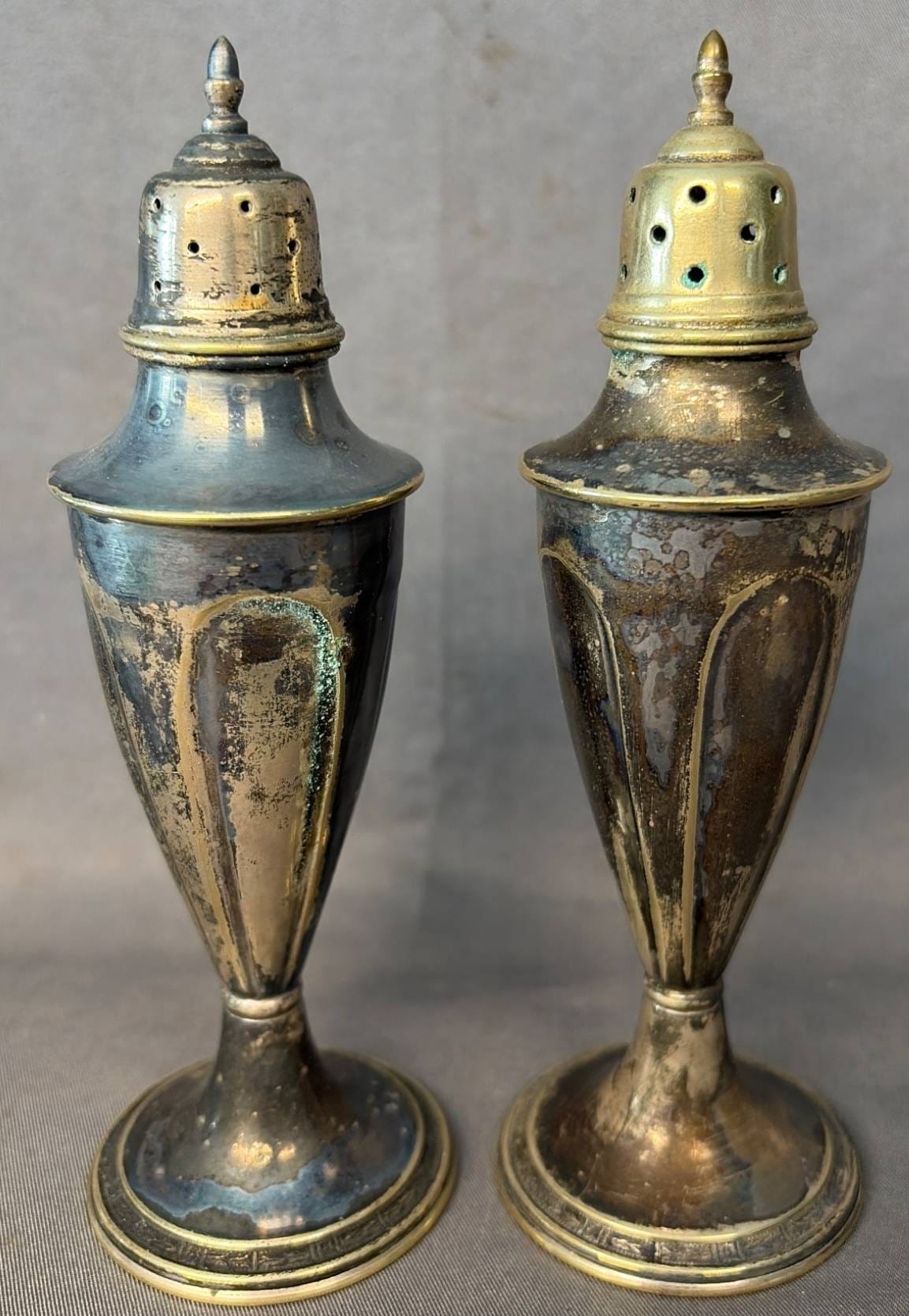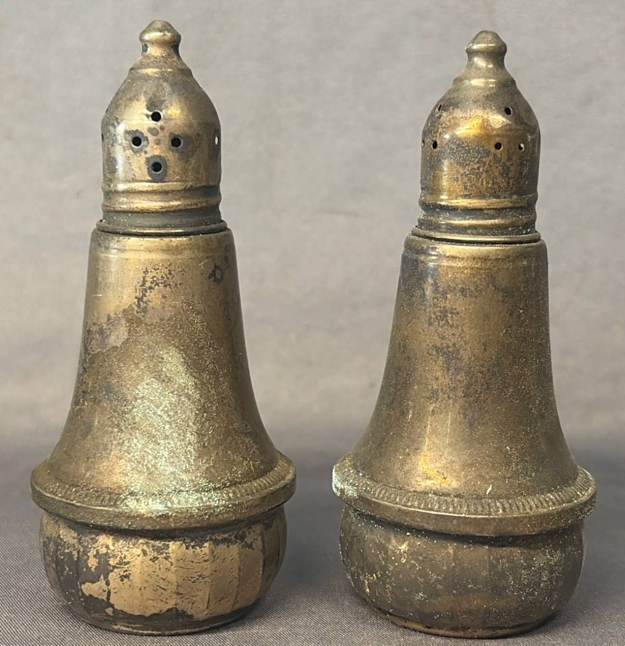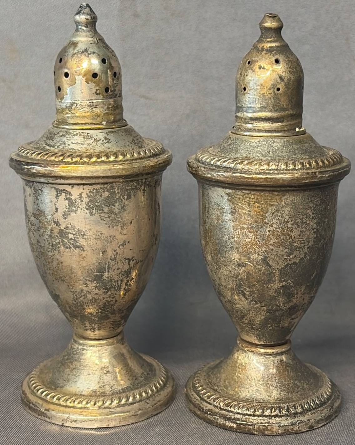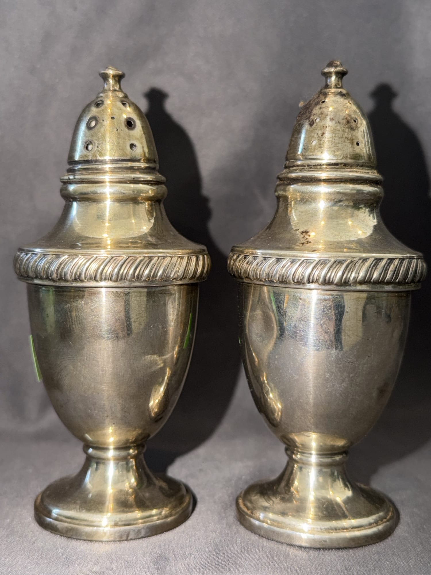 2003 Set of Two Cornwell Watrous Sterling Weighted Reinforced 22 Salt & Pepper Shakers, 5.5” H -