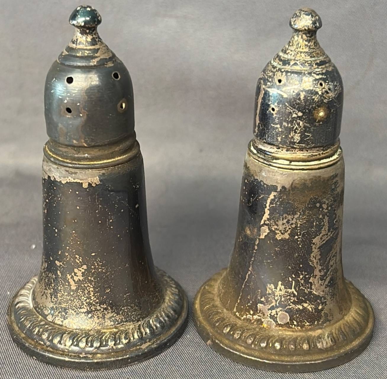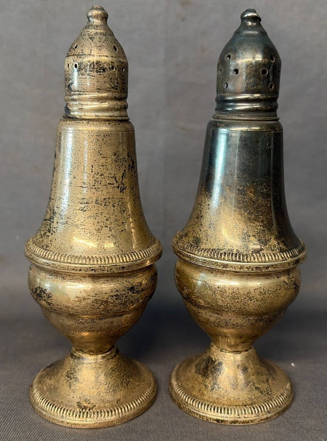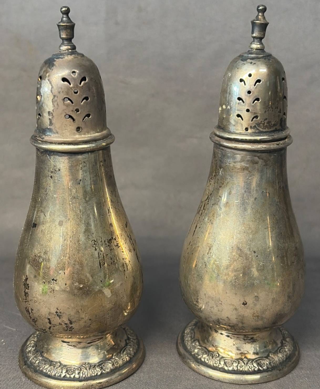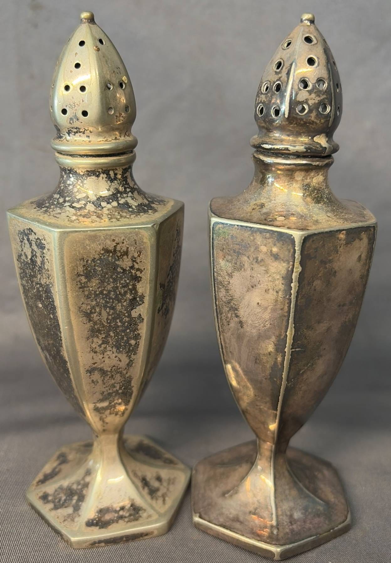 2106 Sterling Overlay Salt and Pepper Shakers, 1.5” x 1.5” x 2”