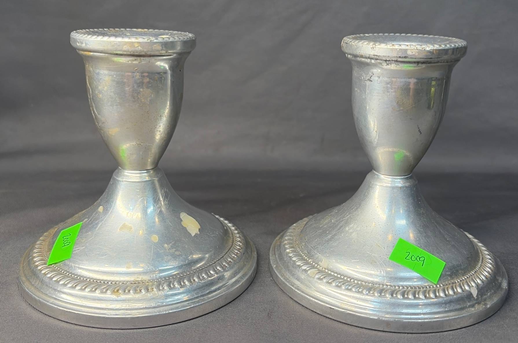 2000 Set of Two Empire Sterling Weighted Candle Holders, 5”