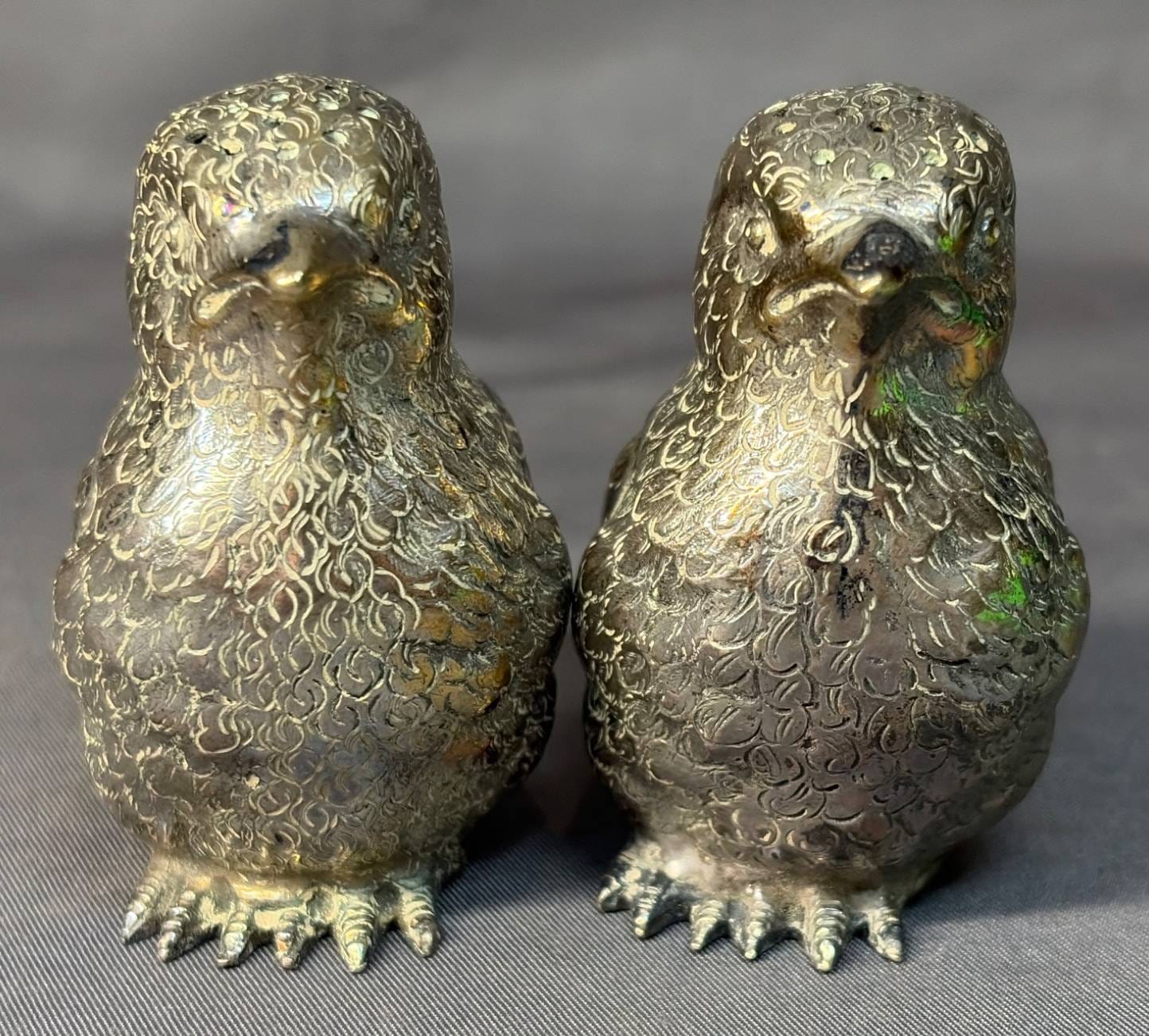 2012 German Silver Plate Bird Salt and Pepper Shakers, 1.5” x 1” x 2.5” 125g
