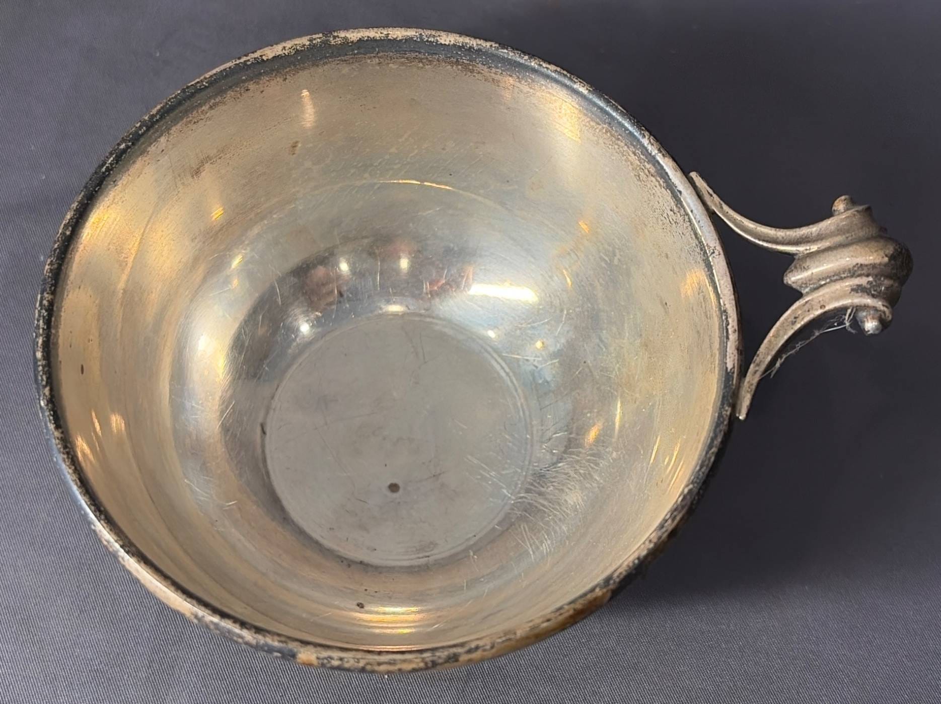 2024 Sterling Footed Bowl with Handle, Marked 3076, 5.5” x 4.5” x 2.5” 127 Grams Total Weight