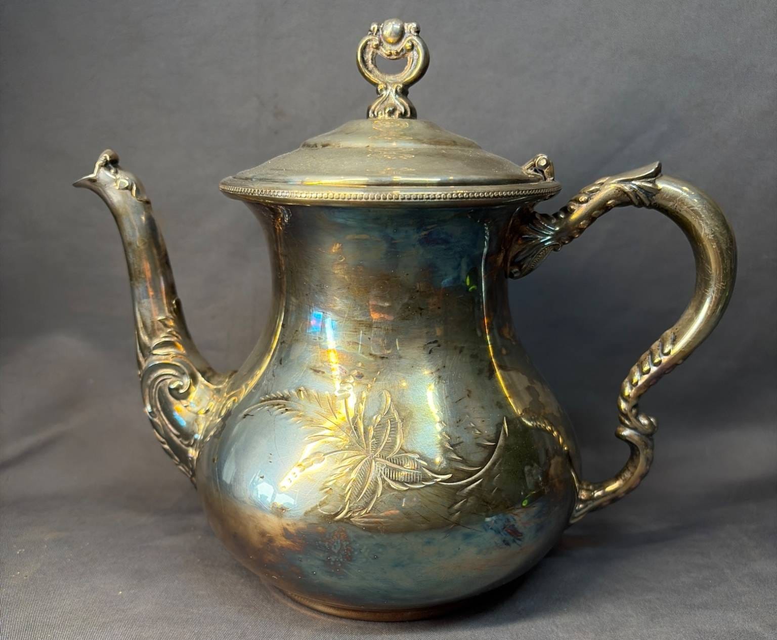 2026 Forbes S.P. Co. Silver-Plated Teapot with Floral Engravings, 8” x 4” x 6.5”