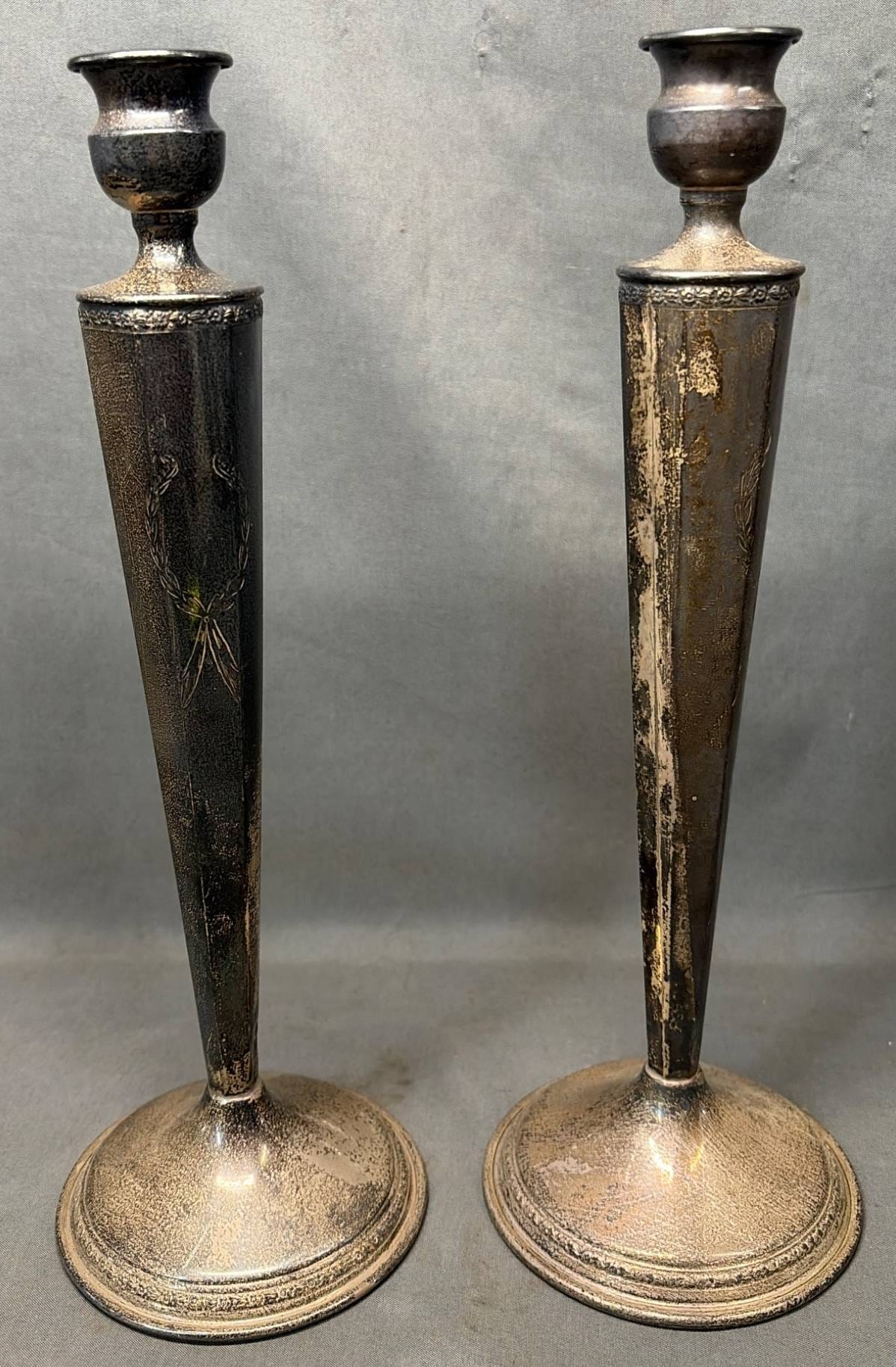 2031 Pair of Candlestick Holders Marked ‘Sterling,’ 4” x 4” x 11.5”- 179 Grams Total Weight