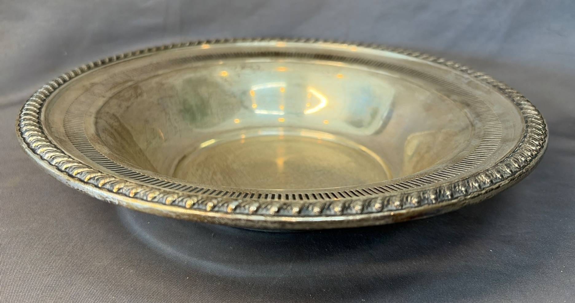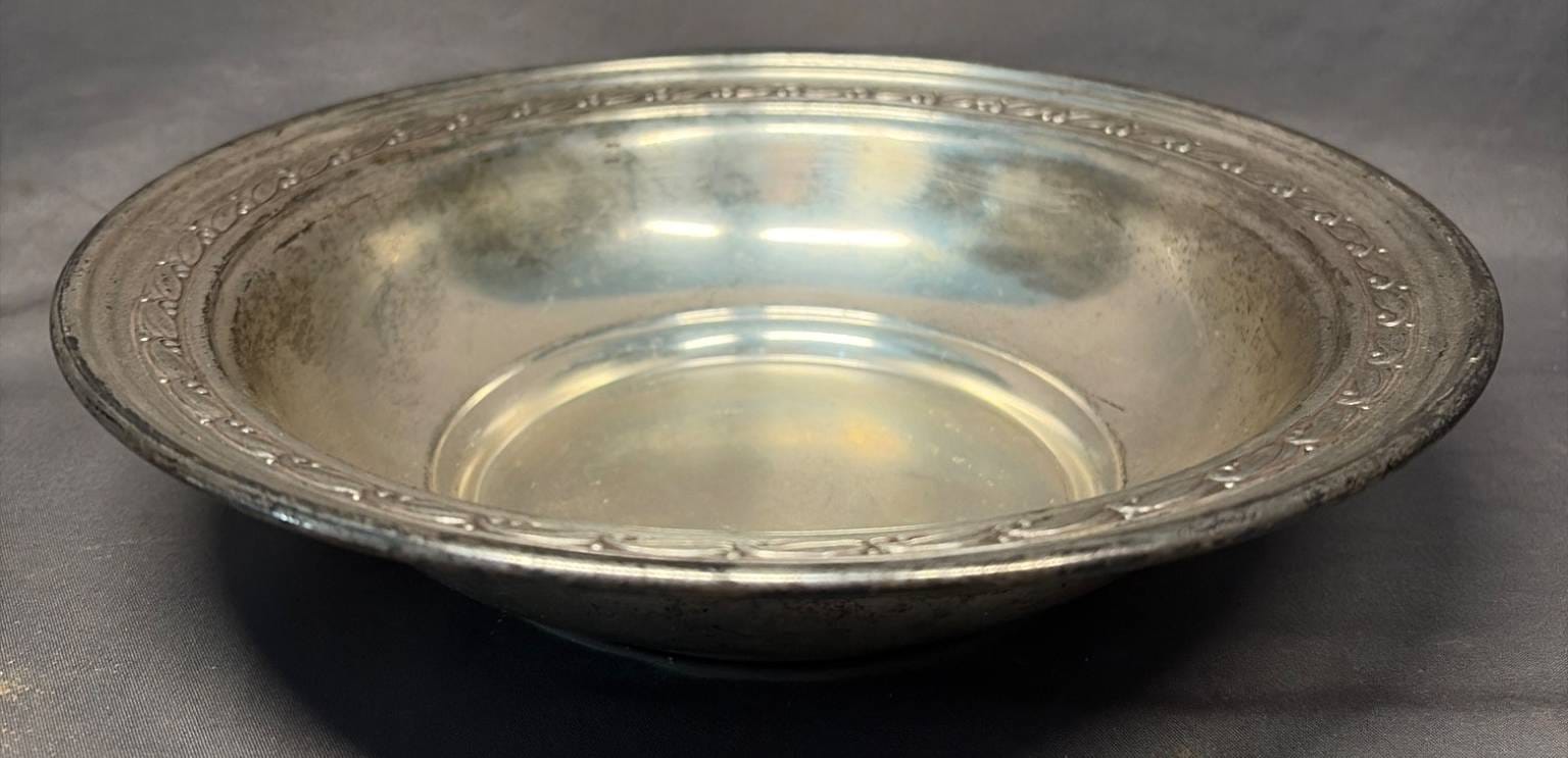 2123 Sterling Silver Bowl with Embossed Rim Design, 9” x 9” x 2”, 244 – Grams Total Weight