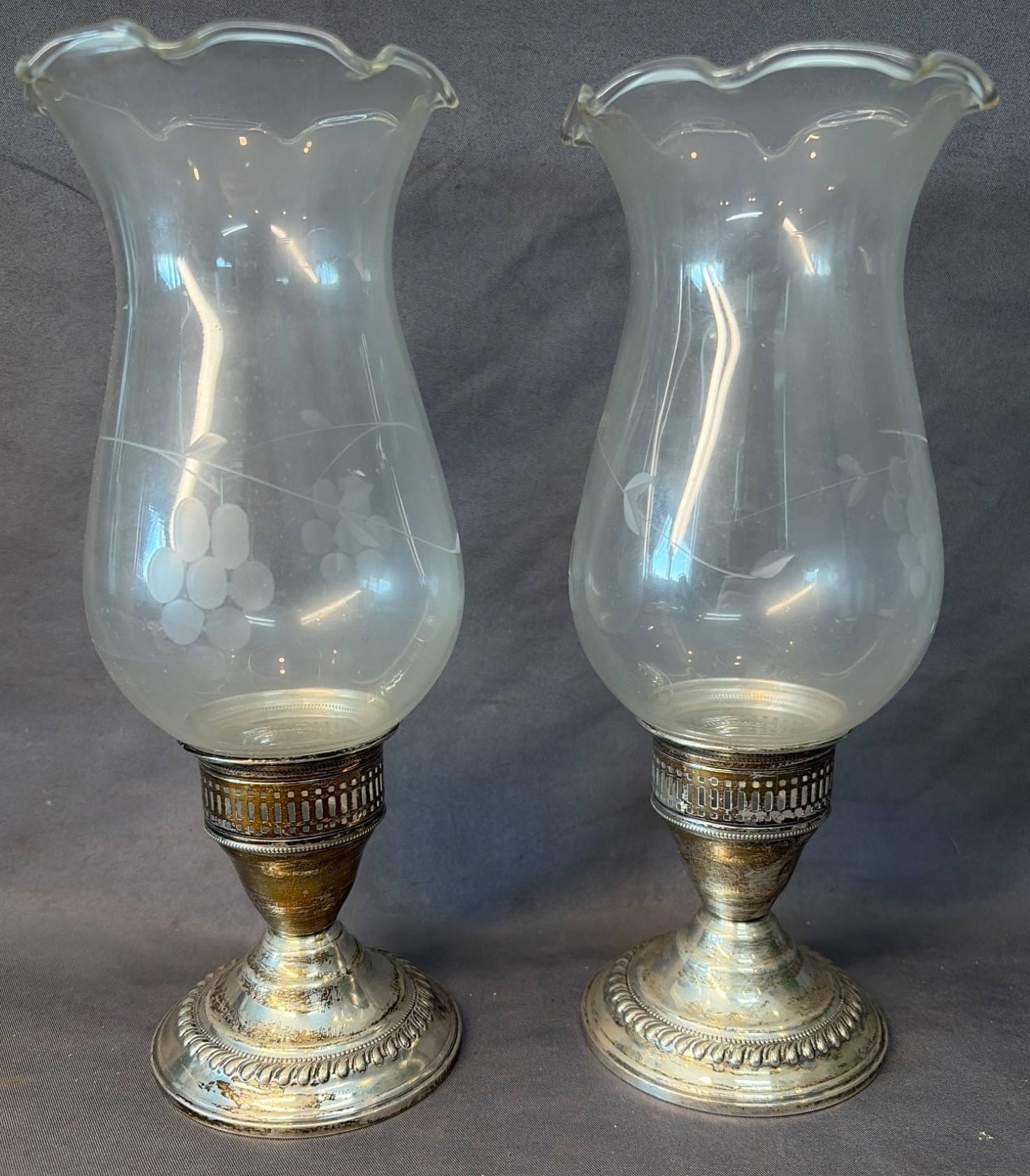 2030 Pair of Fisher Sterling Weighted Candle Holders, Marked 370, 3.5” x 3.5” x 10”