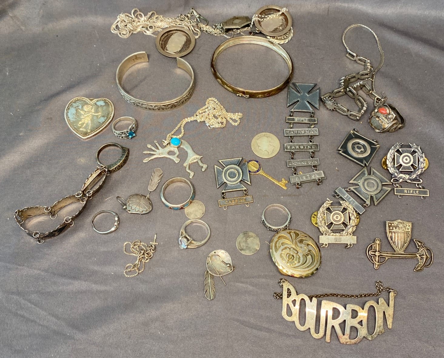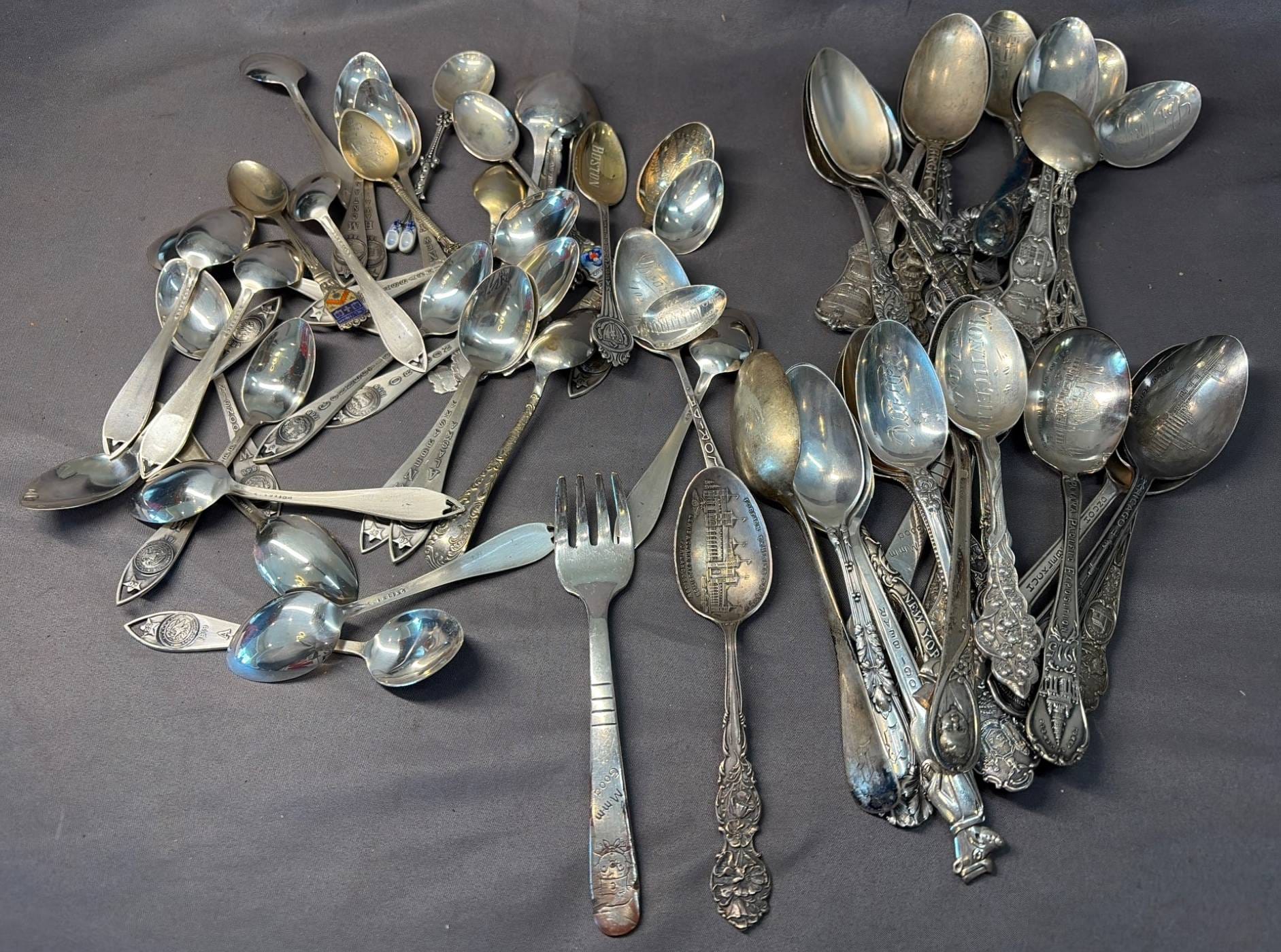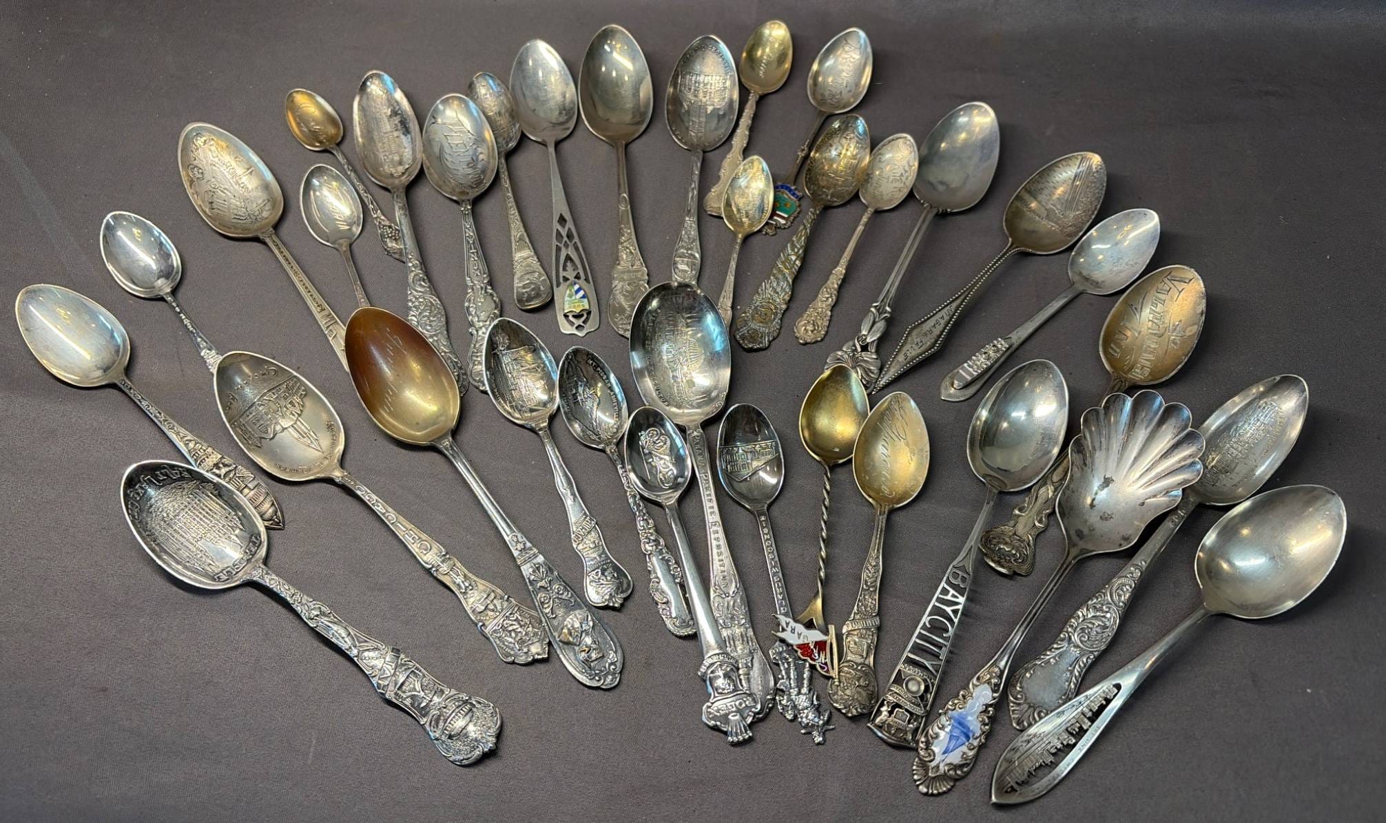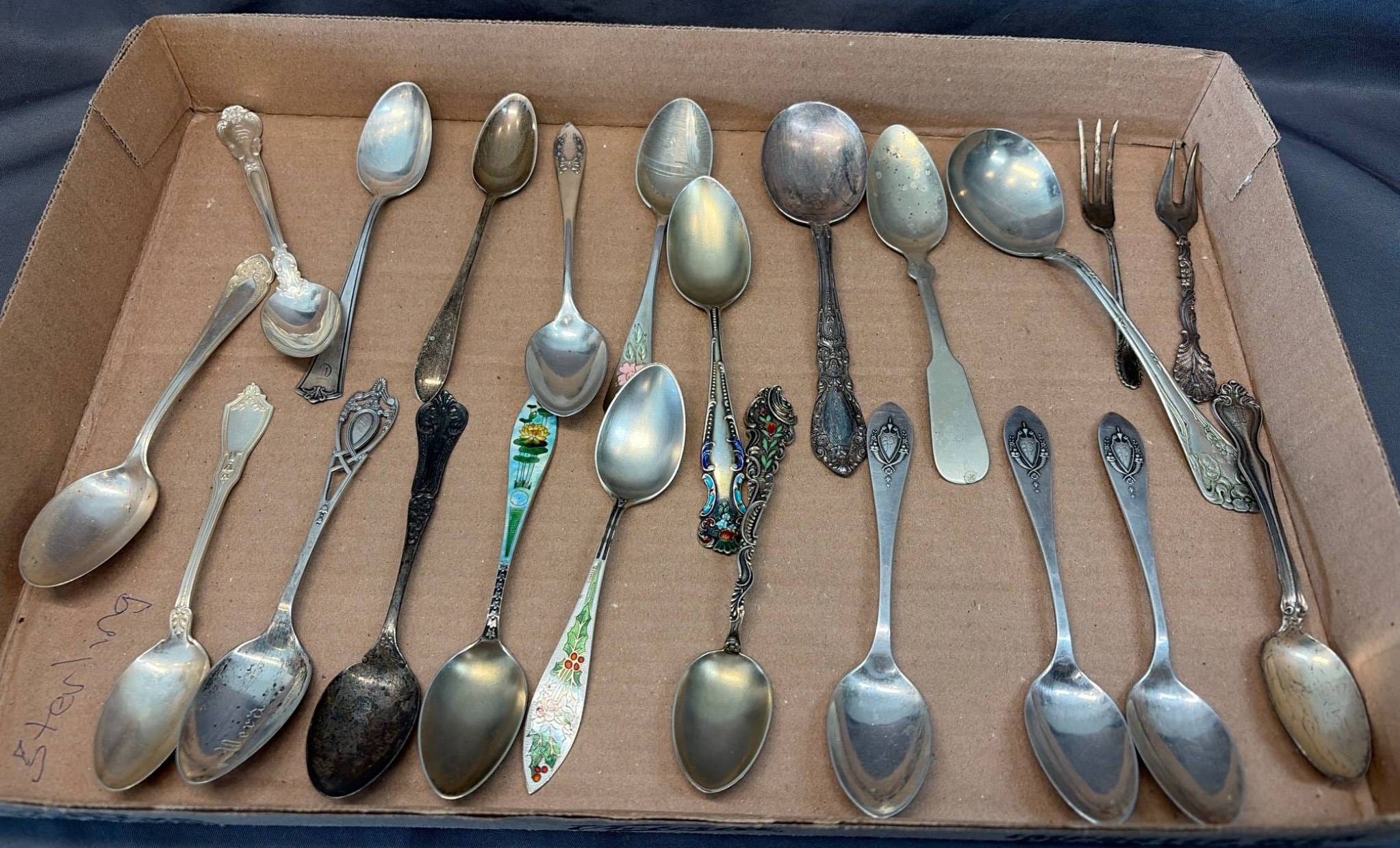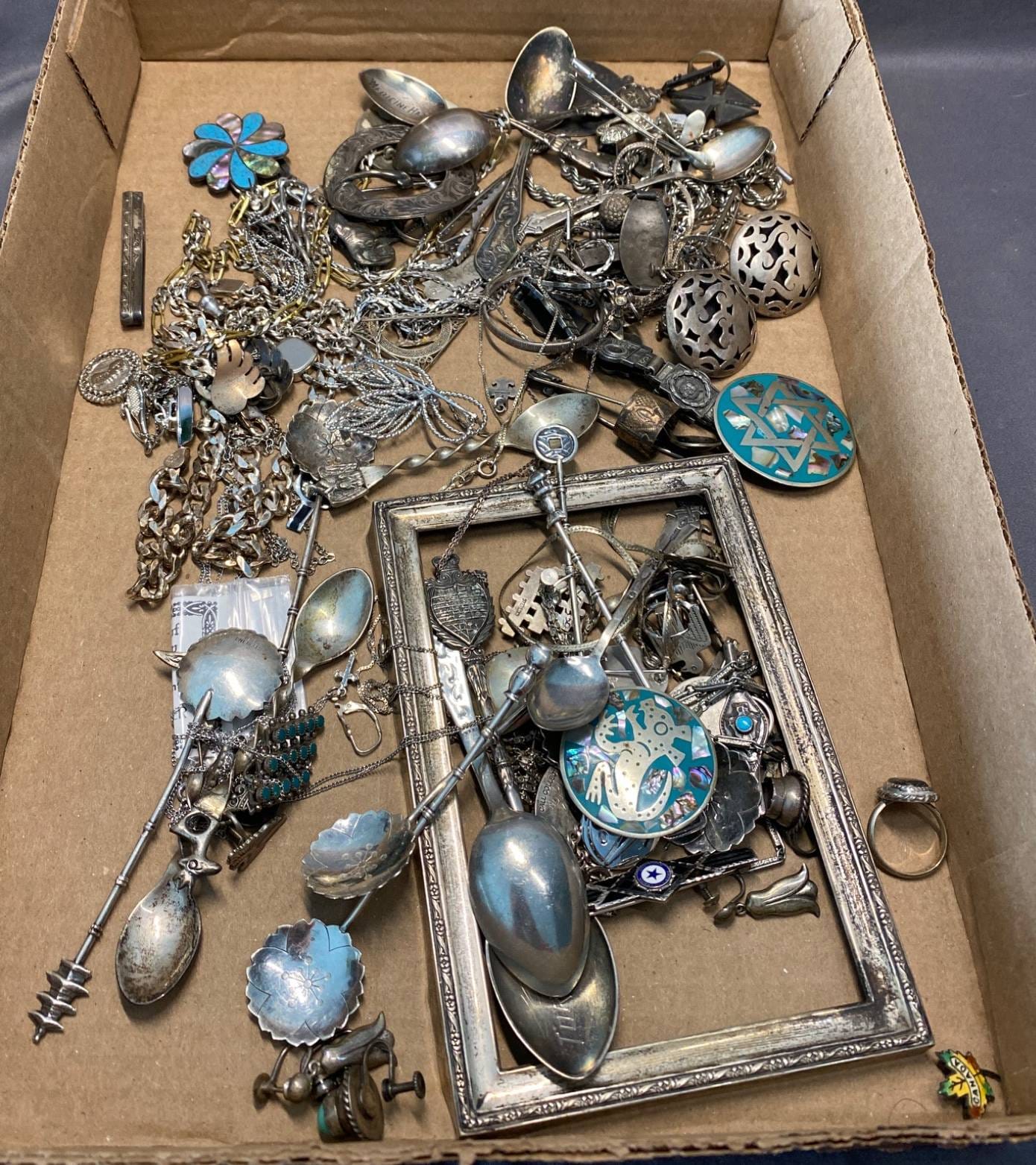 2134 Spoons, Jewelry, Brooches inc. .950 Sterling & Mexico Sterling - Total Weight 712 grams