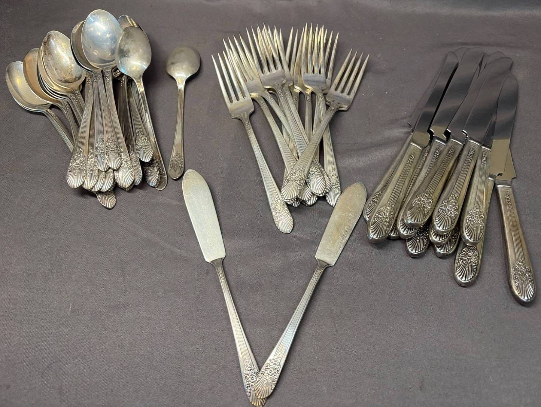 2145 Flatware inc. Lady Doris Silver Plate, WM Rogers - Total Weight 2,759 grams