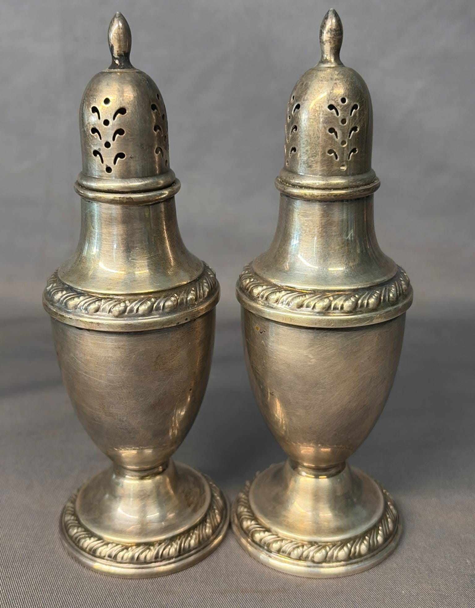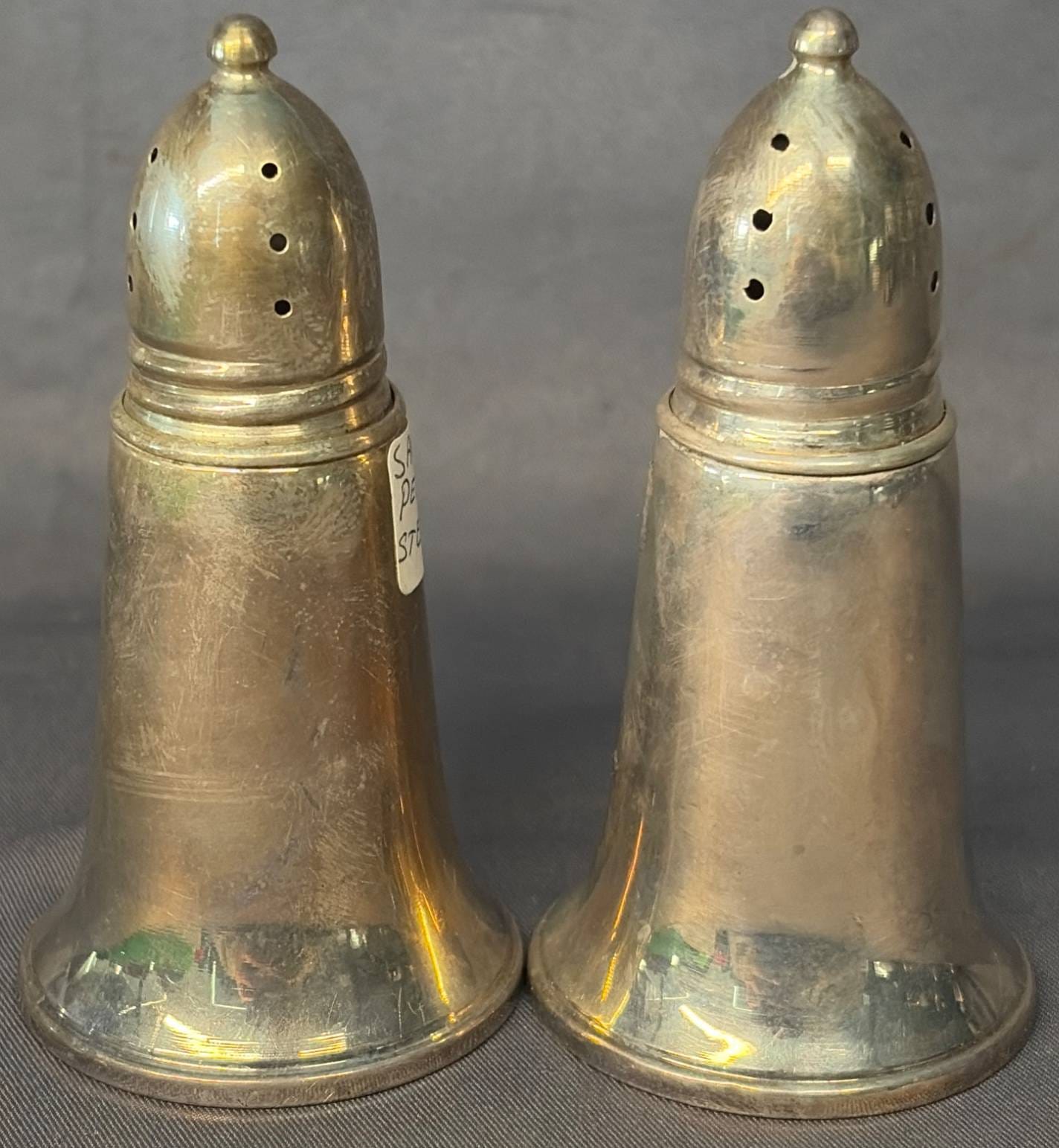 2002 Salt & Pepper Shakers Marked ‘Sterling Weighted 409’, 4.5"
