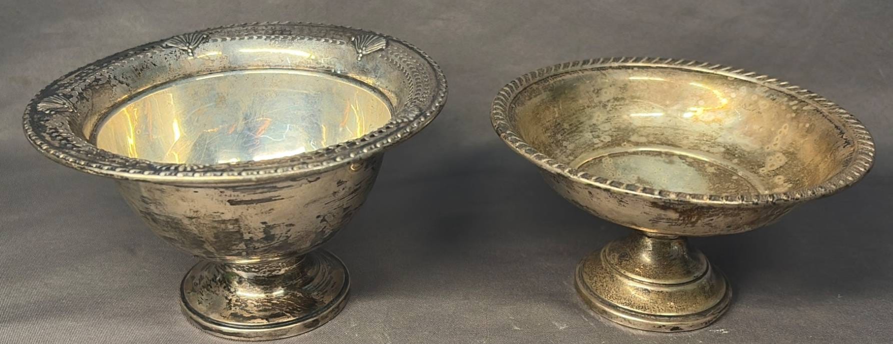 2102 2 Sterling Weighted Compotes, One Marked Lunt, 4.5” x 4.5” x 2.5” & 5” x 5” x 3”