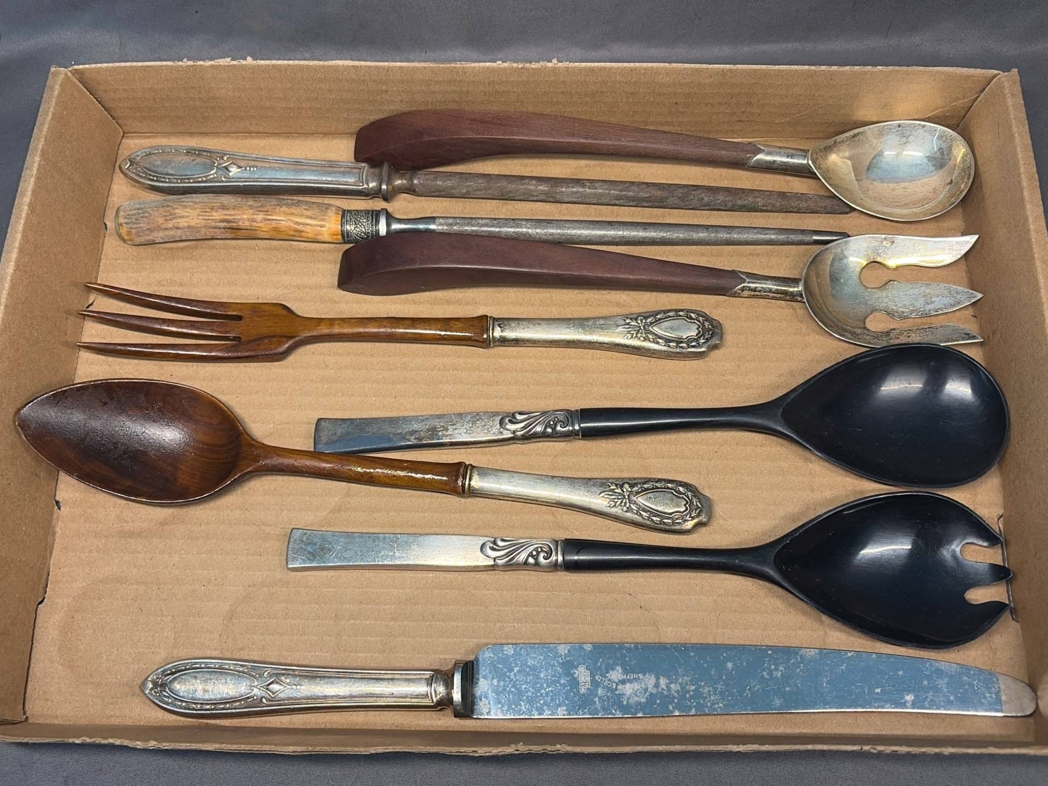 2117 Flatware and Utensils Inc. Alvin Sterling Handles and Sheffield Knife 11”- 13.5”