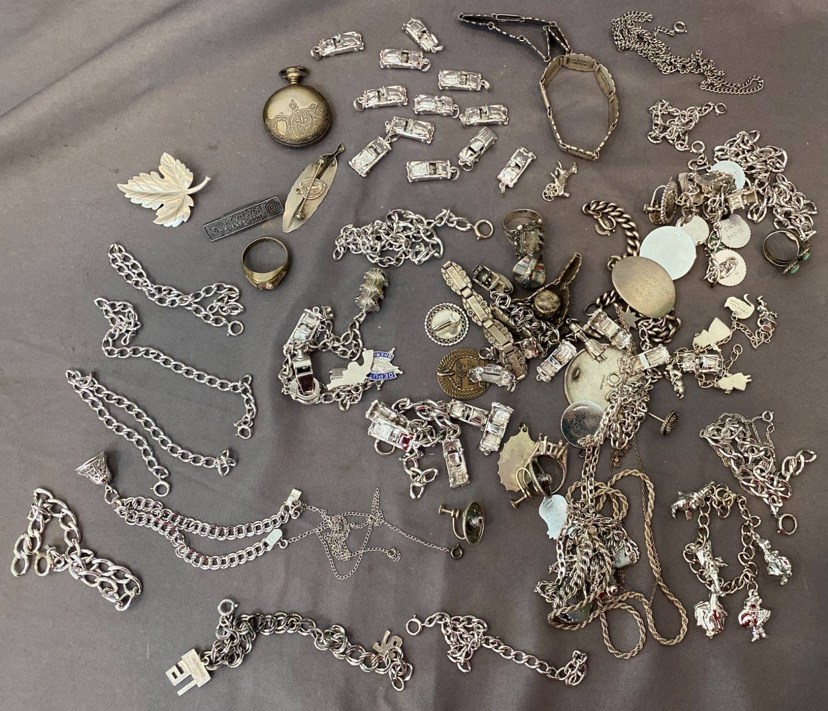 2133 Bracelets, Charms, Brooch, Rings and Jewelry Assortment inc. Sterling - Total Weight 543 grams