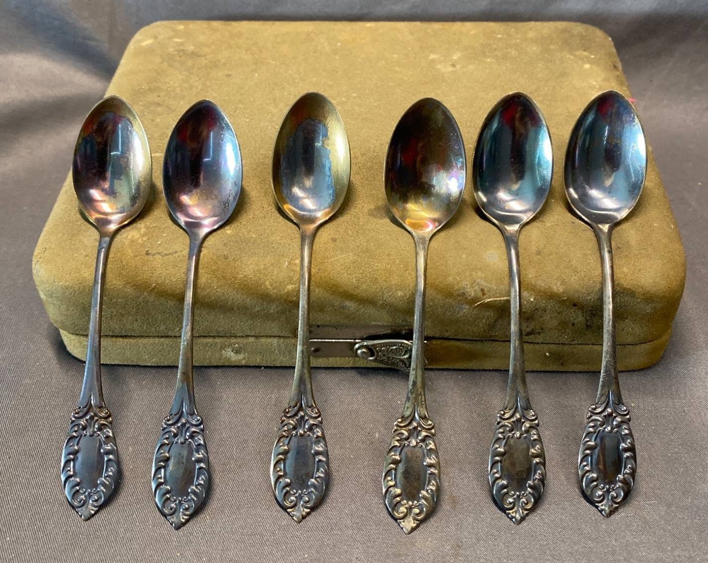 2135 6 Sterling Silver Teaspoons in Velvet-Lined Storage Case - Total Weight of Spoons 51 grams