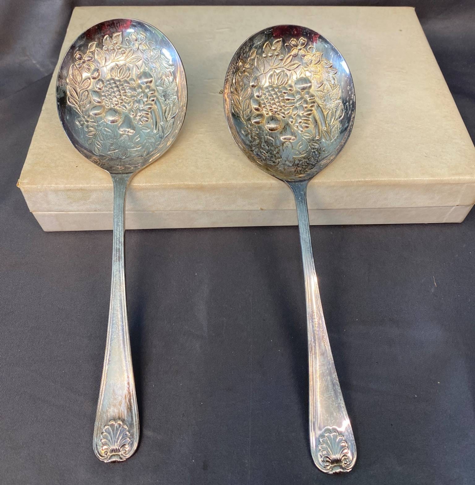 2136 2 E.P.N.S. Shefield England Spoons with Embossed Floral Design - Total Weight 169 grams