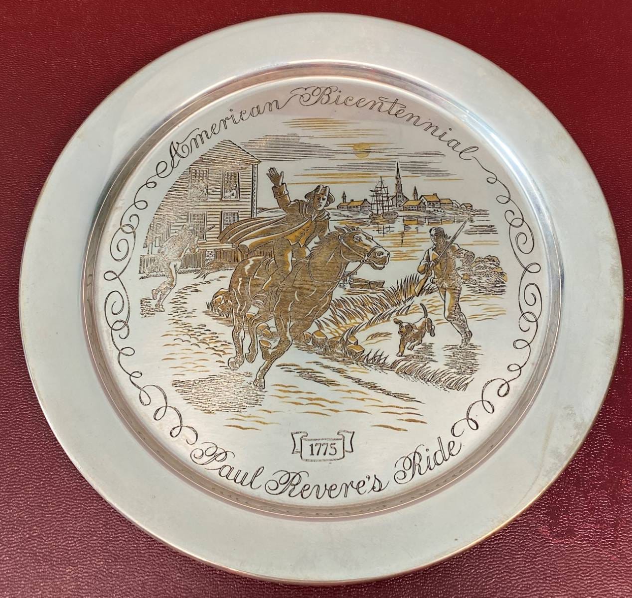 2137 Limited Edition 24KT Gold on Solid Sterling Silver Plate by The Danbury Mint Featuring Paul Revere’s Ride - Total Weight 234 grams