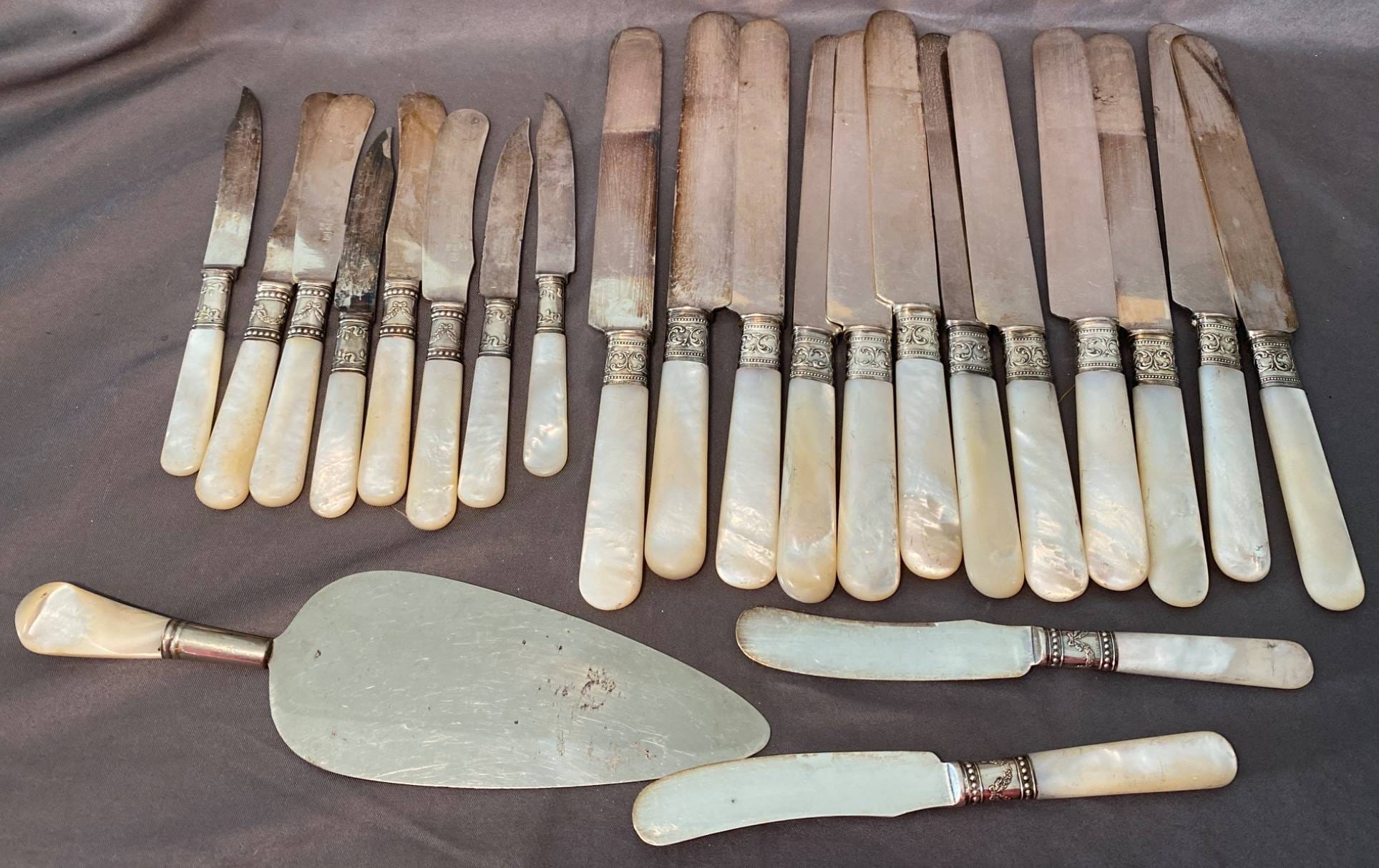 2140 23 Pieces of Flatware With Mother-of-Pearl Handles, Unmarked - Total Weight 877 grams