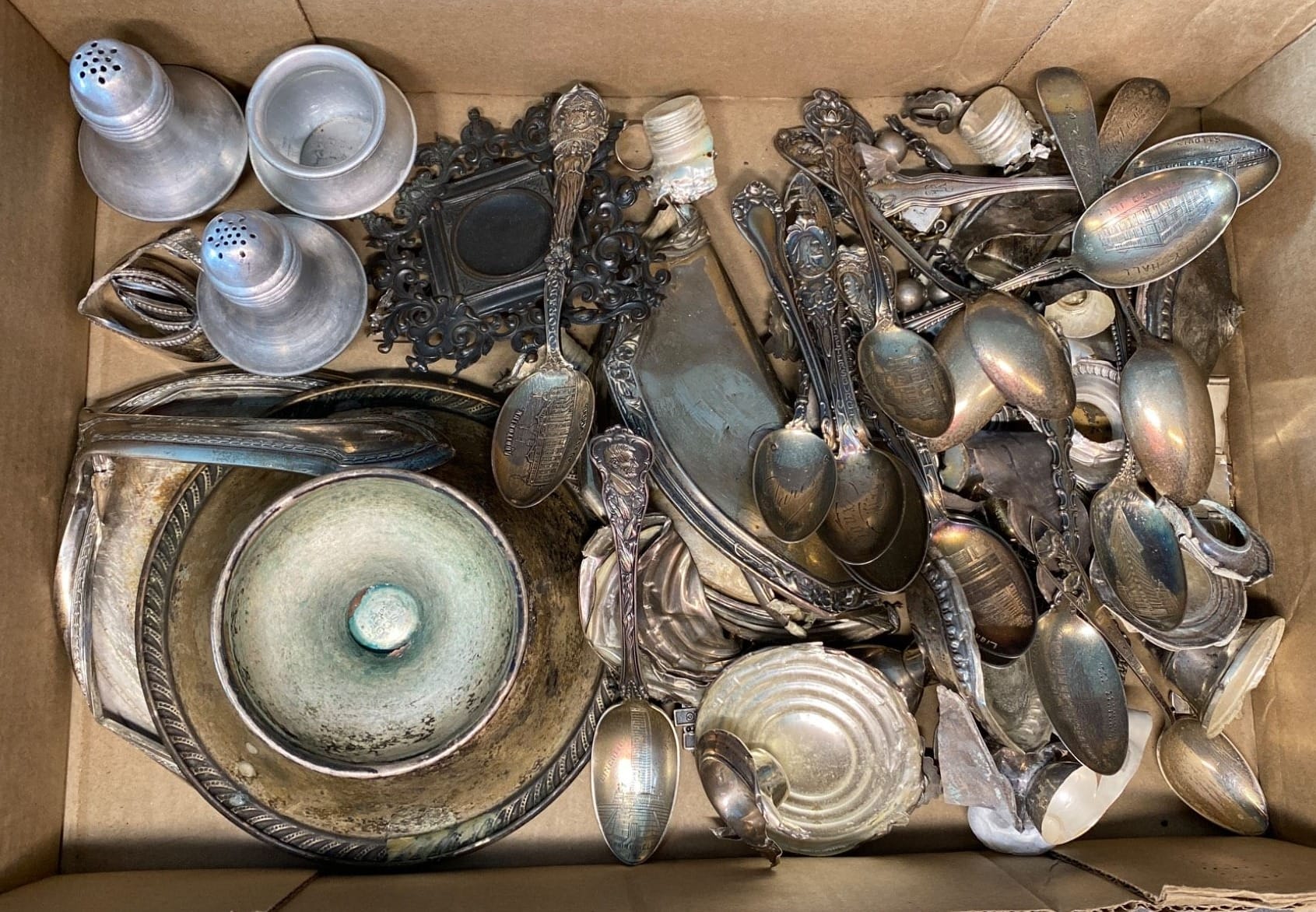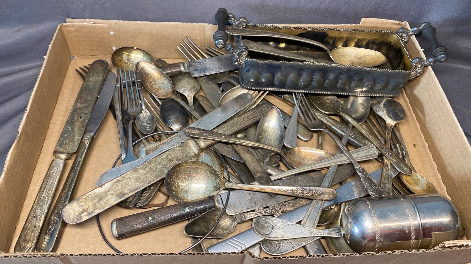 2146 Serving Dishes, Shakers, Flatware, Photo Frame inc. RWS Sterling, Silver Plate on Copper - Total Weight 1,225 grams