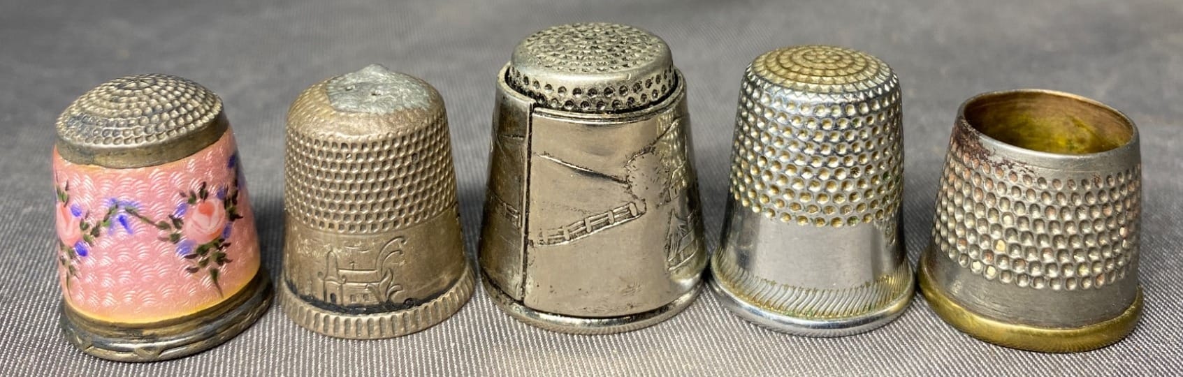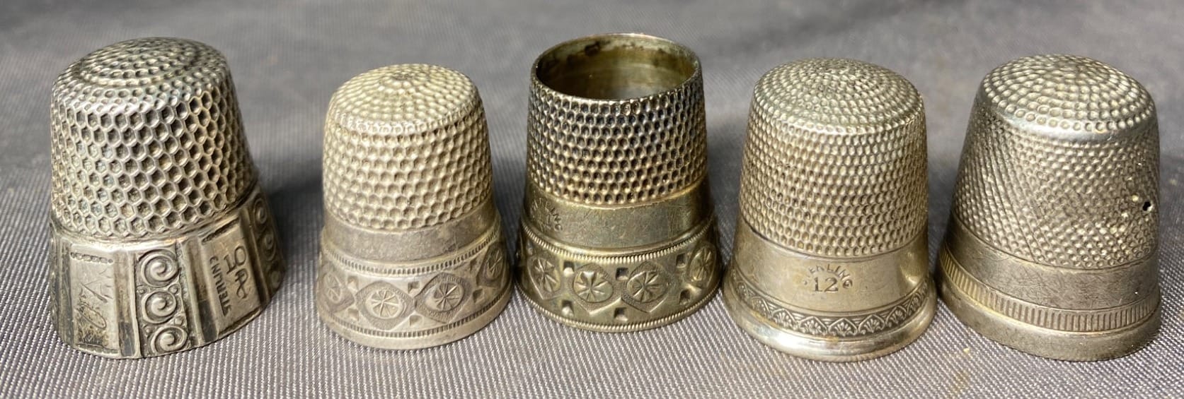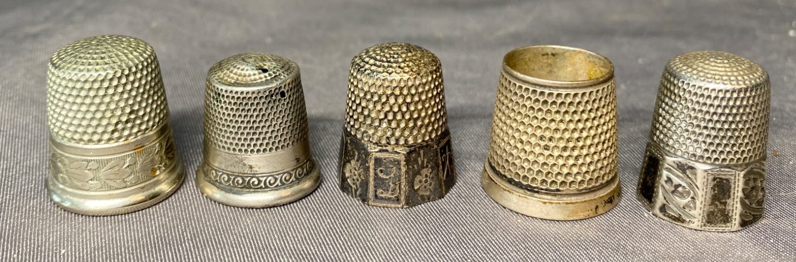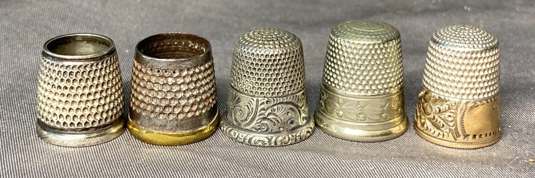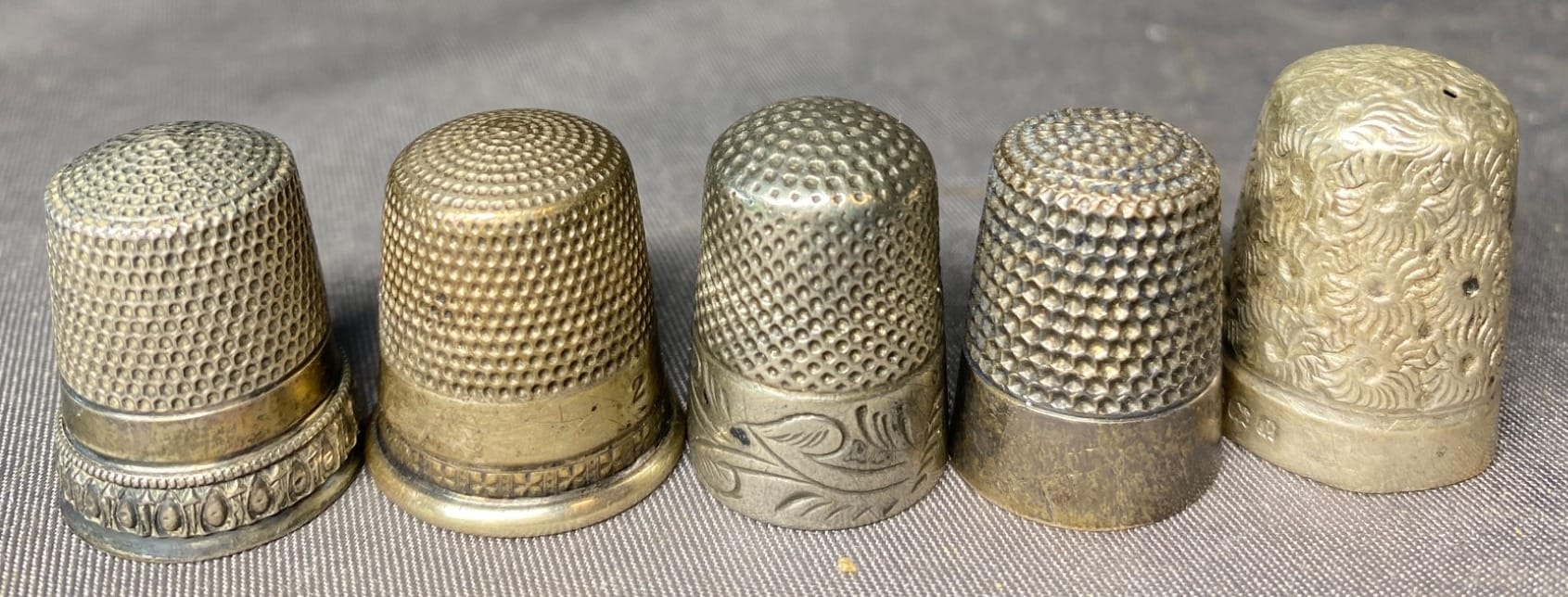 2162 5 Sewing Thimbles inc. Sterling - total weight 19 grams
