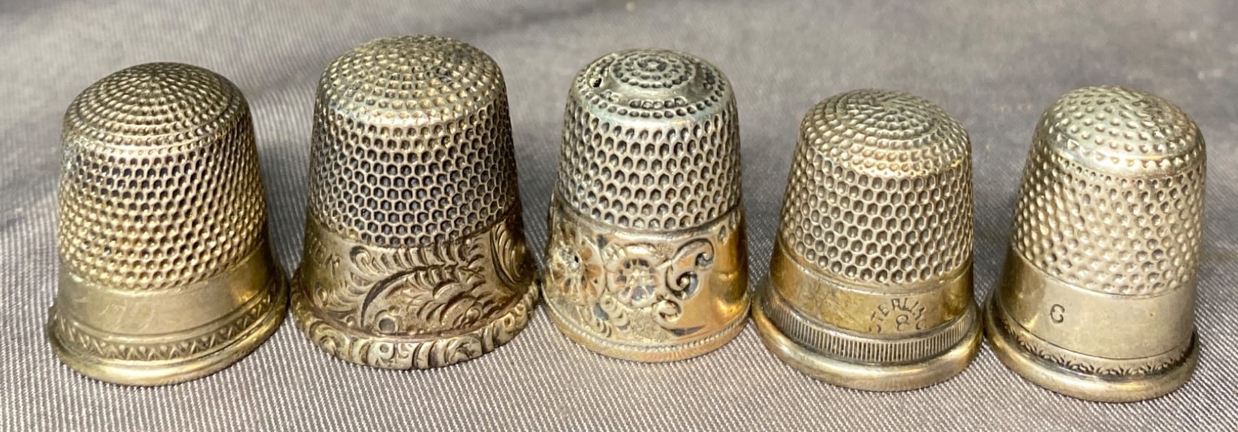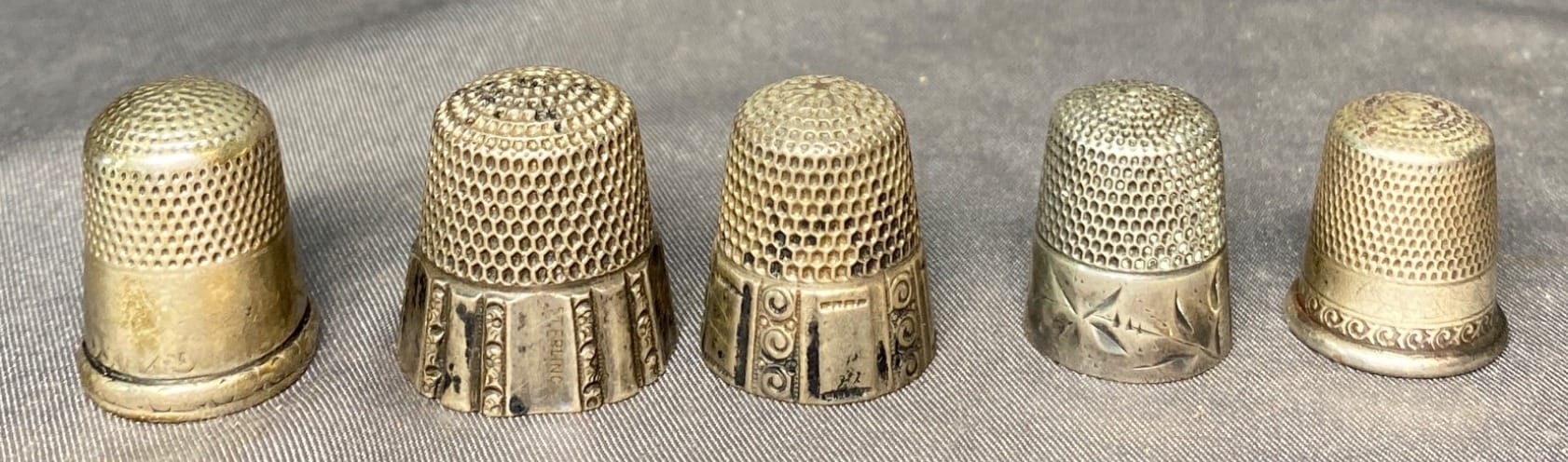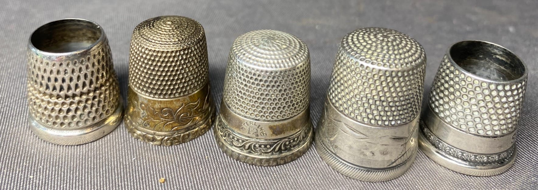 2160 5 Sewing Thimbles inc. Sterling - total weight 21 grams