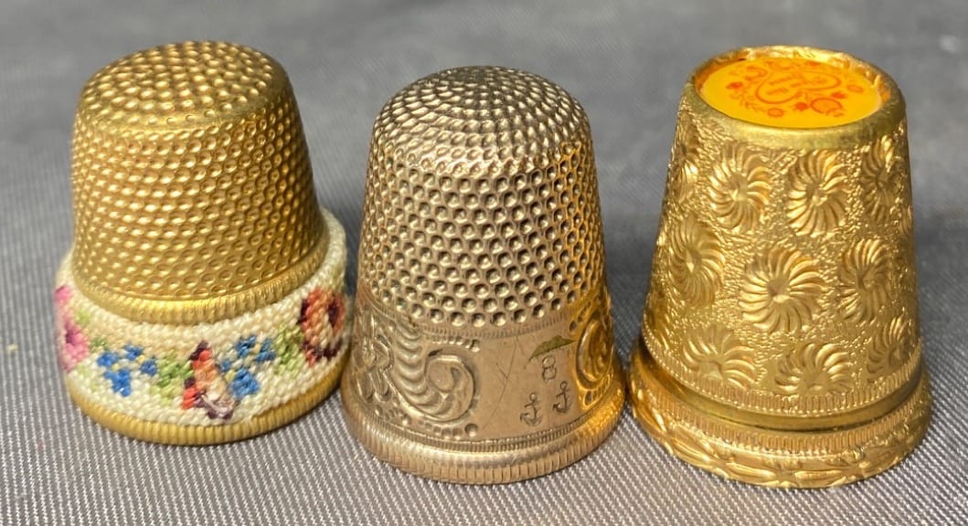 2161 3 Thimbles with Floral and Engraved Designs - total weight 11 grams