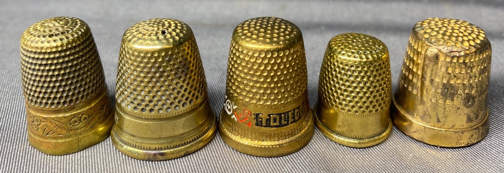 2167 5 Brass Sewing Thimbles