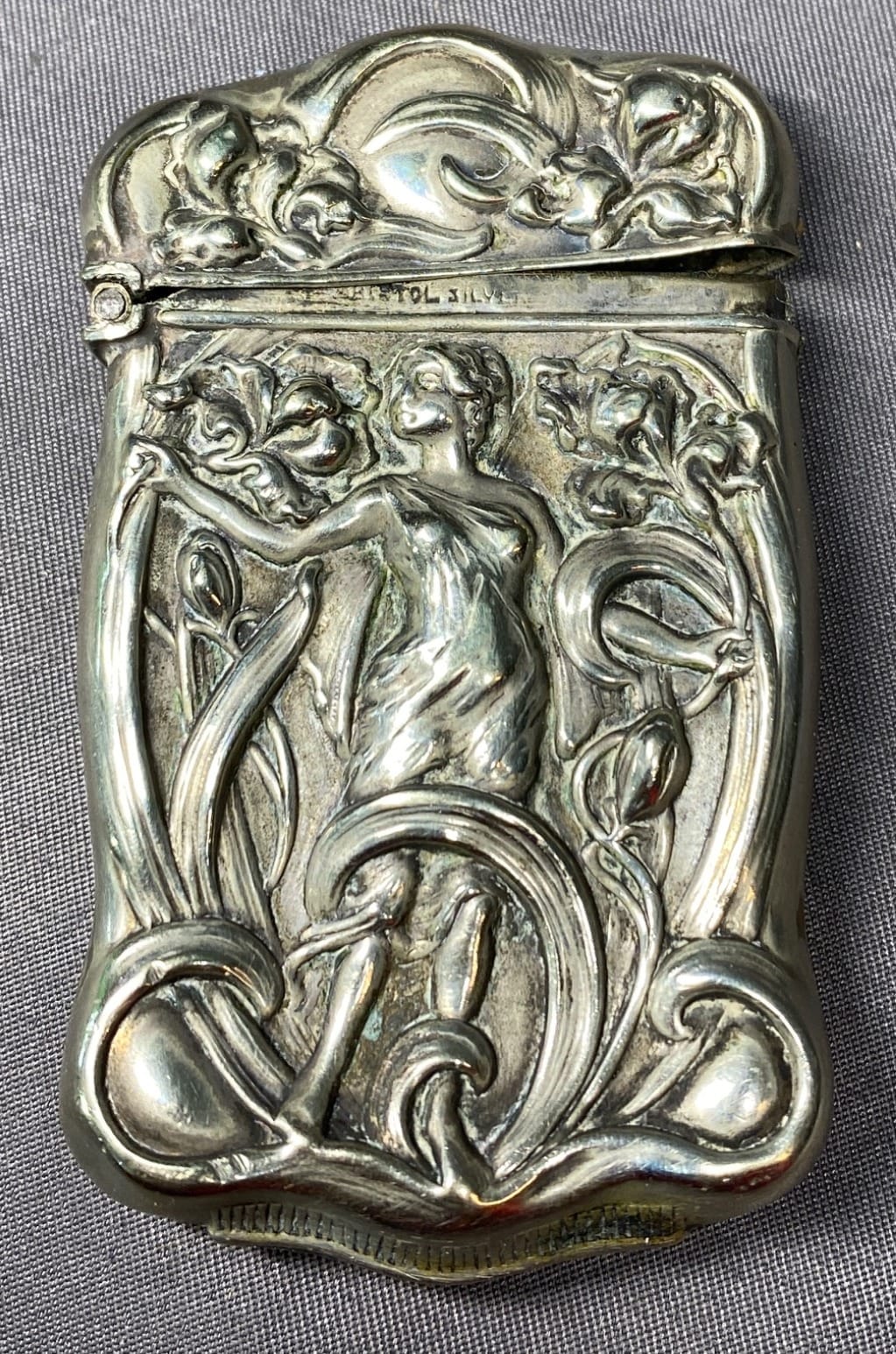 2168 Art Nouveau Sterling Silver Match Safe with Floral and Female Motif - total weight 26 grams