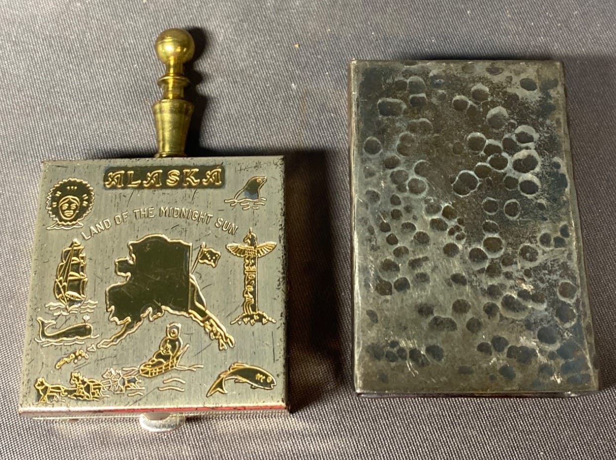 2174 Land of the Midnight Sun Alaska Souvenir Snuff Box & Zippo Lighter Cover