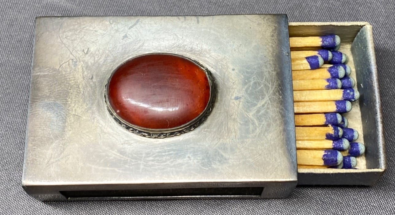 2175 Match Safe with Amber-Colored Stone Accent - total weight 34 grams