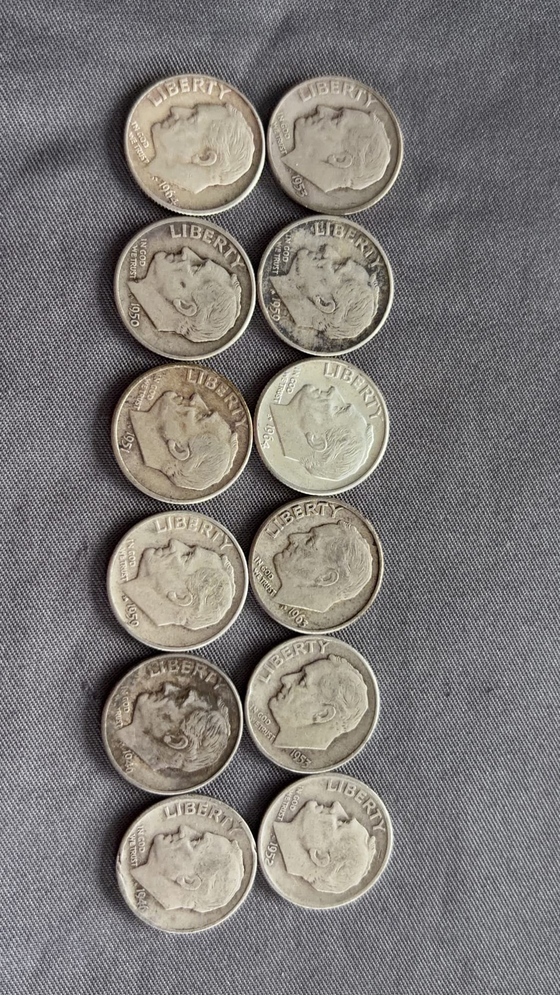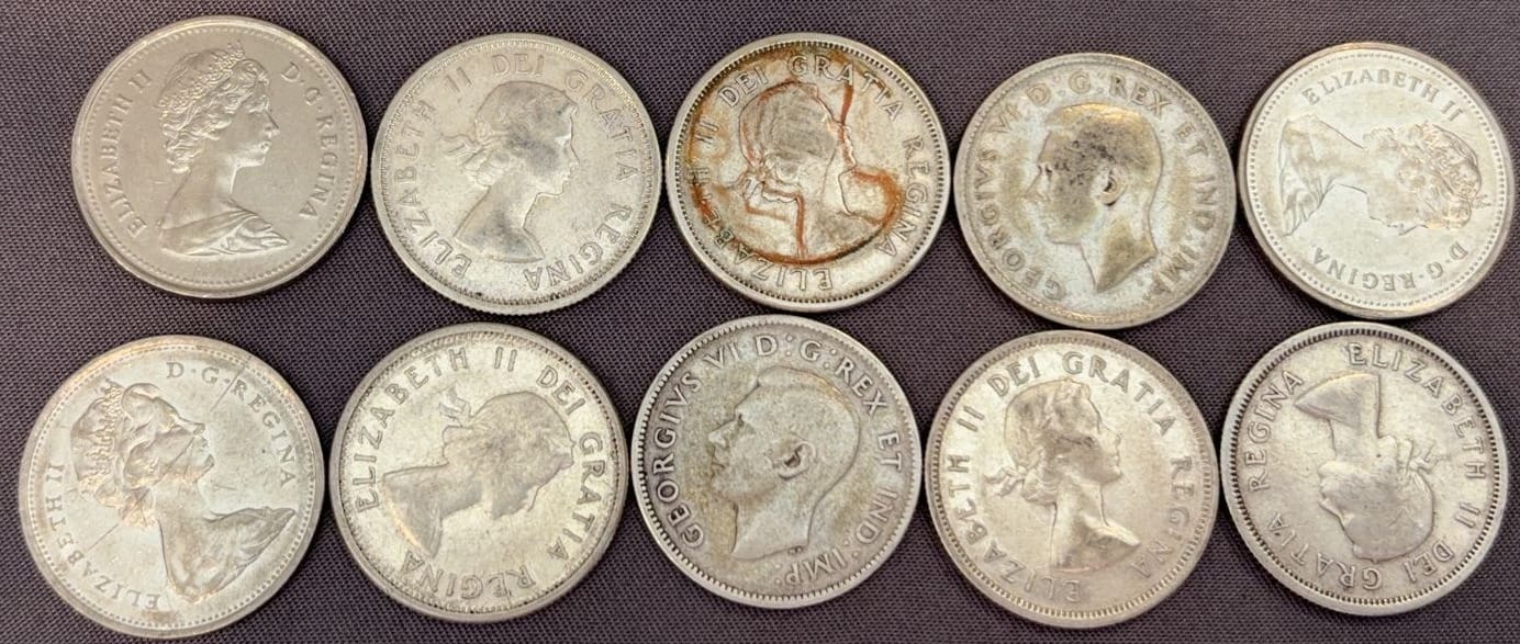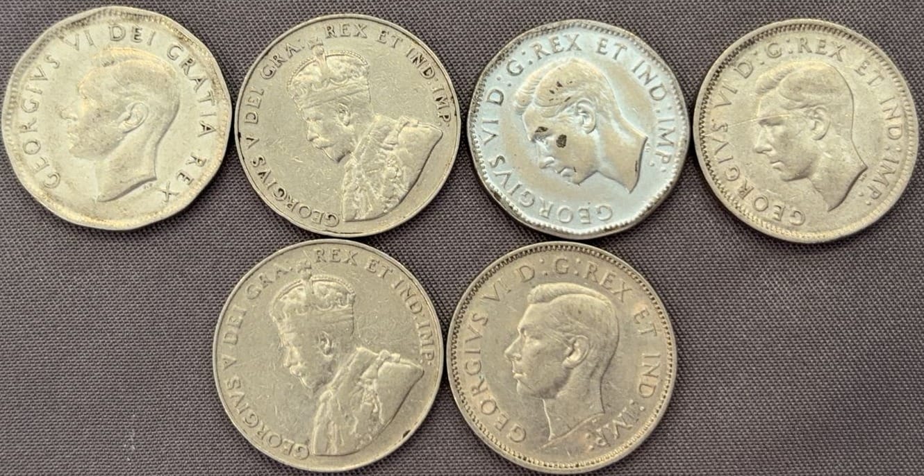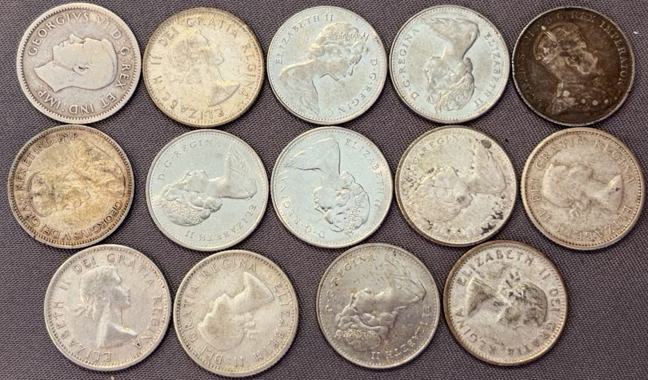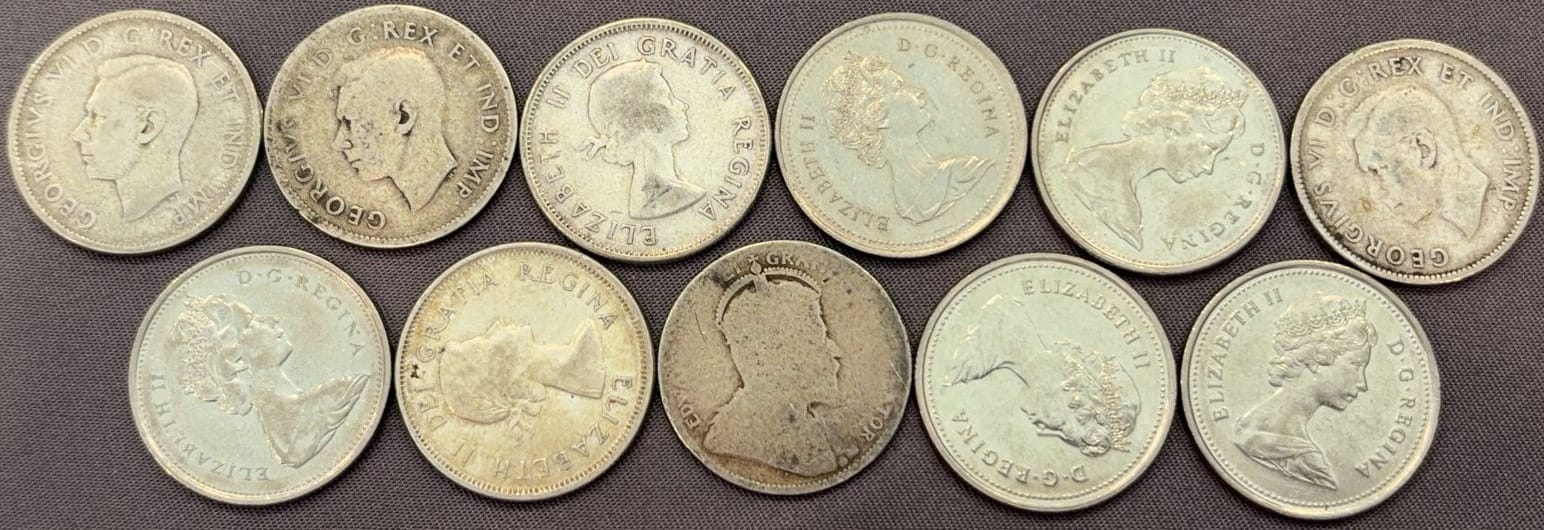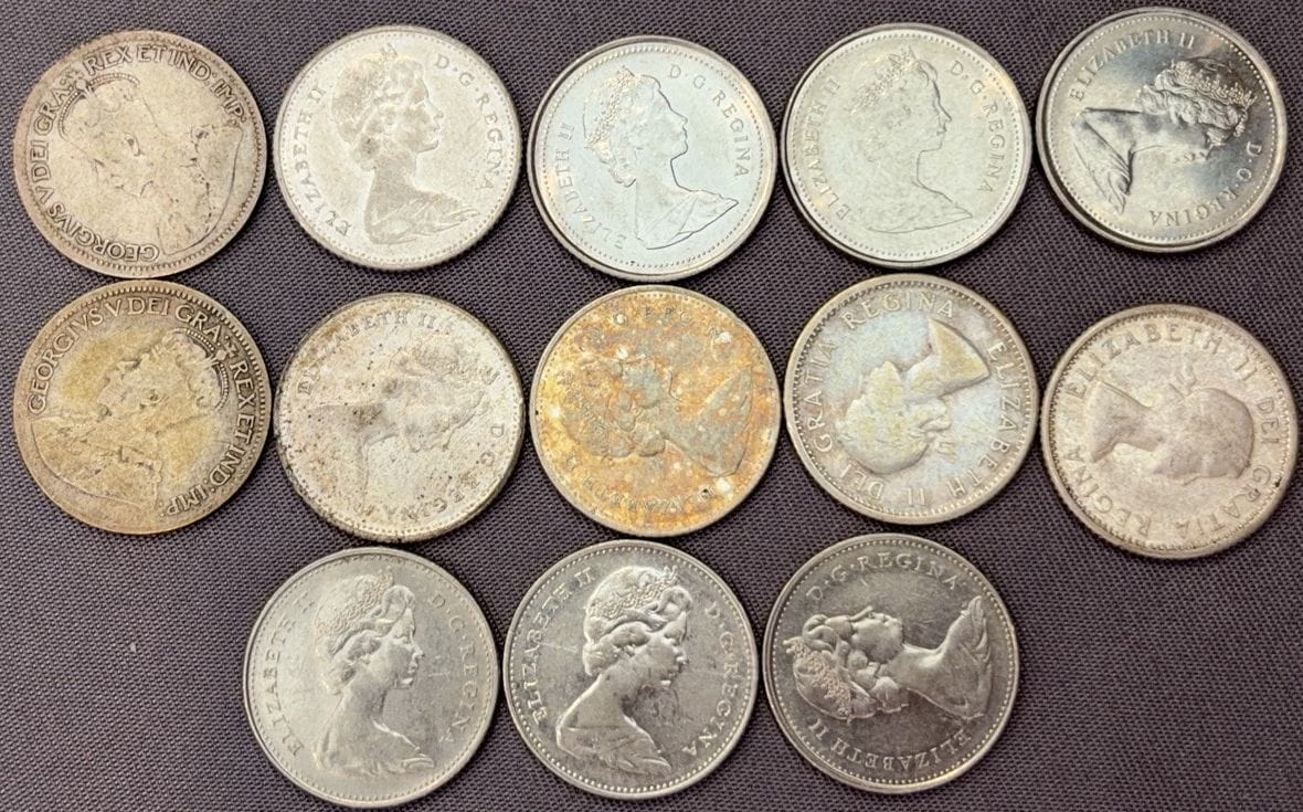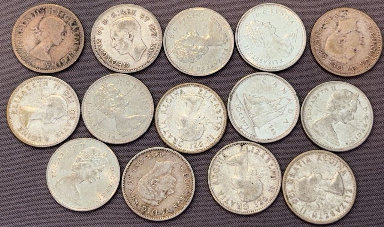 6589 (13) Canadian 10 Cent Pieces 1942-1976 Elizabeth II & George VI