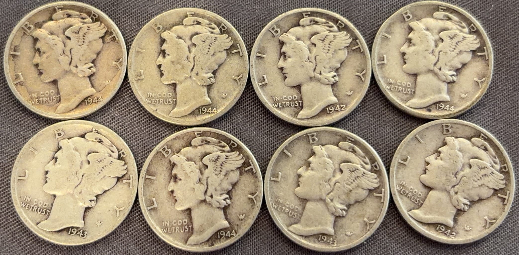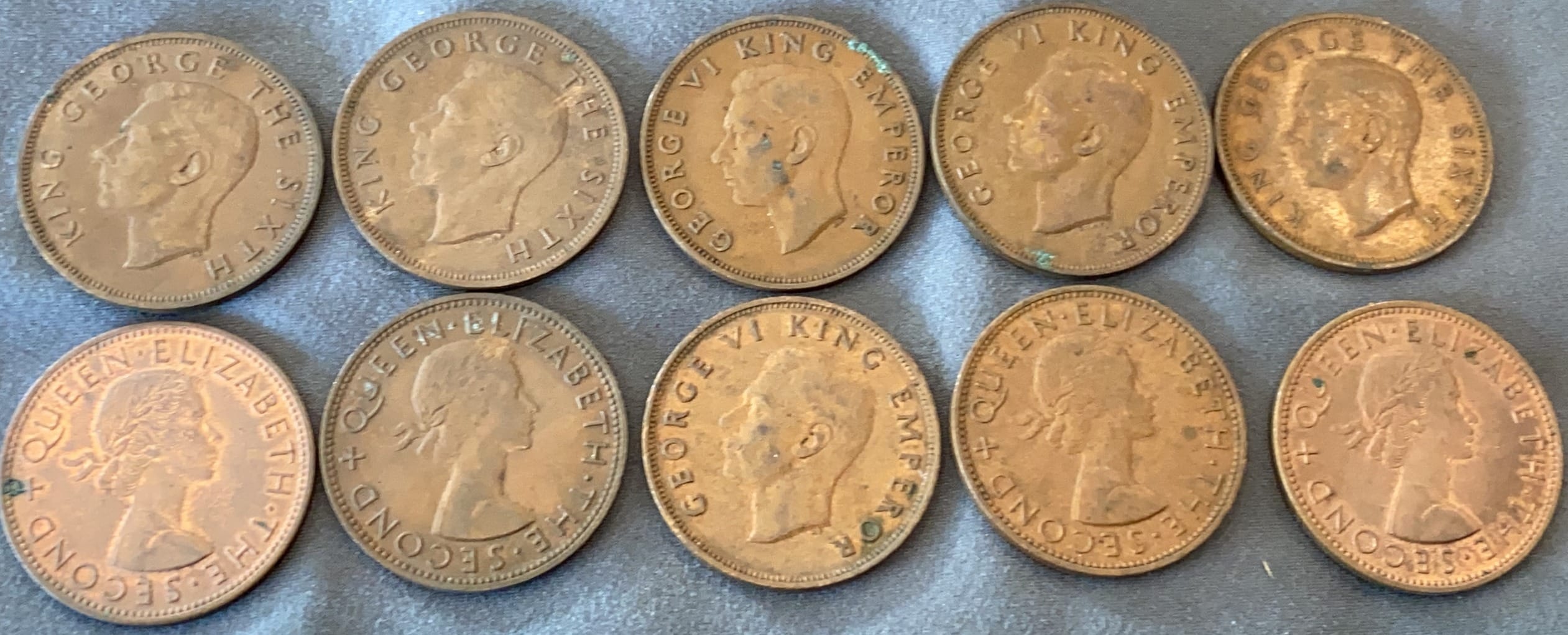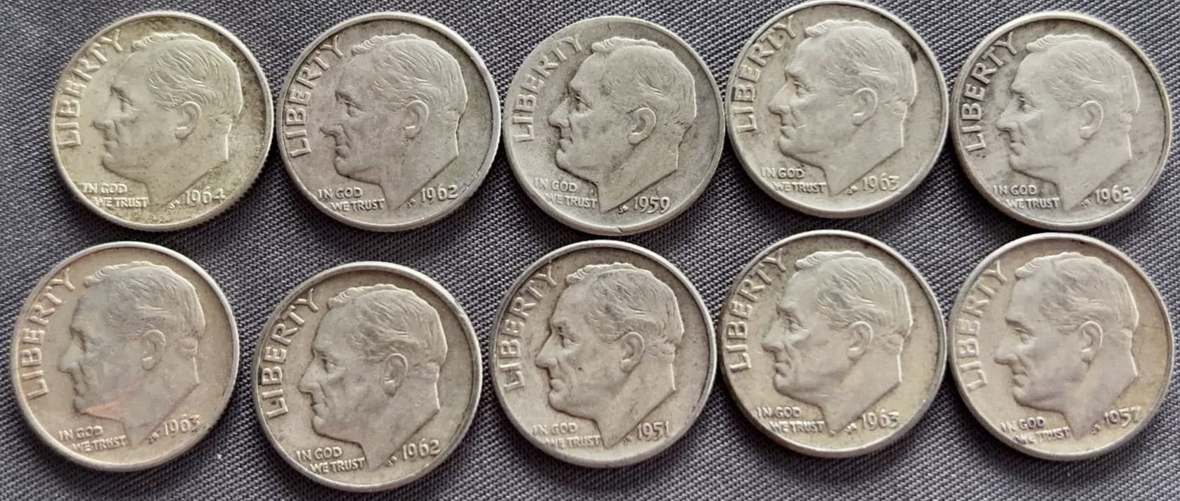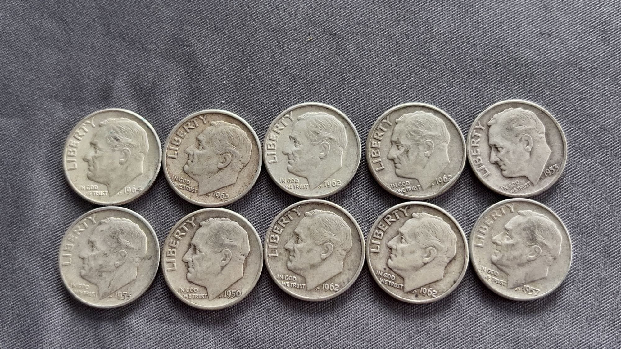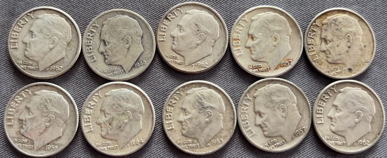 6589 (13) Canadian 10 Cent Pieces 1942-1976 Elizabeth II & George VI