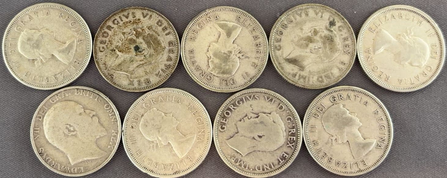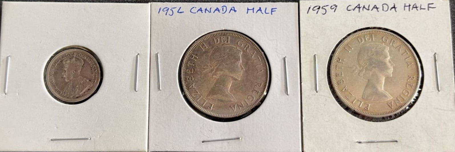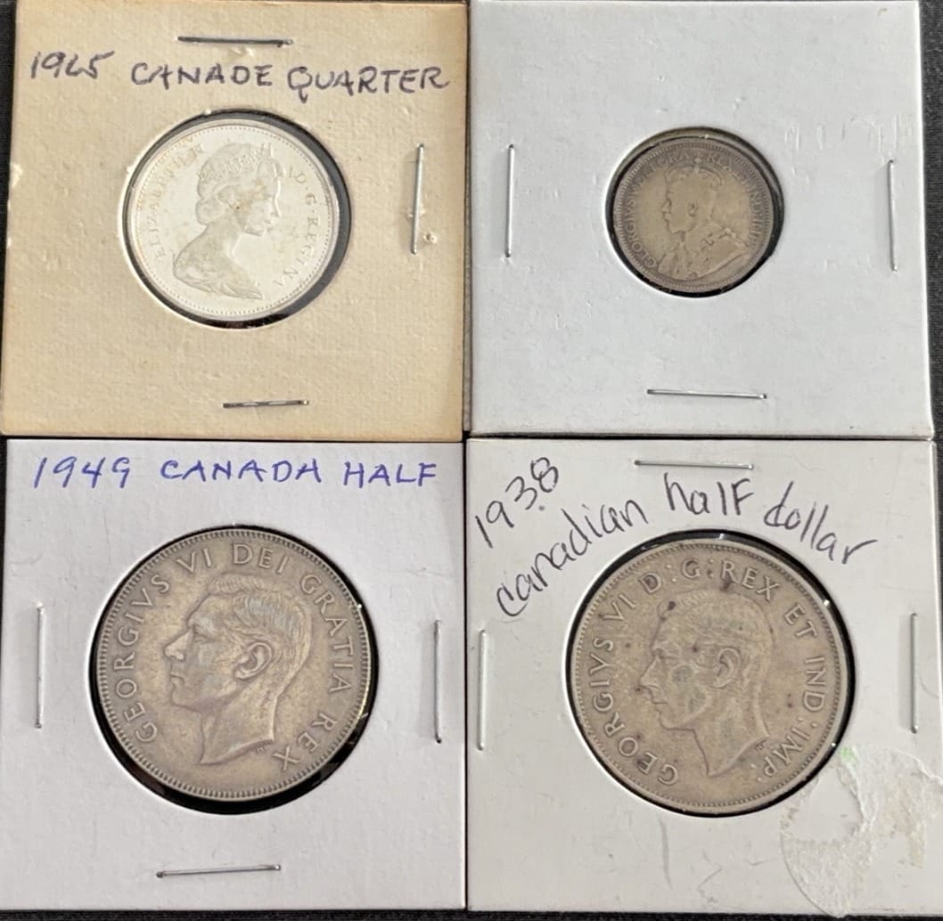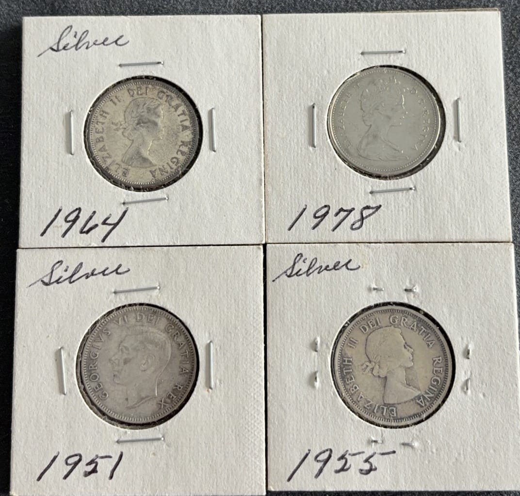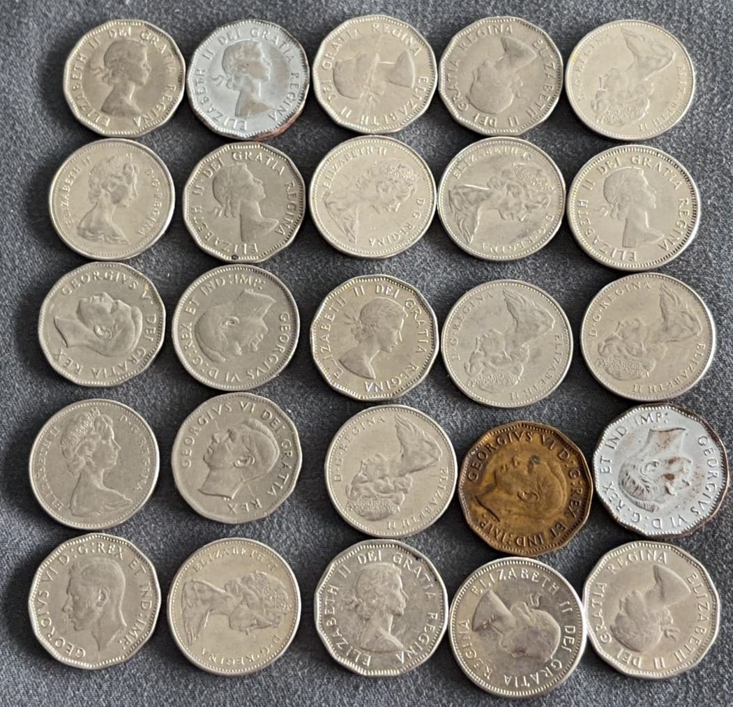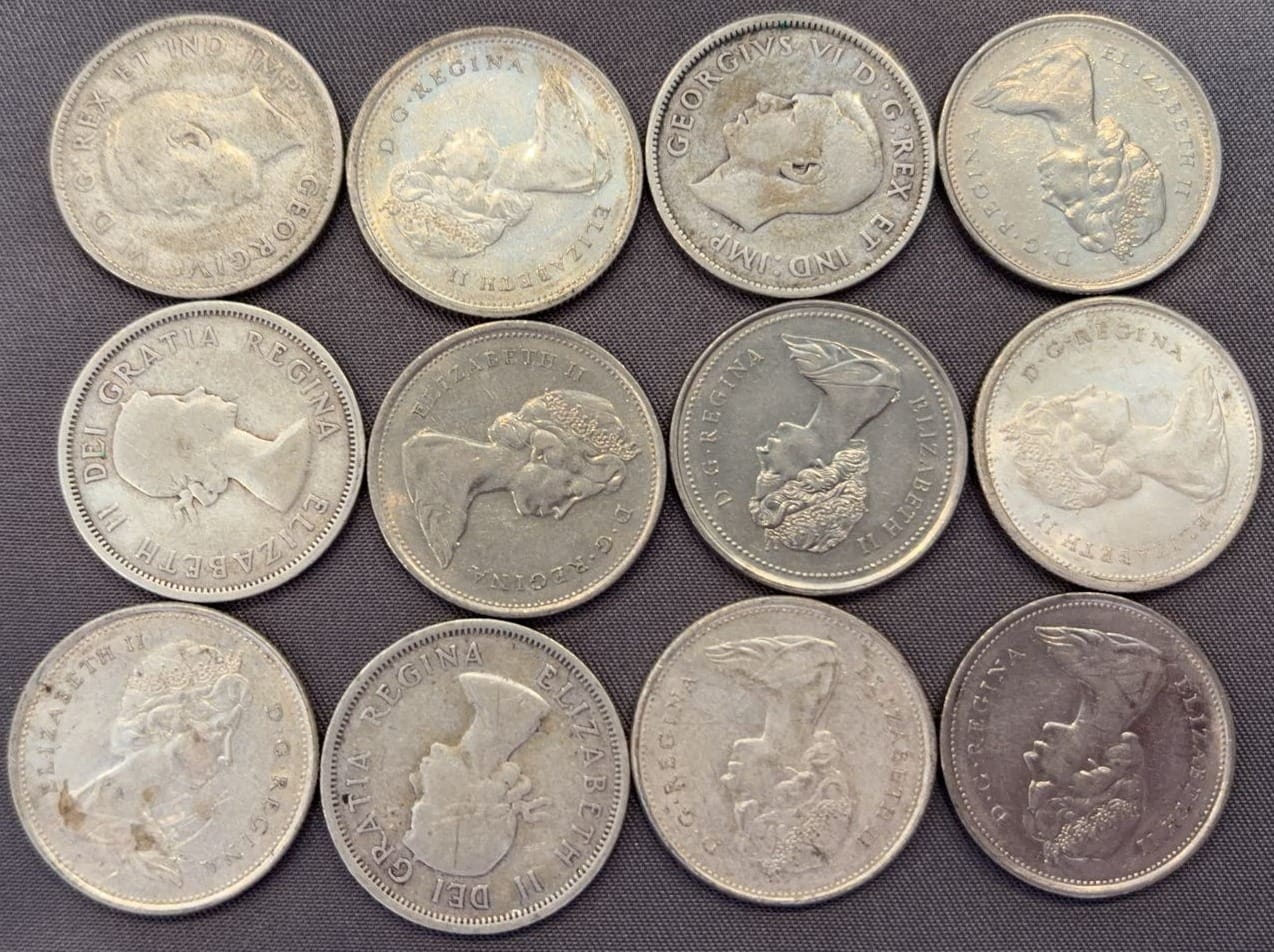 6588 (10) Canadian Quarters 1940-1975 George VI & Elizabeth II & (1) 1914 Great Britain George V One Shilling