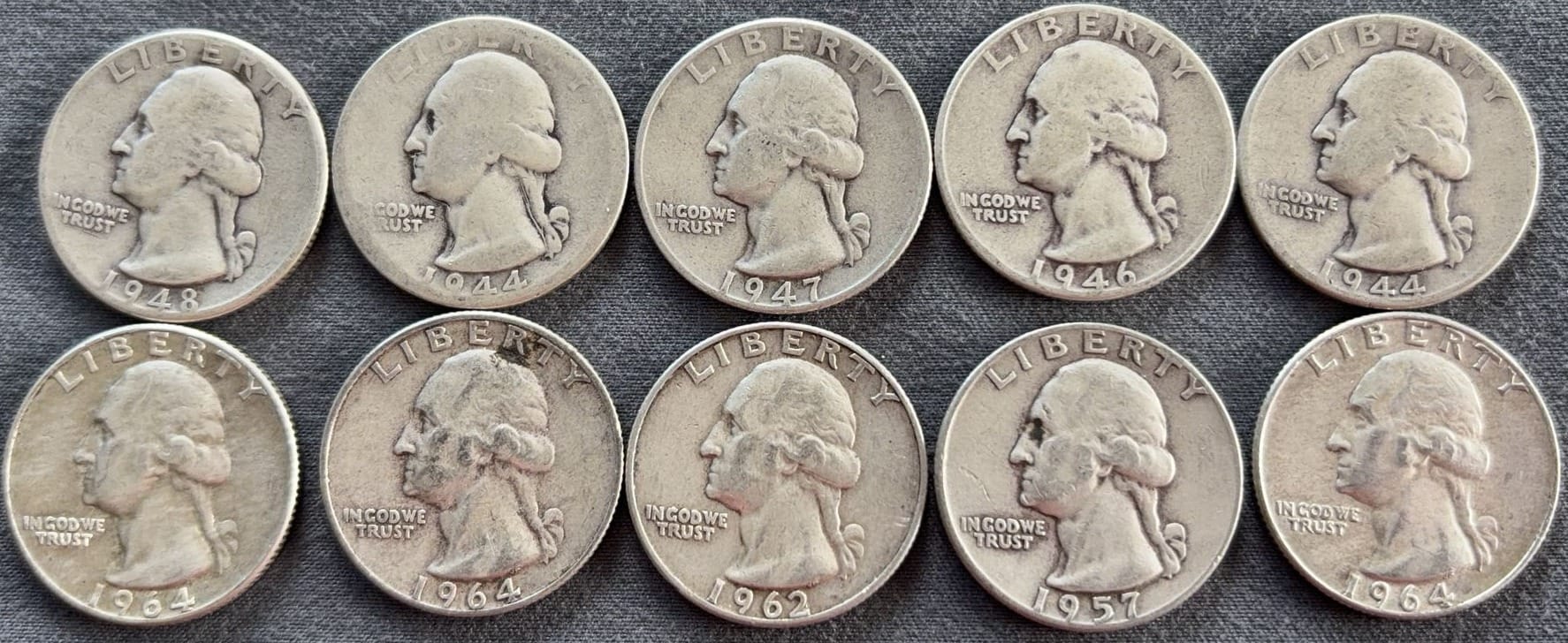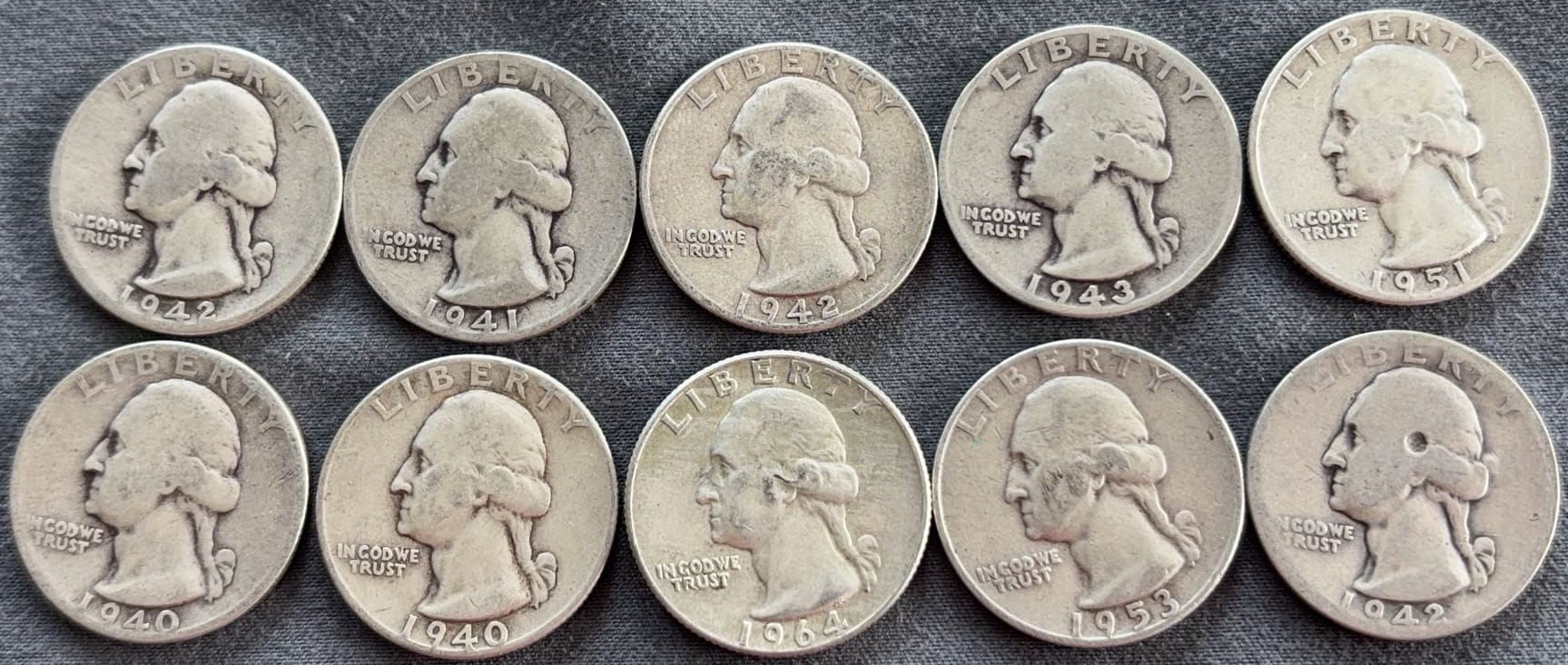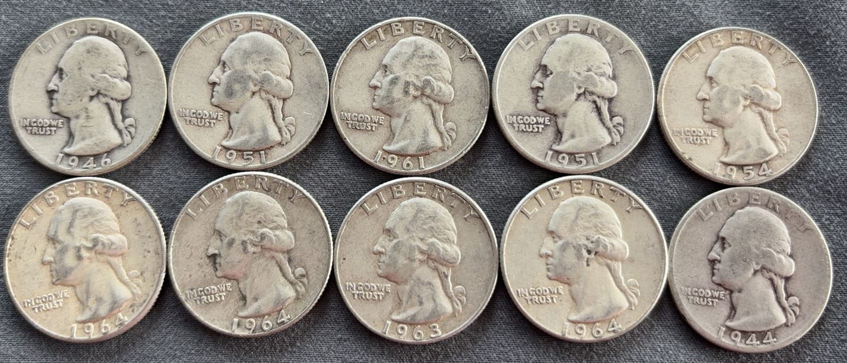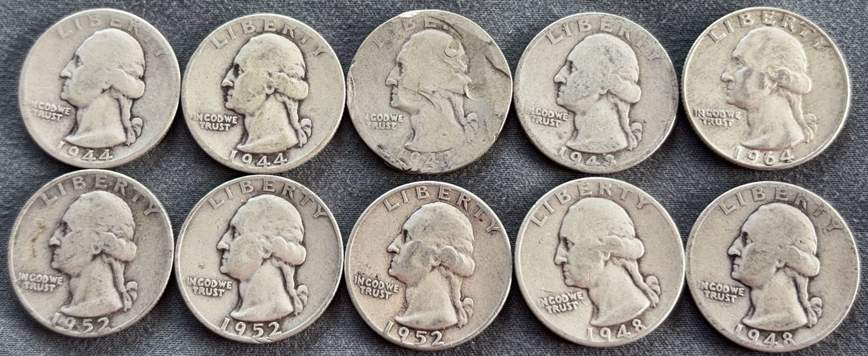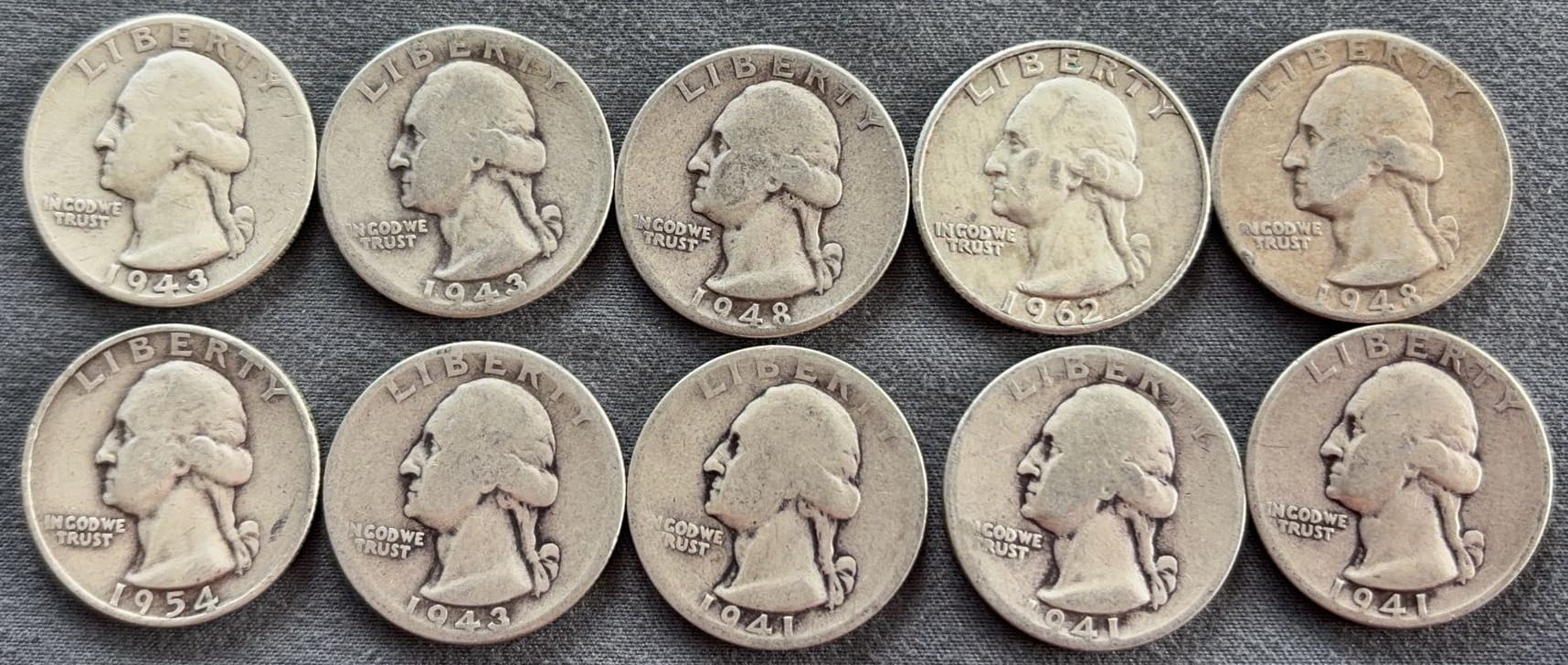 6588 (10) Canadian Quarters 1940-1975 George VI & Elizabeth II & (1) 1914 Great Britain George V One Shilling