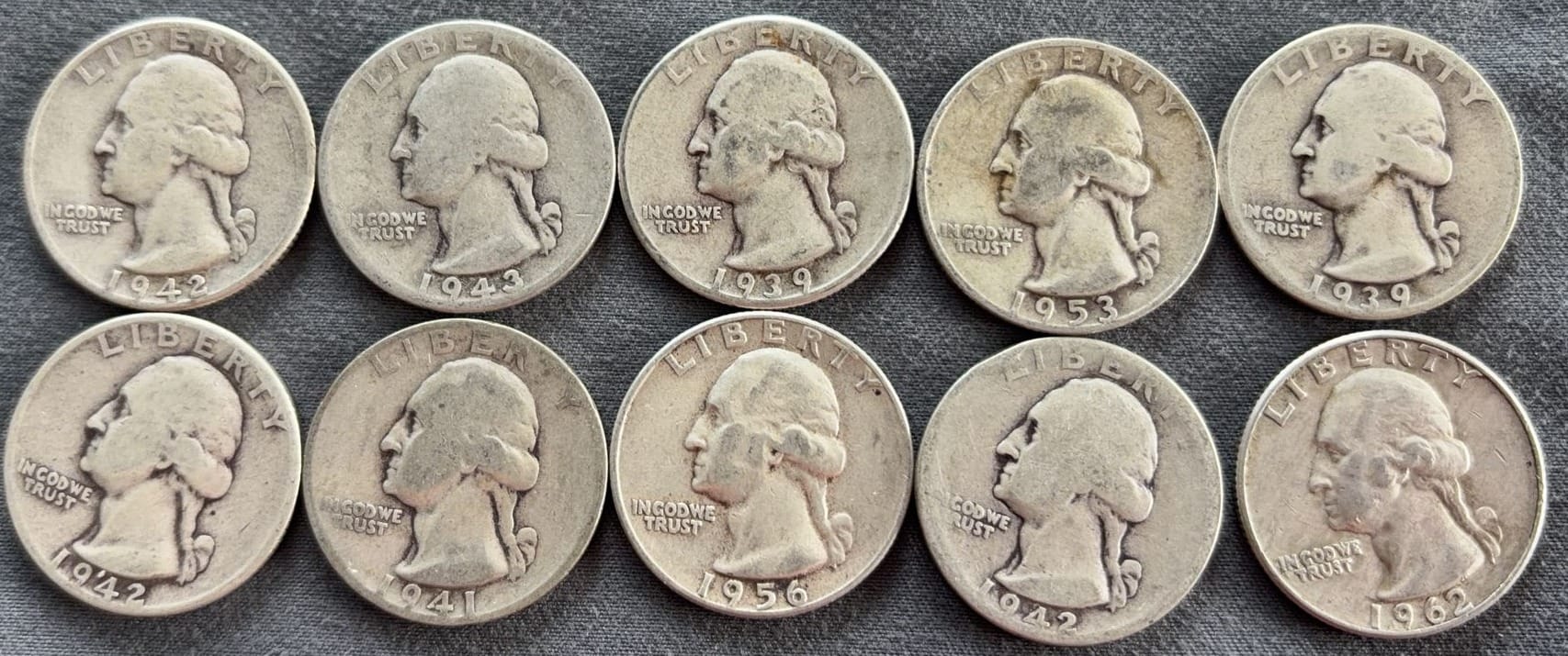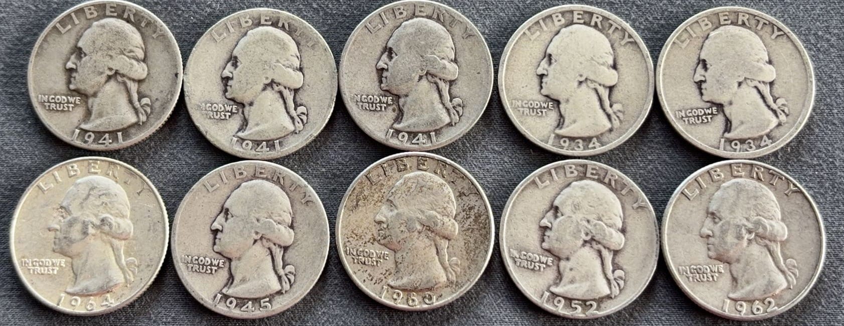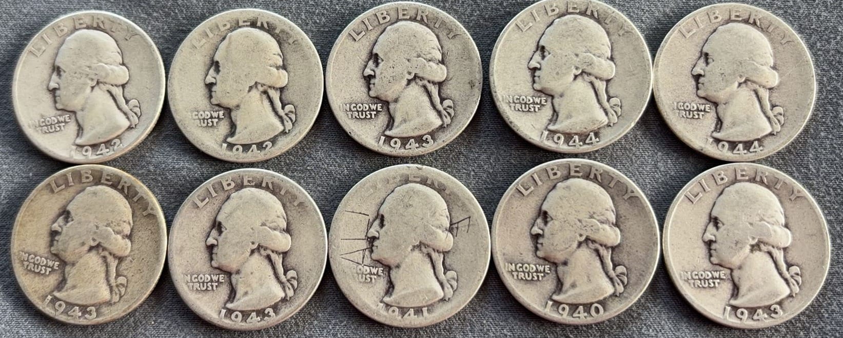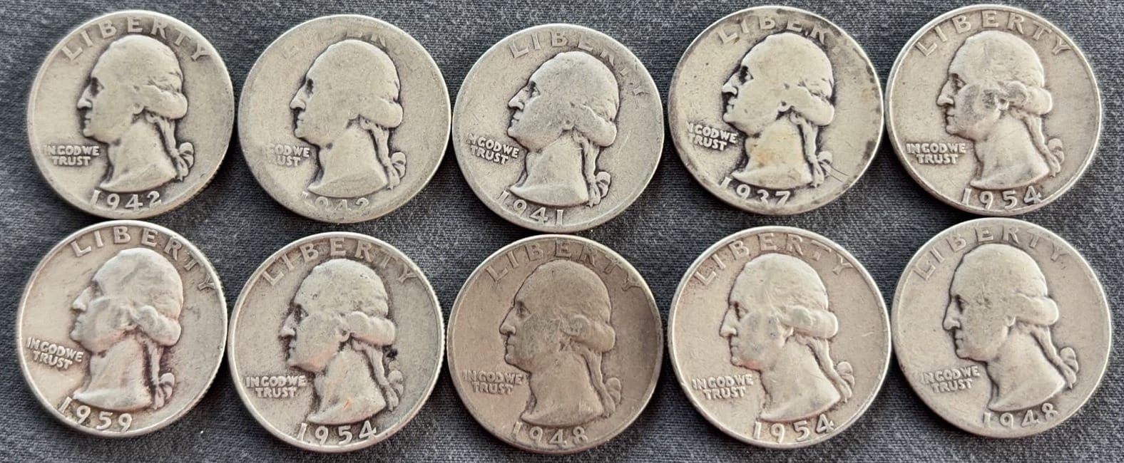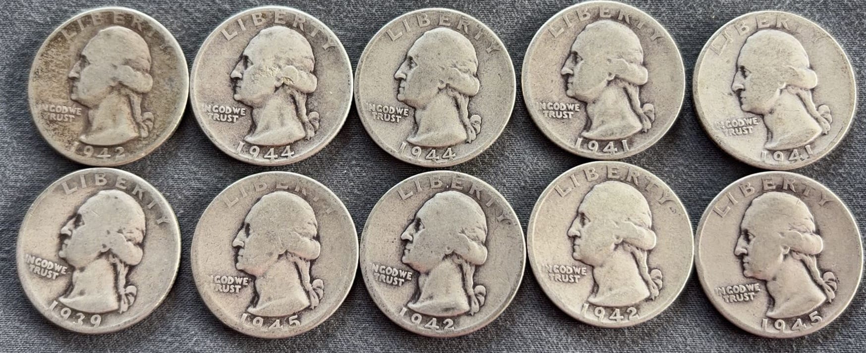 6588 (10) Canadian Quarters 1940-1975 George VI & Elizabeth II & (1) 1914 Great Britain George V One Shilling