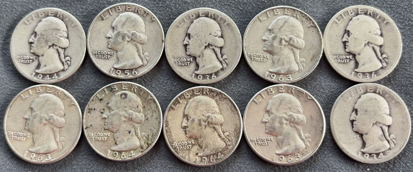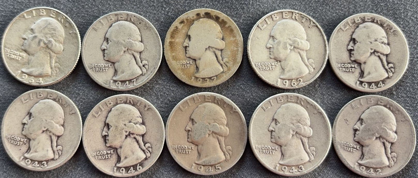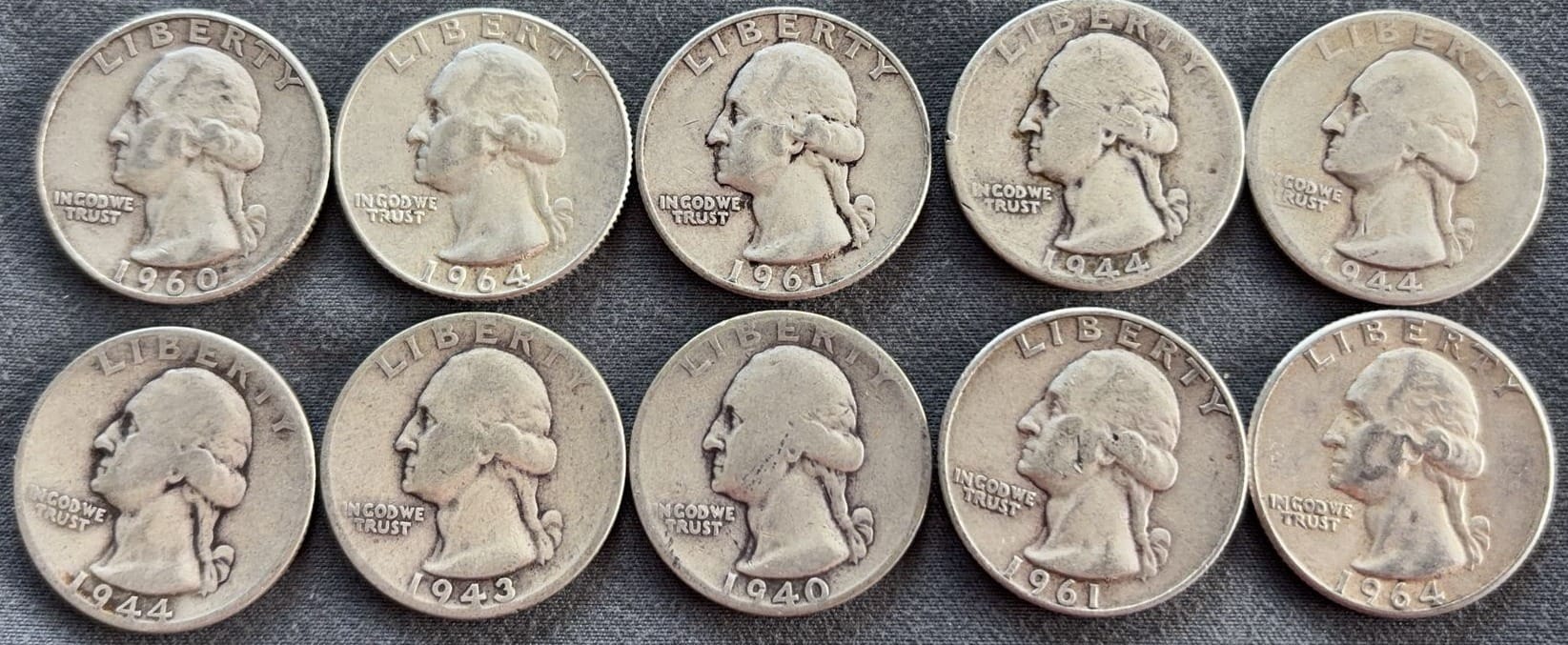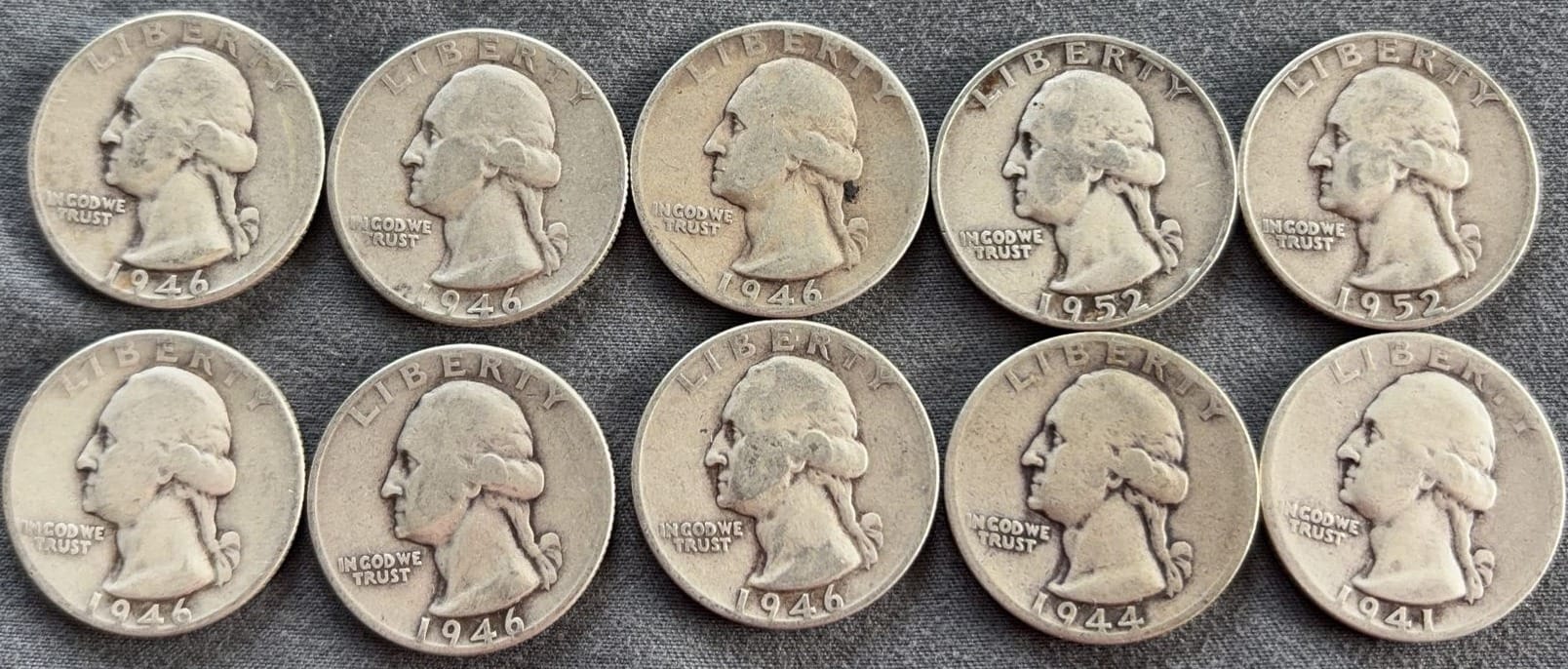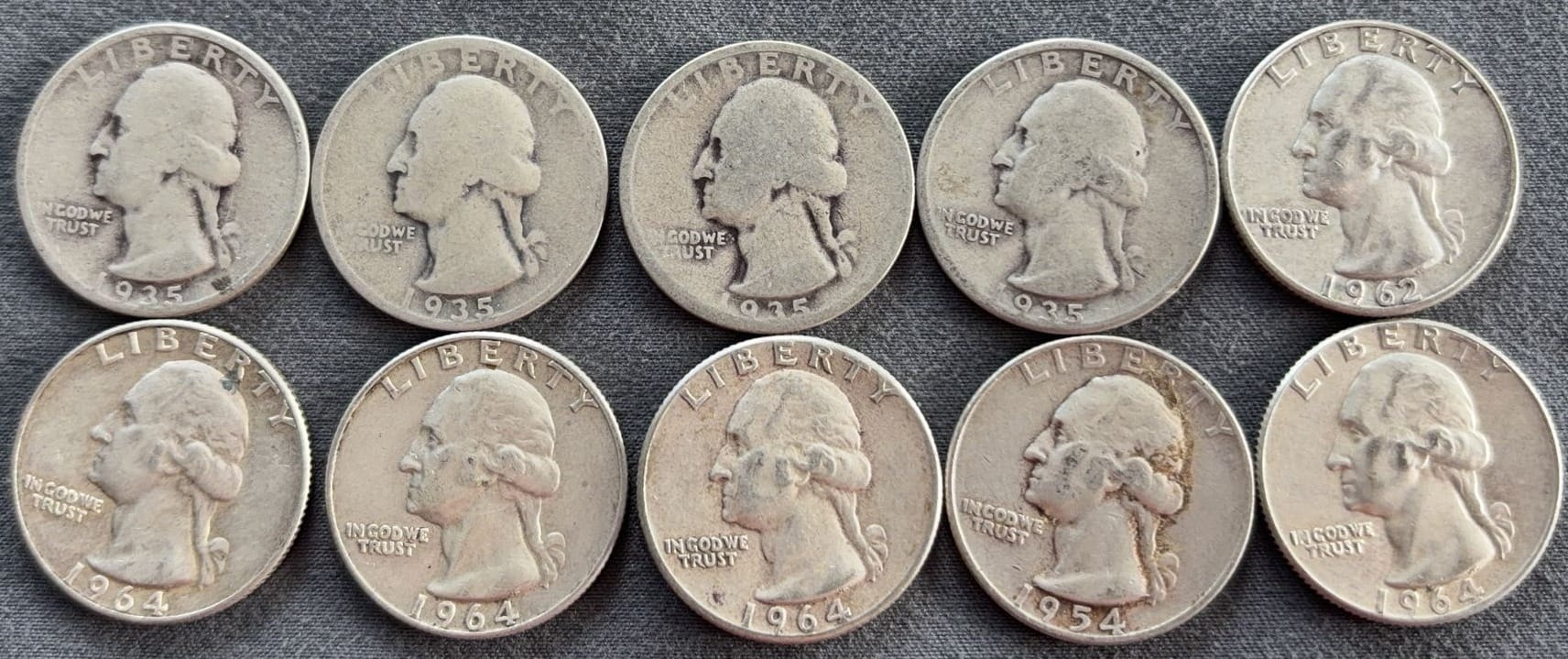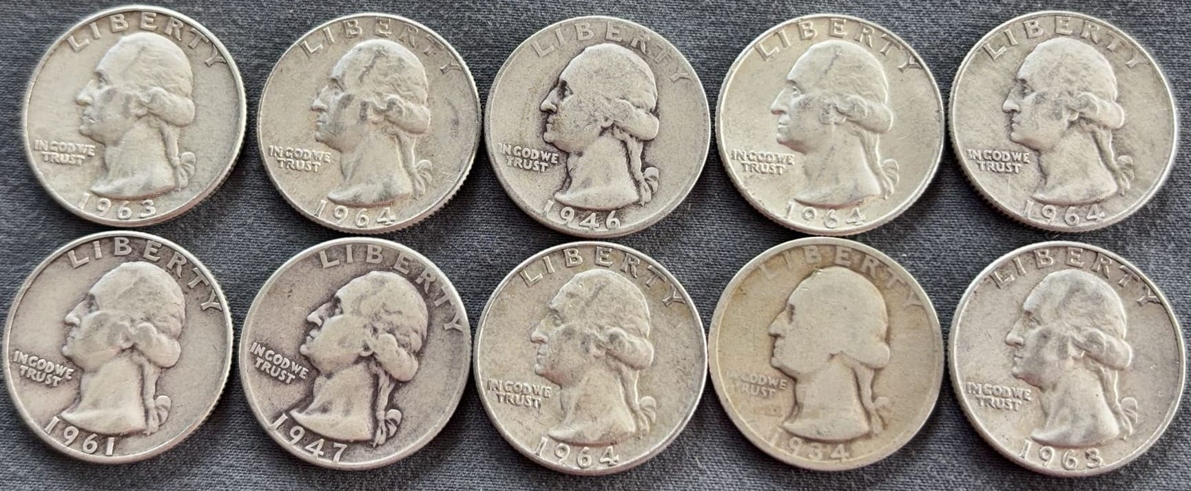 6588 (10) Canadian Quarters 1940-1975 George VI & Elizabeth II & (1) 1914 Great Britain George V One Shilling
