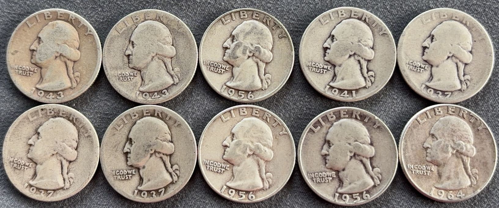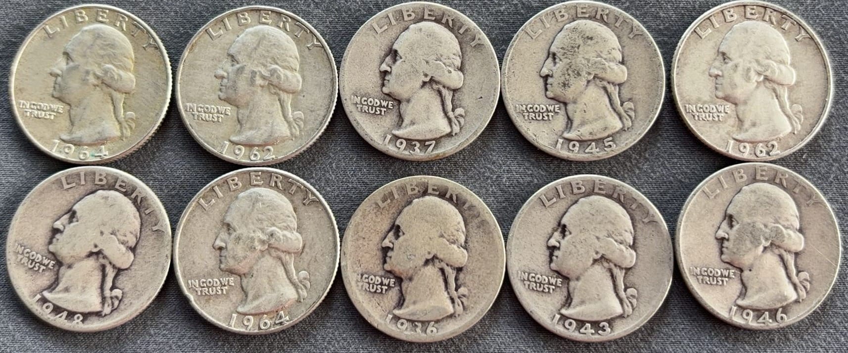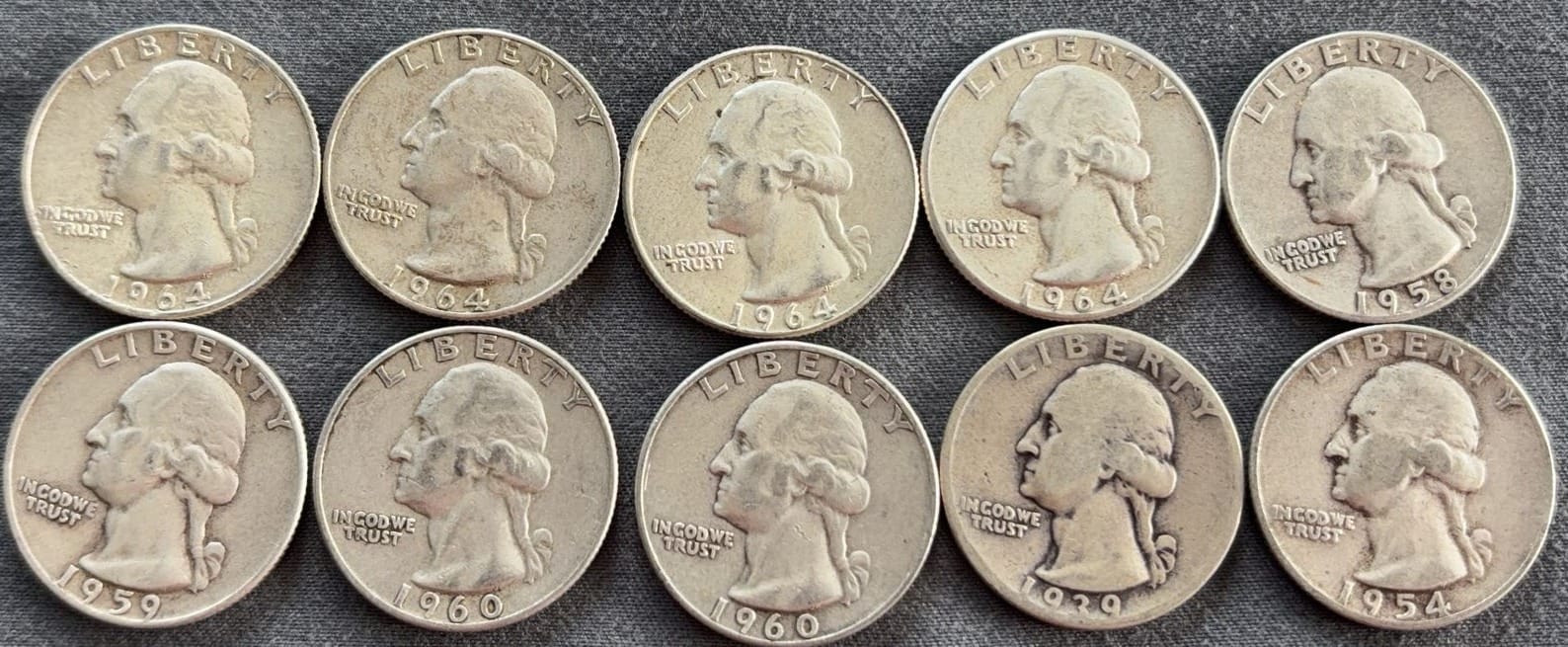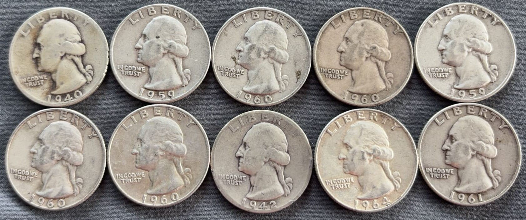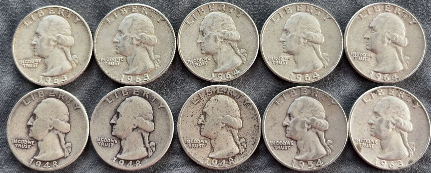 6588 (10) Canadian Quarters 1940-1975 George VI & Elizabeth II & (1) 1914 Great Britain George V One Shilling