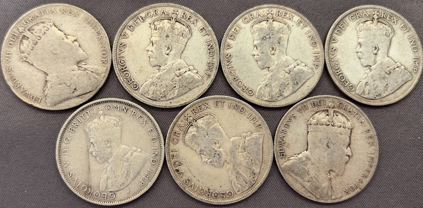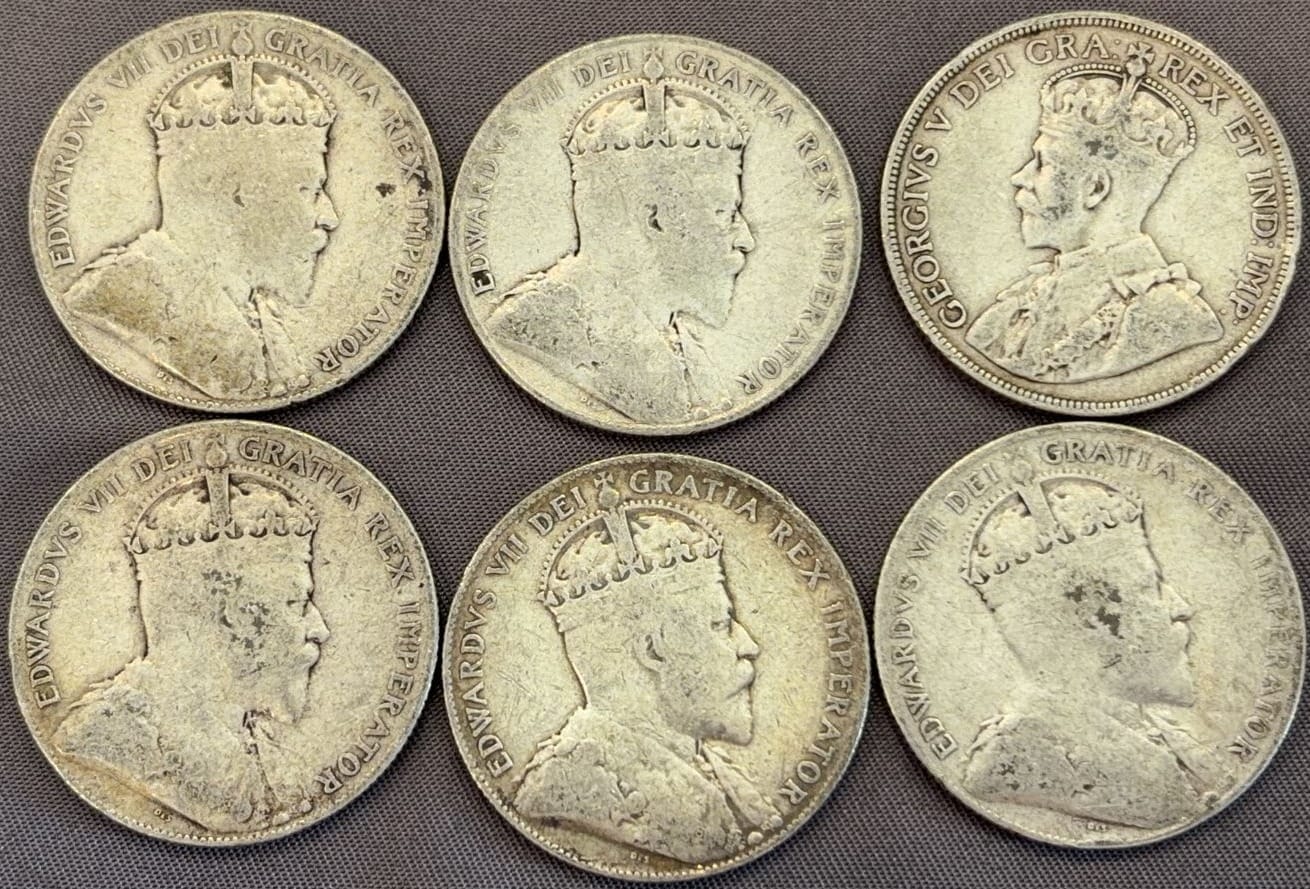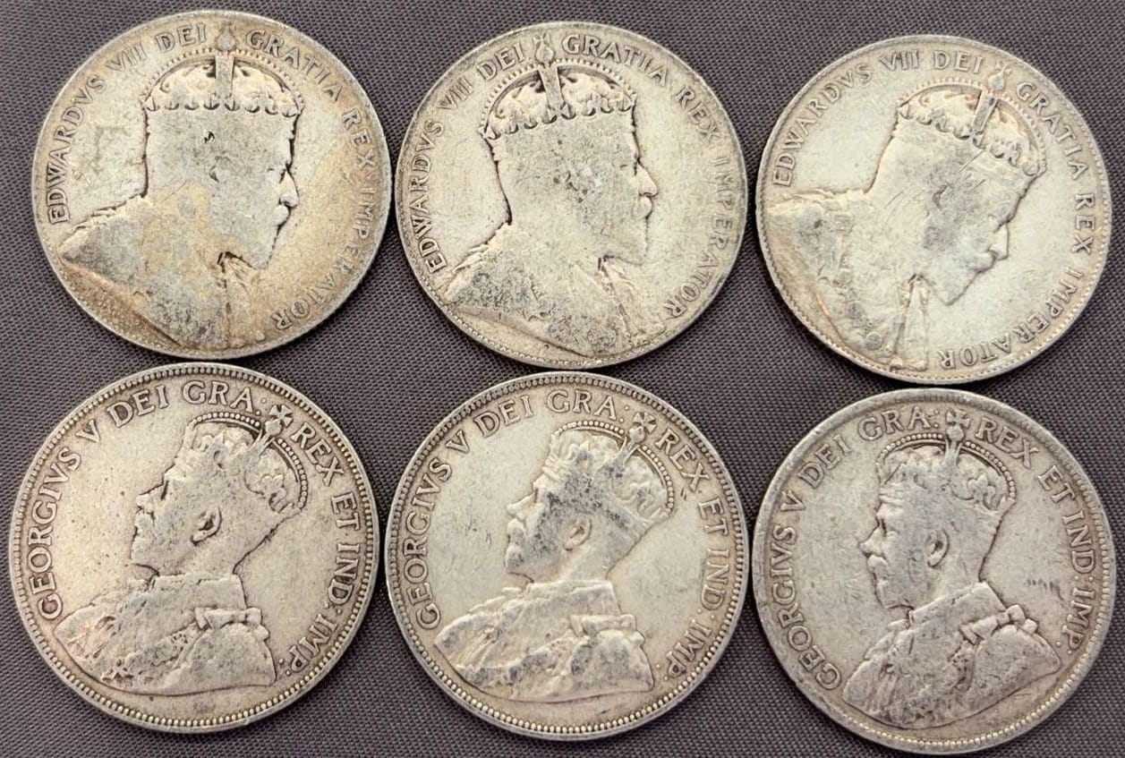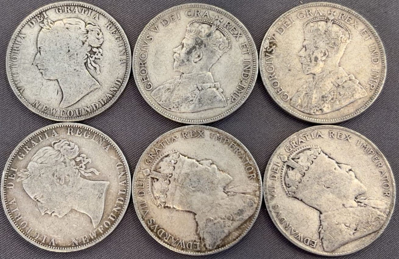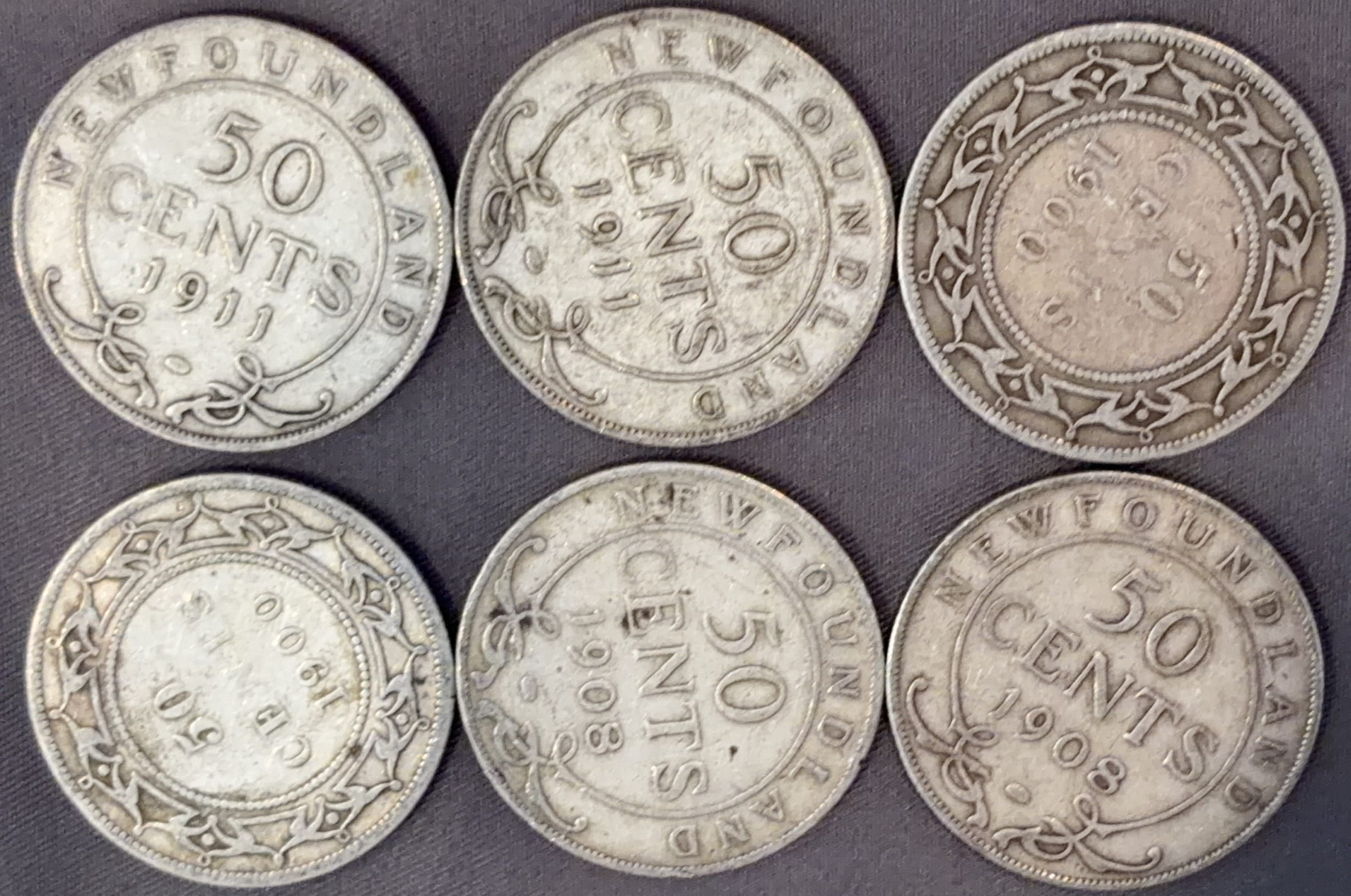 6591 (6) Newfoundland Fifty-Cent Coins 1899-1911 Queen Victoria & Edward VII