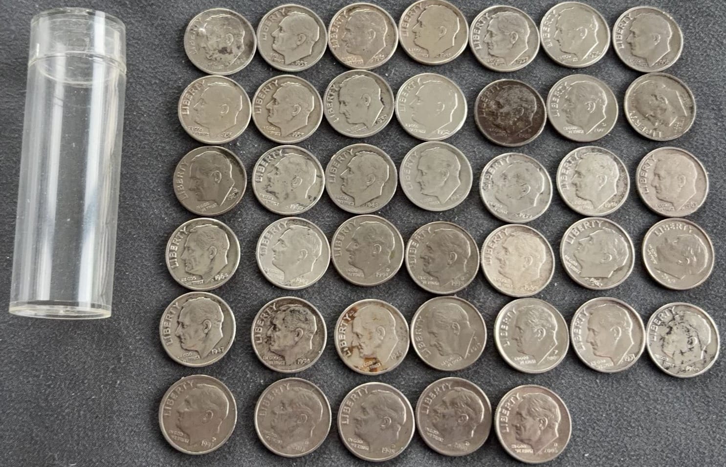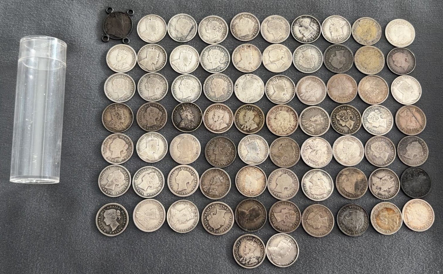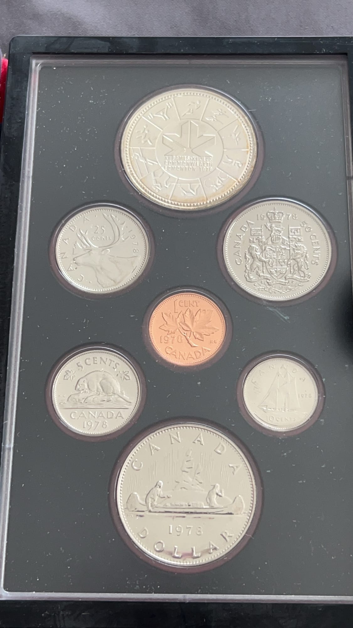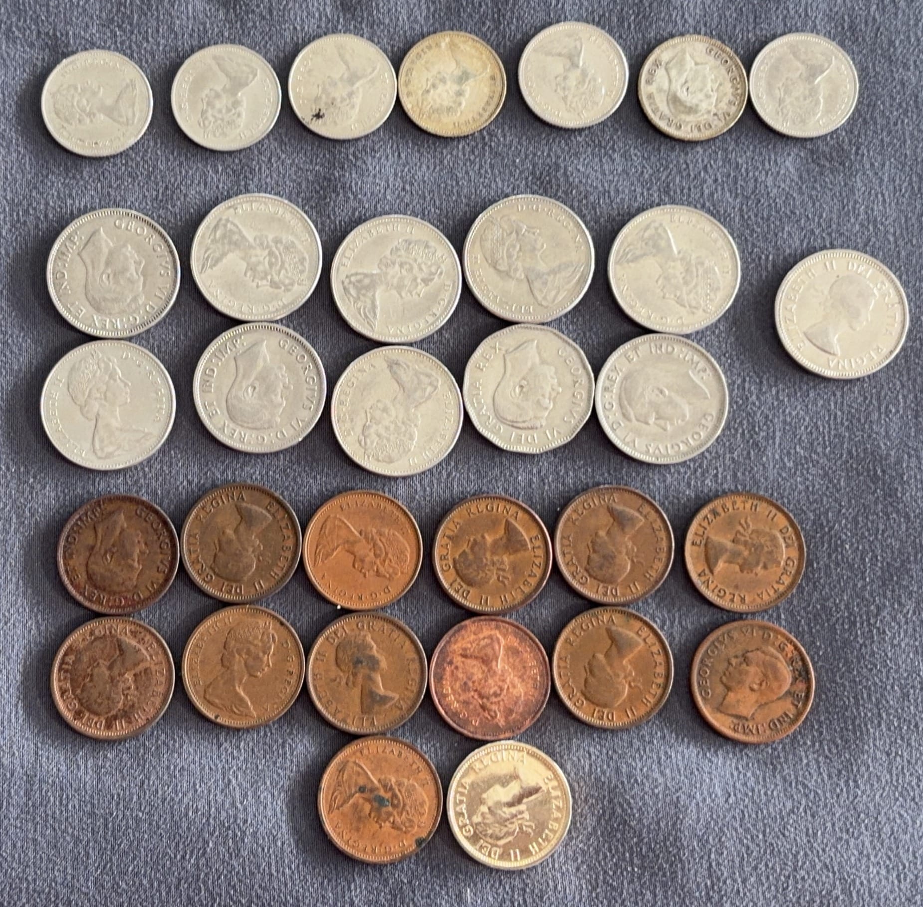 7140 Canadian Coin Assortment inc. (7) Canada Ten Cents 1952-1974, (11) Canada Five Cents 1938-1977, (14) Canada Pennies 1942-1979