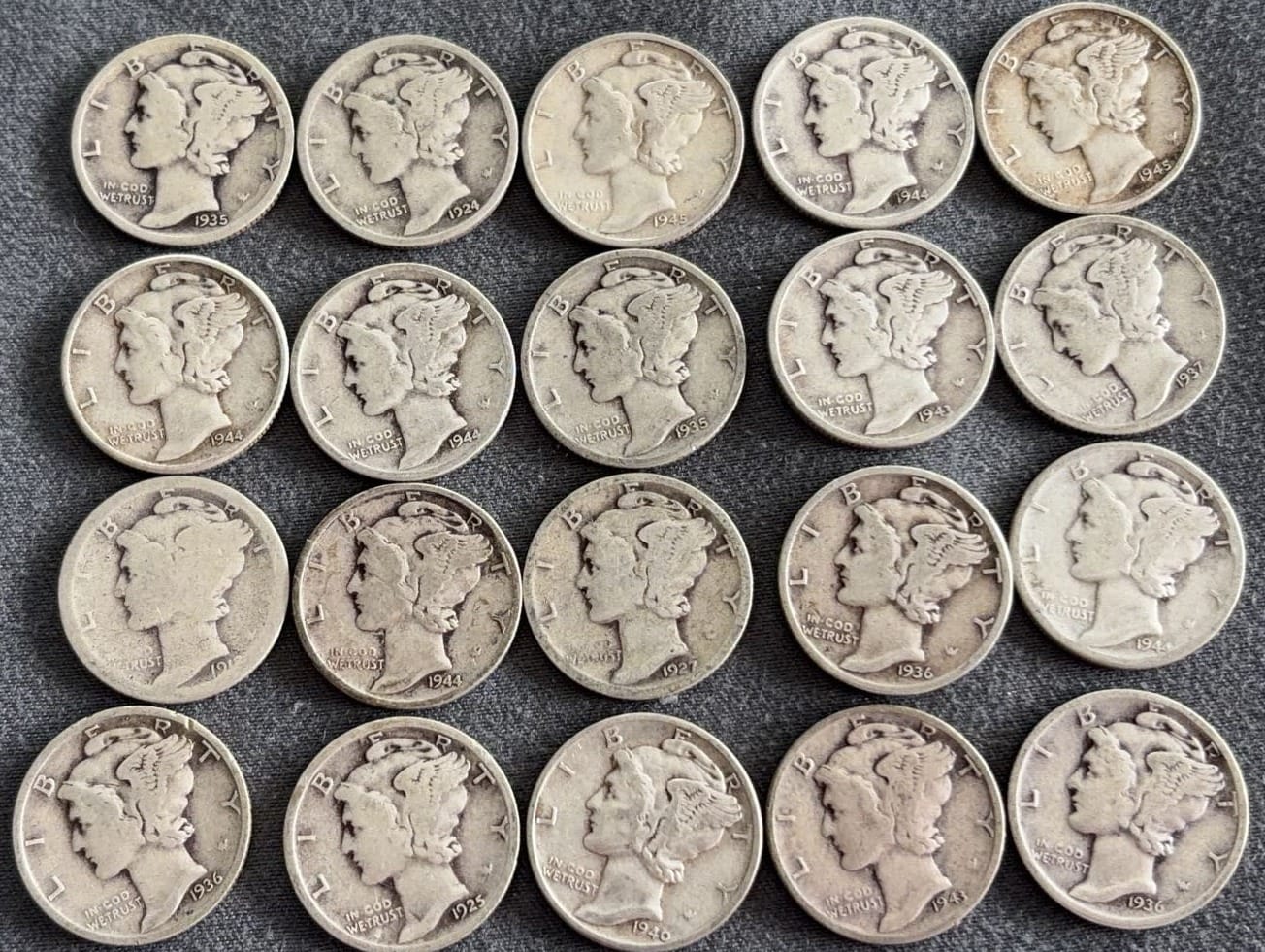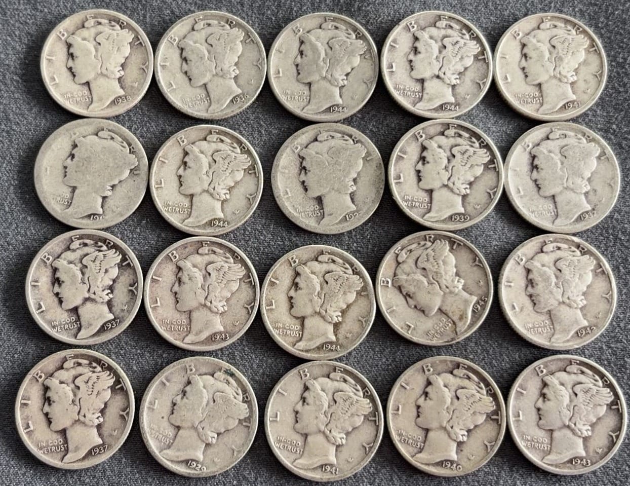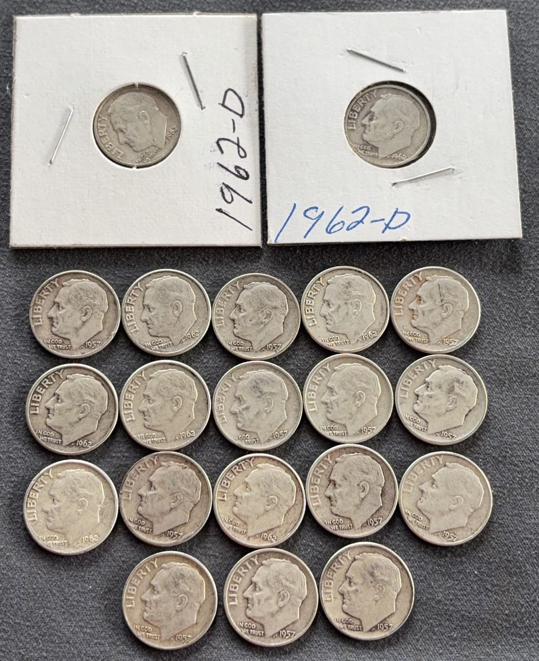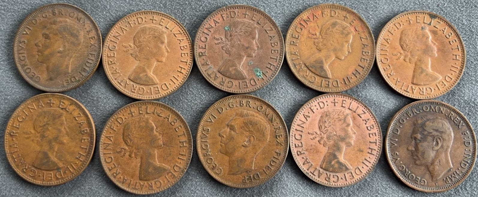 7140 Canadian Coin Assortment inc. (7) Canada Ten Cents 1952-1974, (11) Canada Five Cents 1938-1977, (14) Canada Pennies 1942-1979