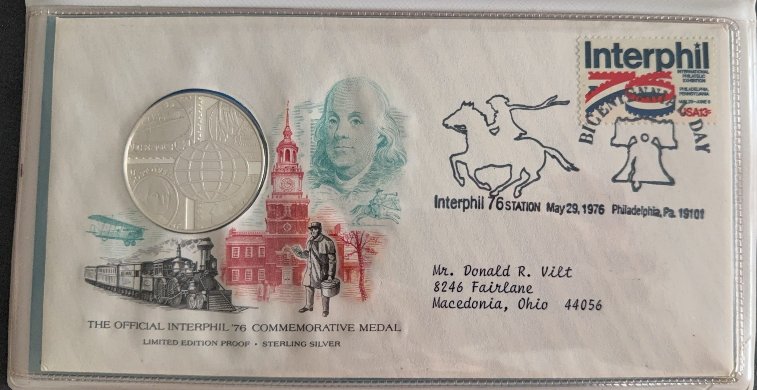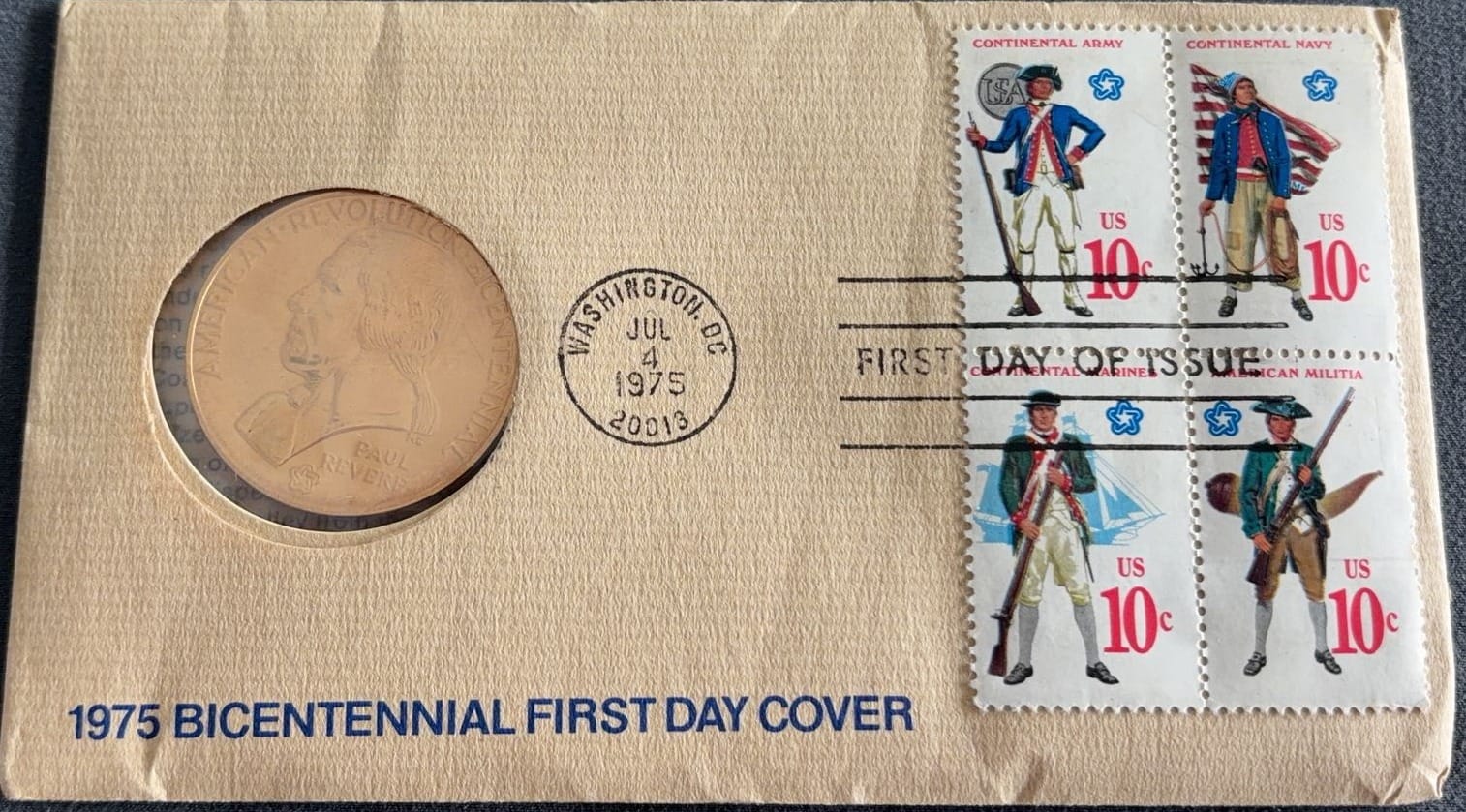 7205 1973 American Revolution Bicentennial First Day Cover w/ Commemorative Medal