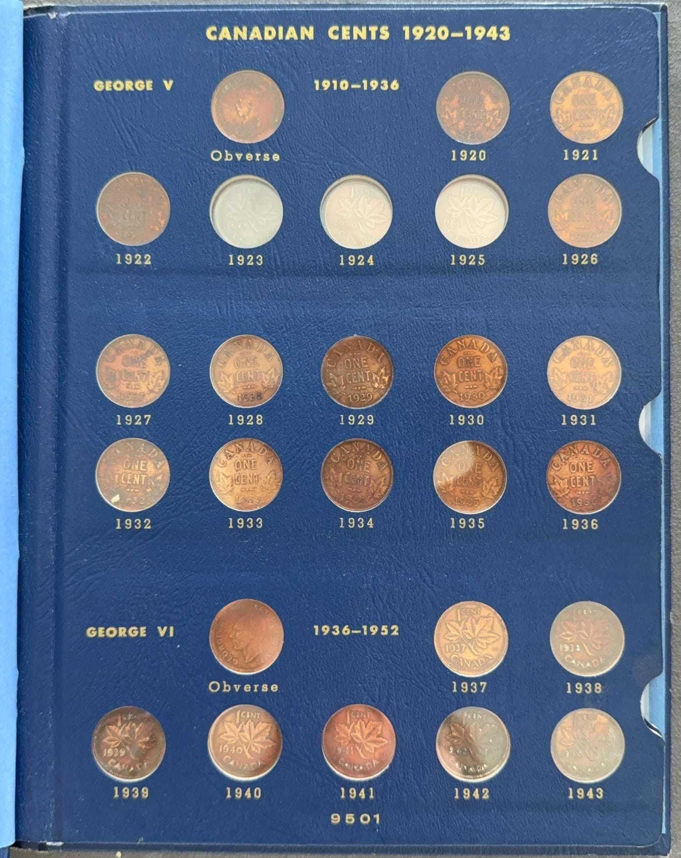 7116 (3) Rolls Canadian Cents 1920-1980, (20) Lincoln Cents 1965-1984