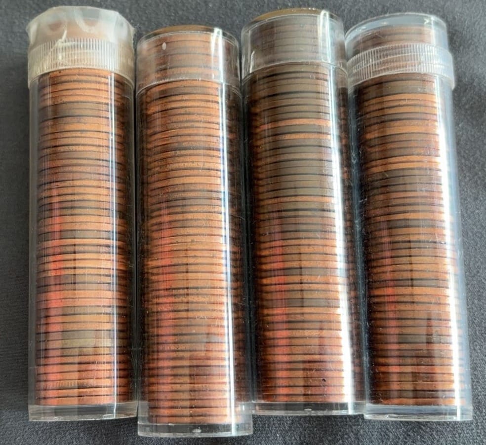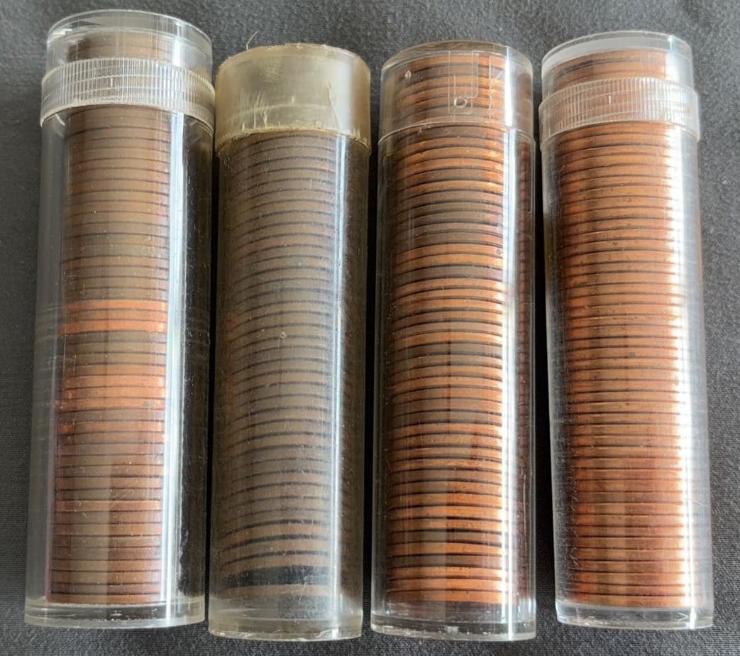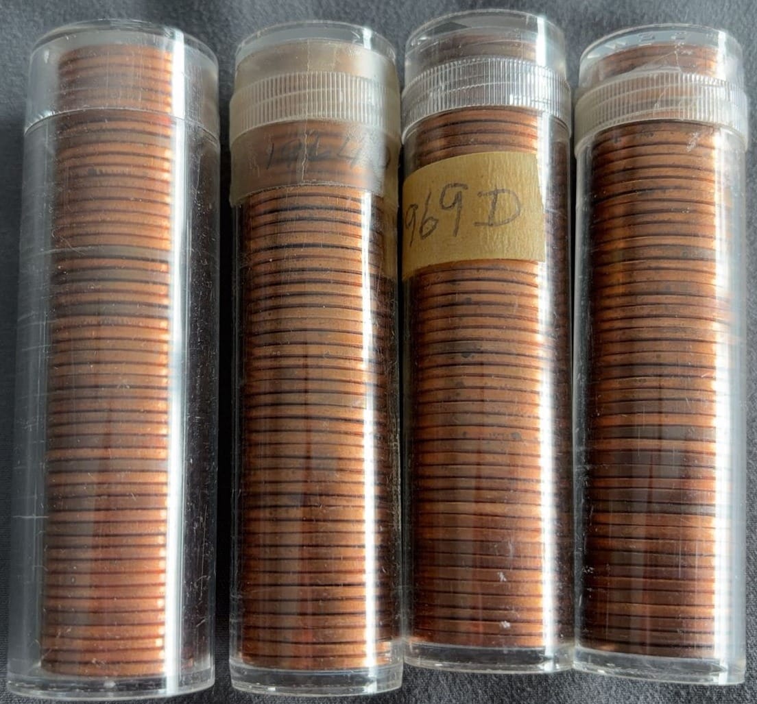 7115 (4) Rolls Lincoln Cents 1964-D, 1970-D, 1974-D, 1981-D