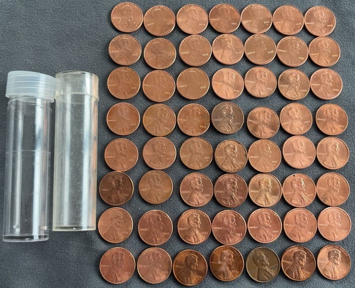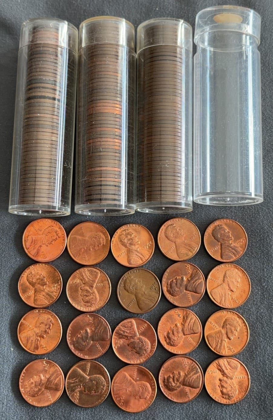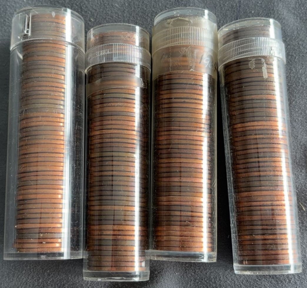 7115 (4) Rolls Lincoln Cents 1964-D, 1970-D, 1974-D, 1981-D