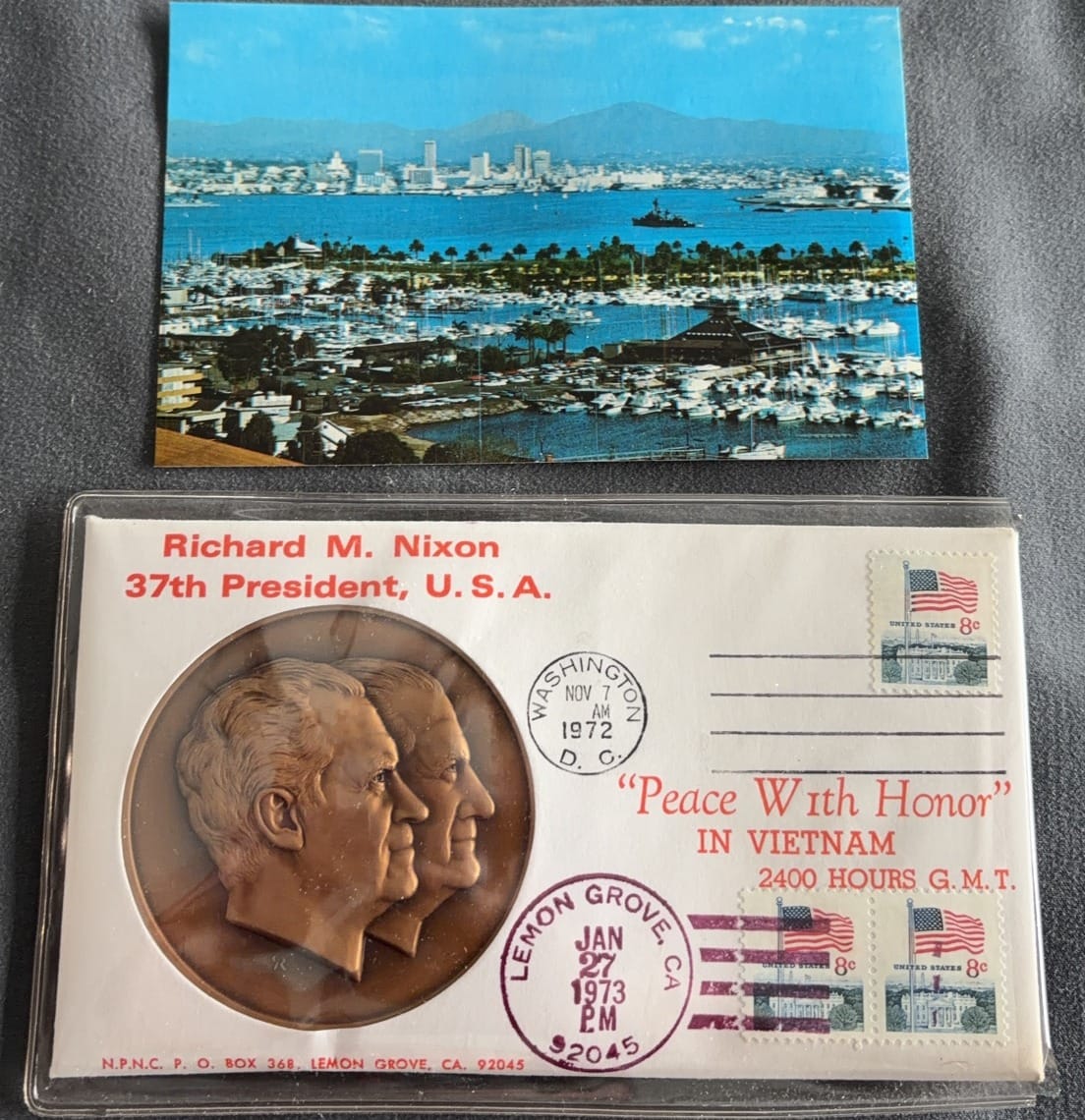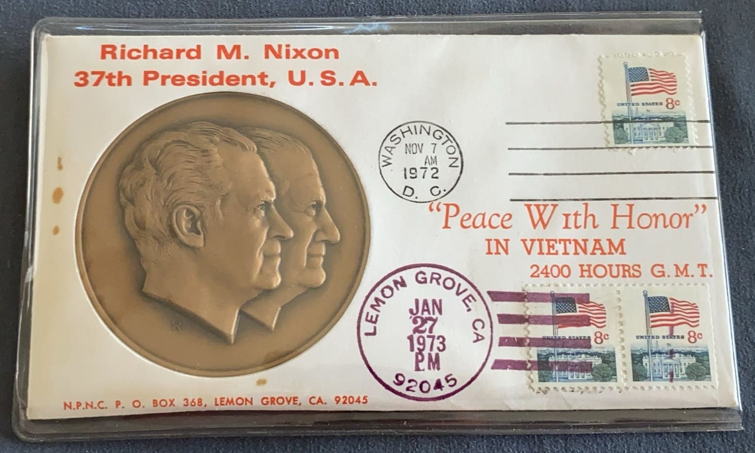 7208 1973 Richard M. Nixon "Peace With Honor" in Vietnam Commemorative Cover with Bronze Medal