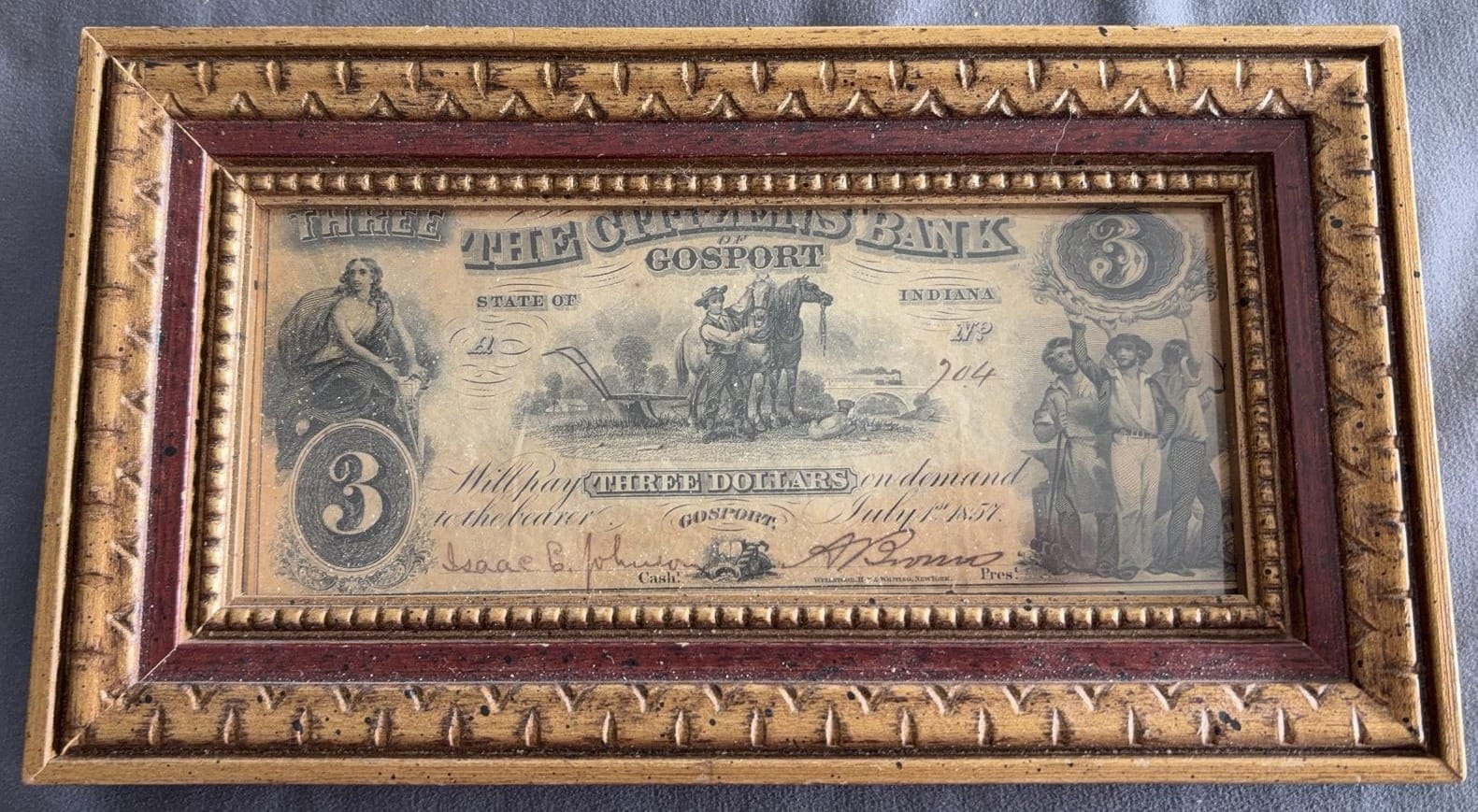 7161 1857 $3 Certificate The Citizens Bank of Gosport State of Indiana