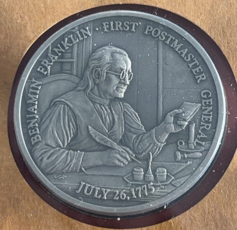 7189 1975 Benjamin Franklin Postal Service Bicentennial Commemorative Medal Fine Pewter