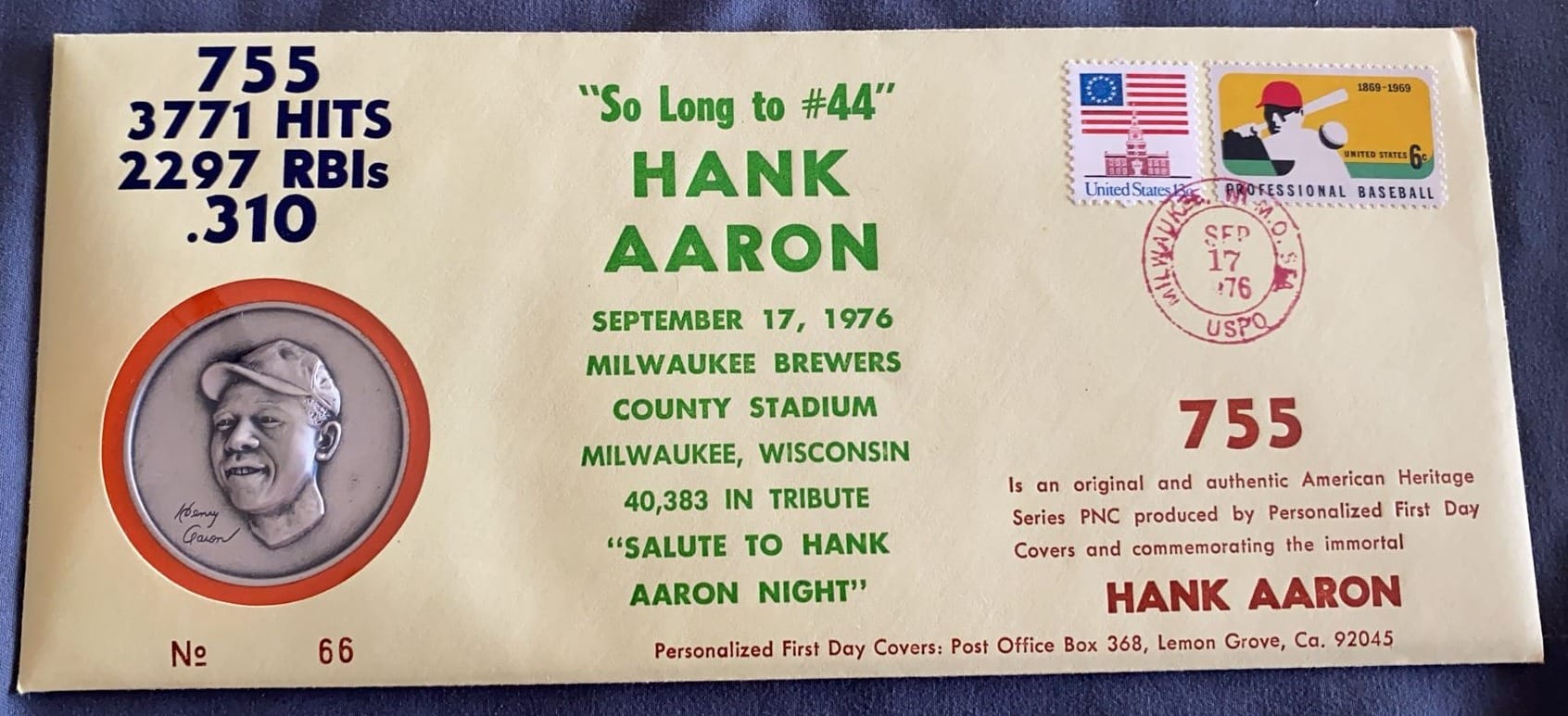 7209 1976 Hank Aaron Tribute Medal - American Heritage PNC First Day Cover