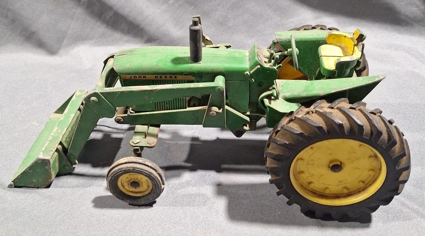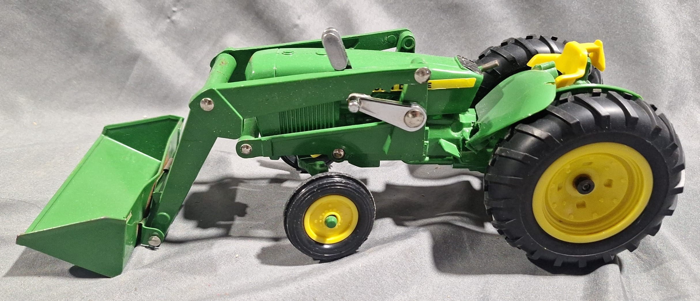508 John Deere utility tractor with loader, plastic fender broken & missing steering wheel - 1/16 scale